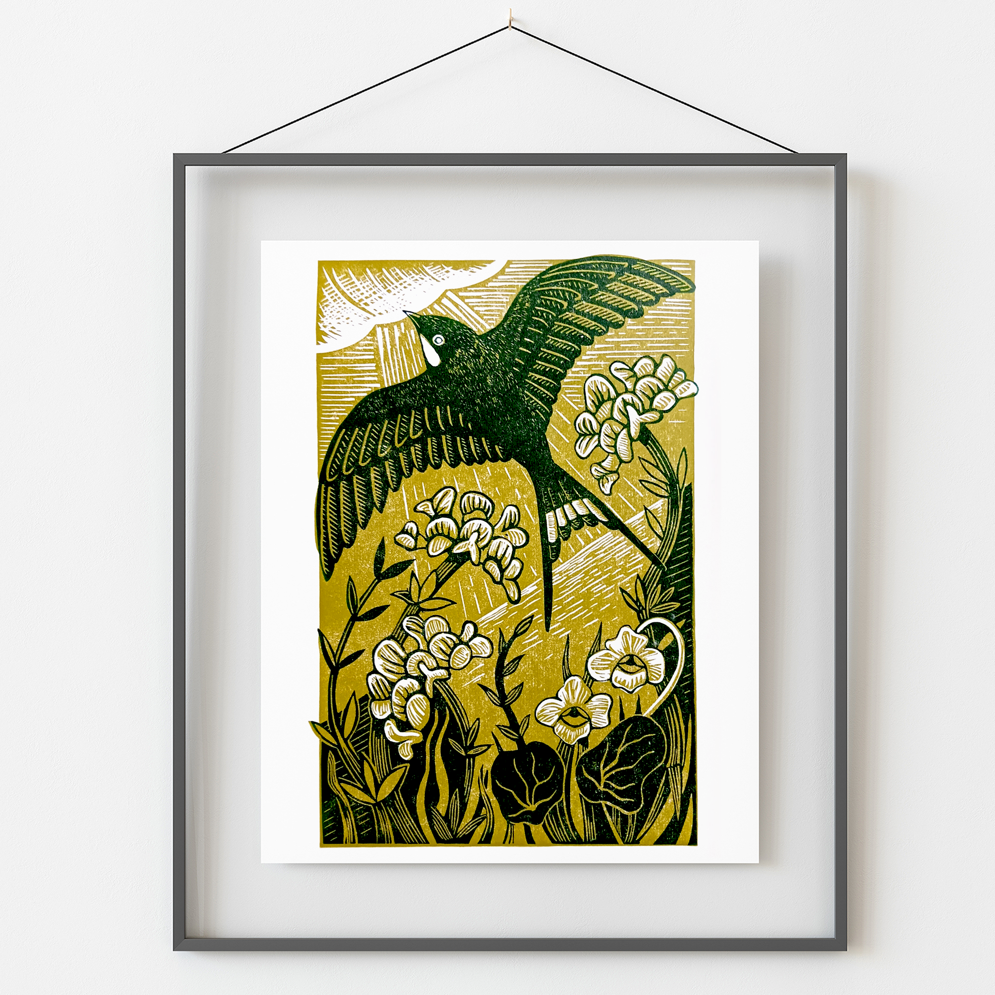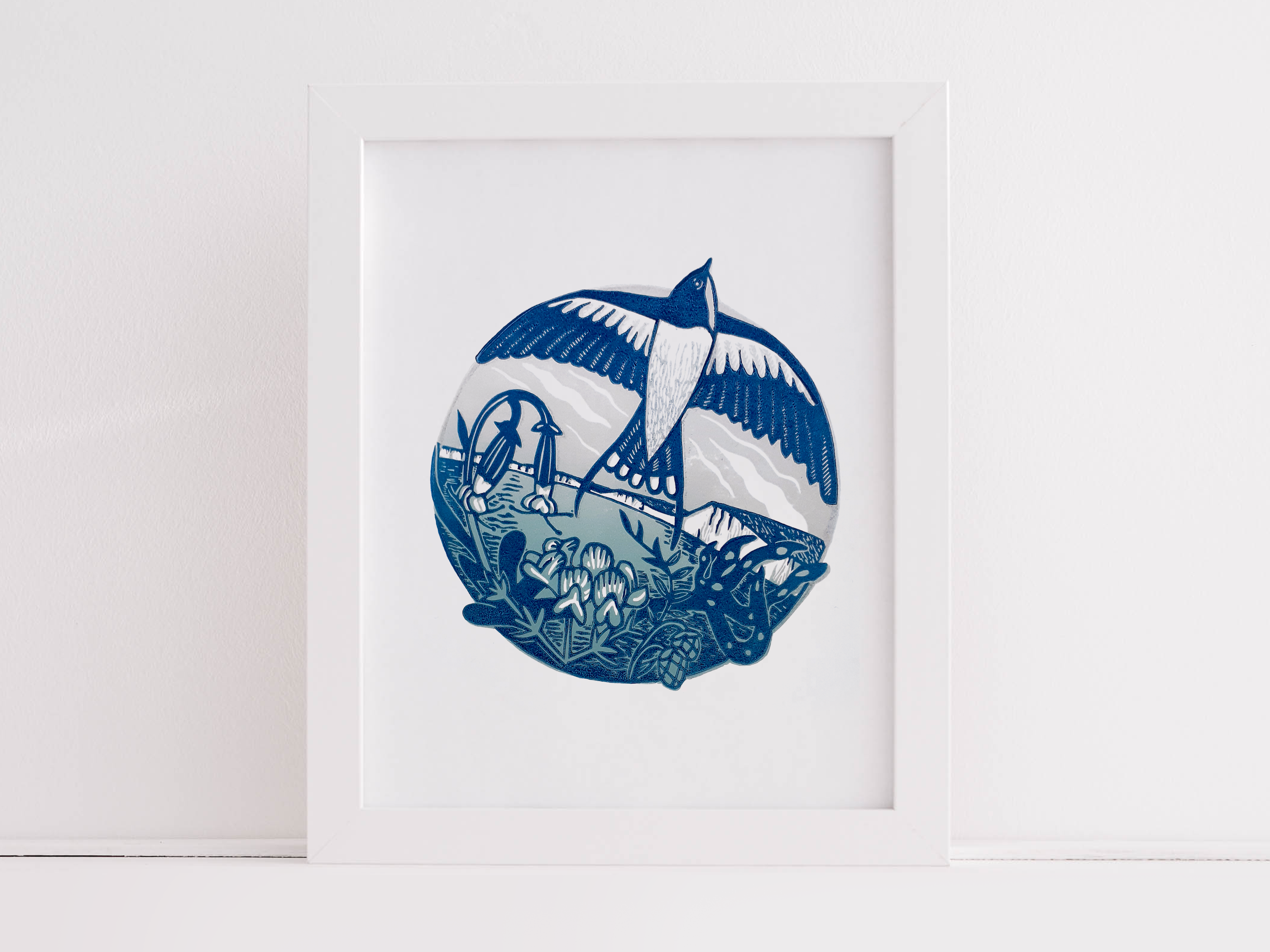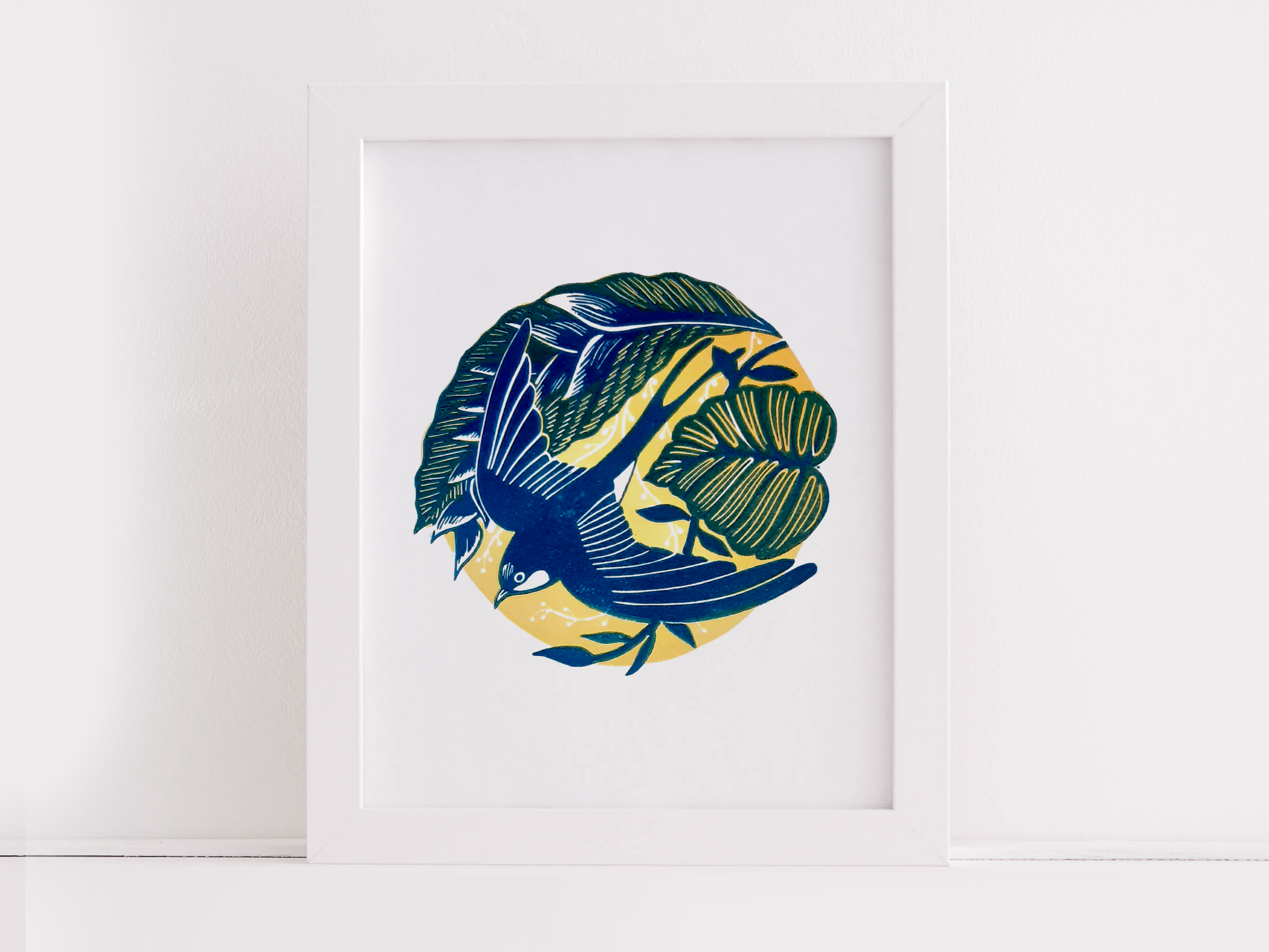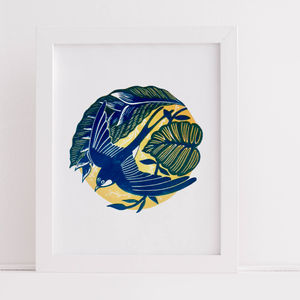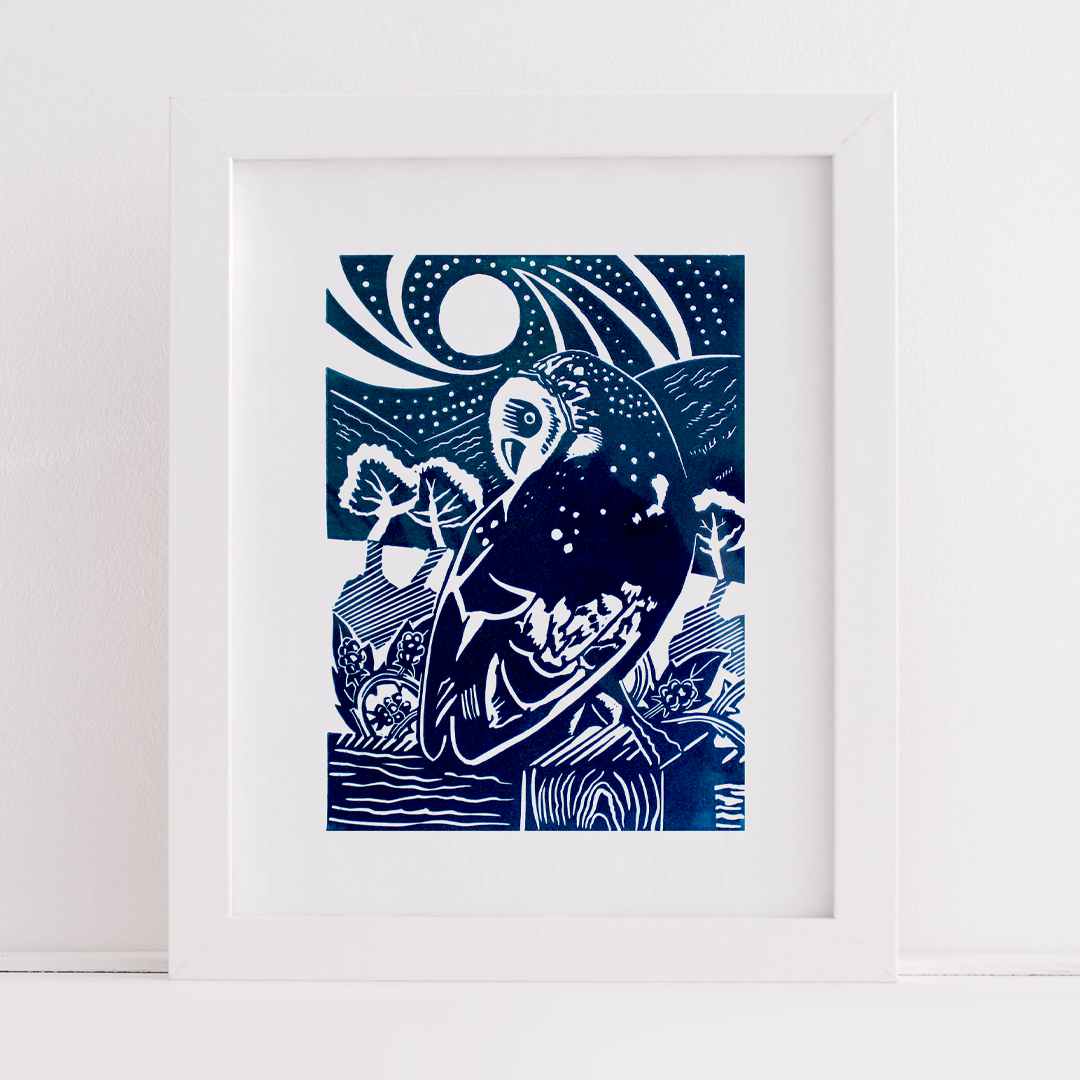 Working in linocut, my designs develop from my interest in local, native wildlife and our relationship with it. I enjoy making works in a series using a limited colour palette and exploring the poetic in the everyday.
