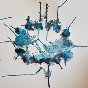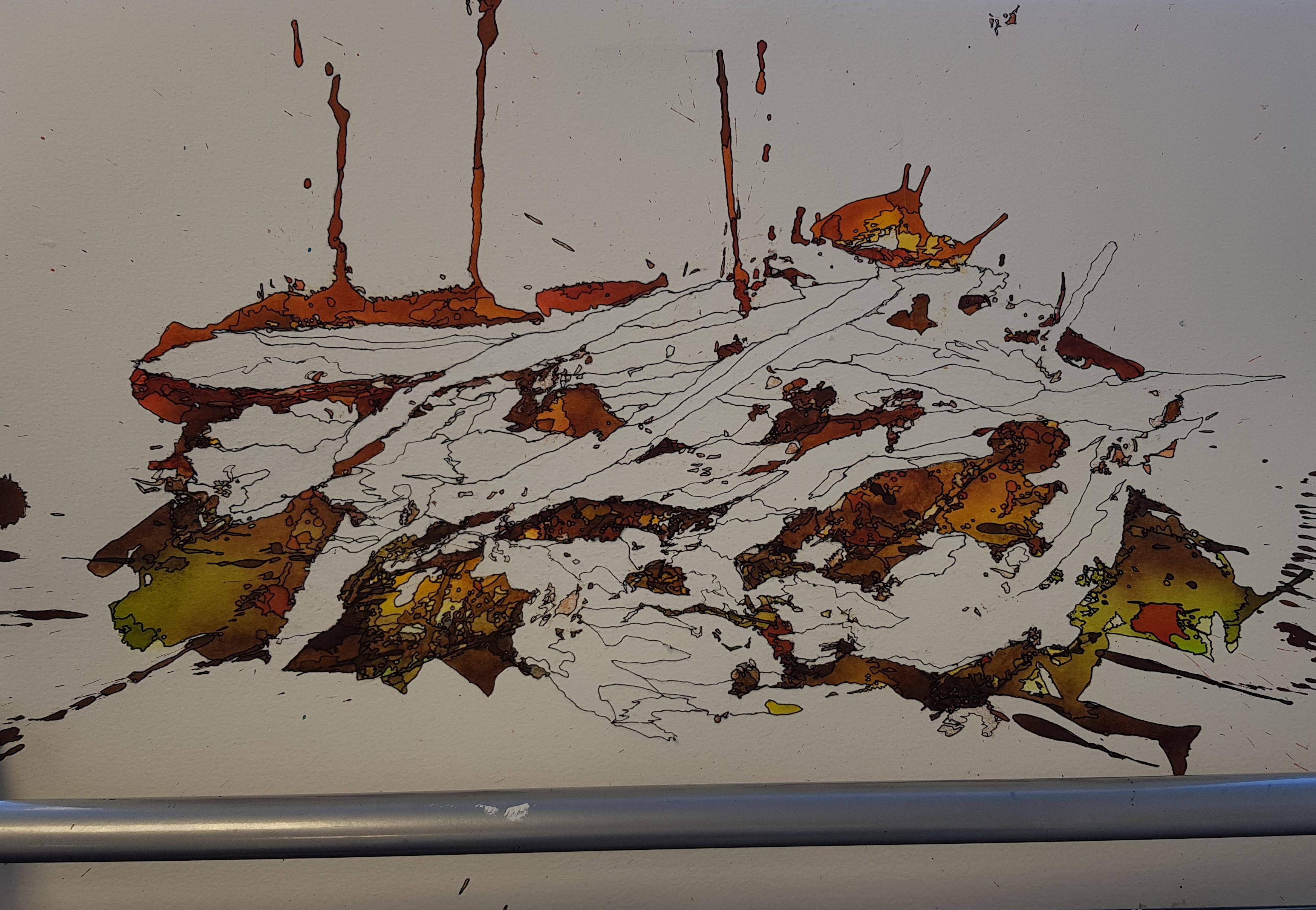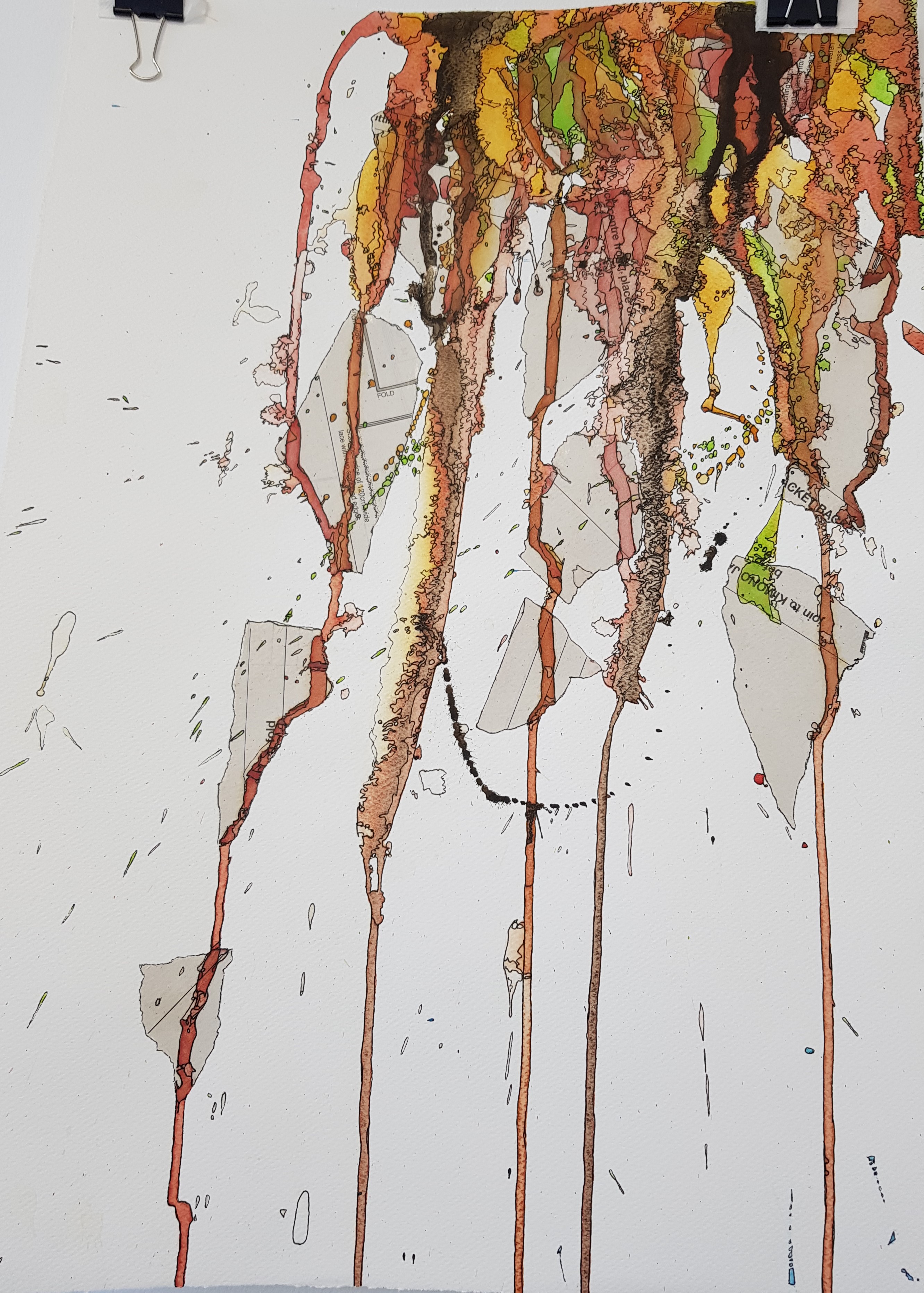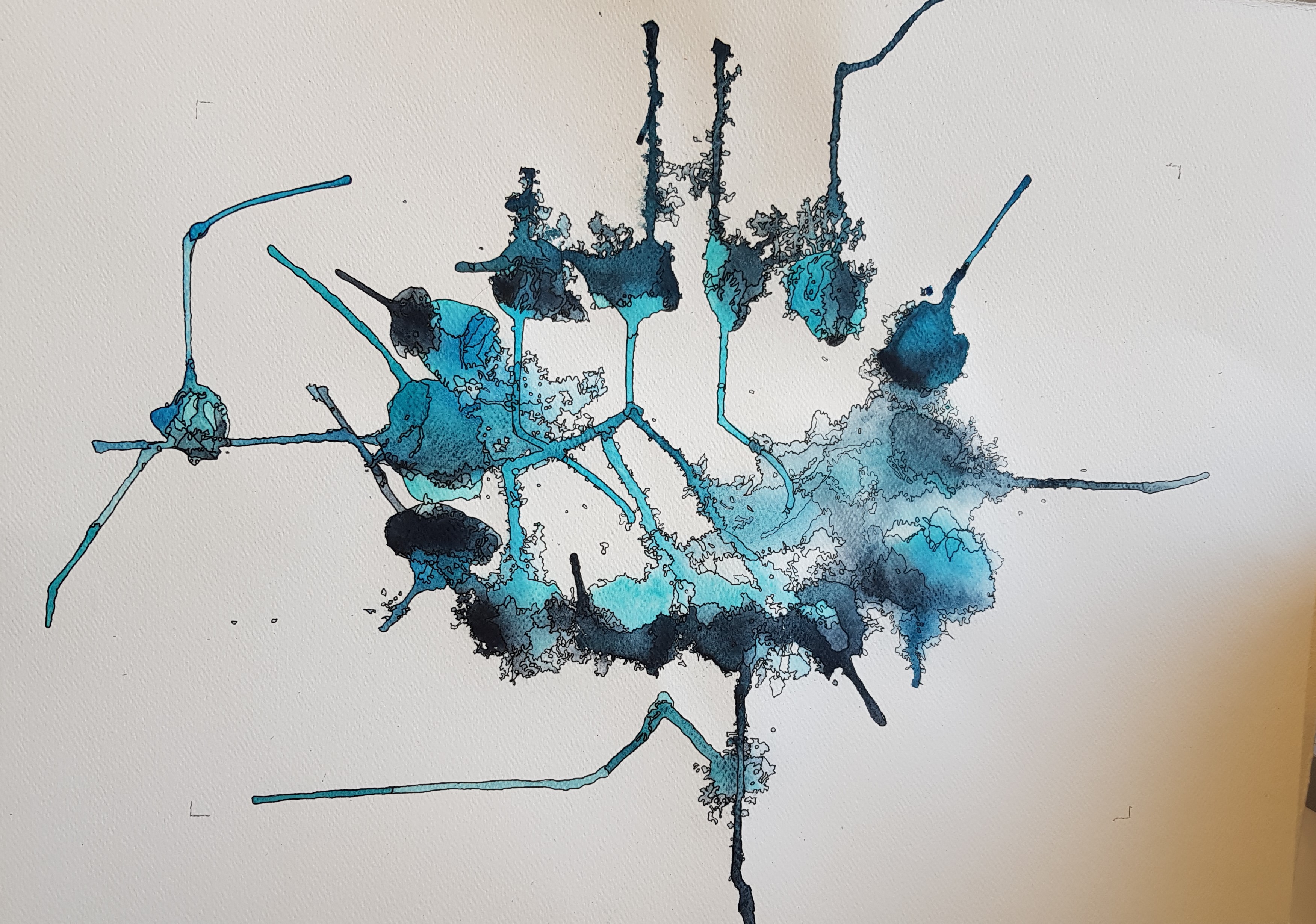 Whilst there she tried many different mediums trying to find her own artistic style, and ended up as a process painter using mainly watercolours and then ink on very large pieces of paper.