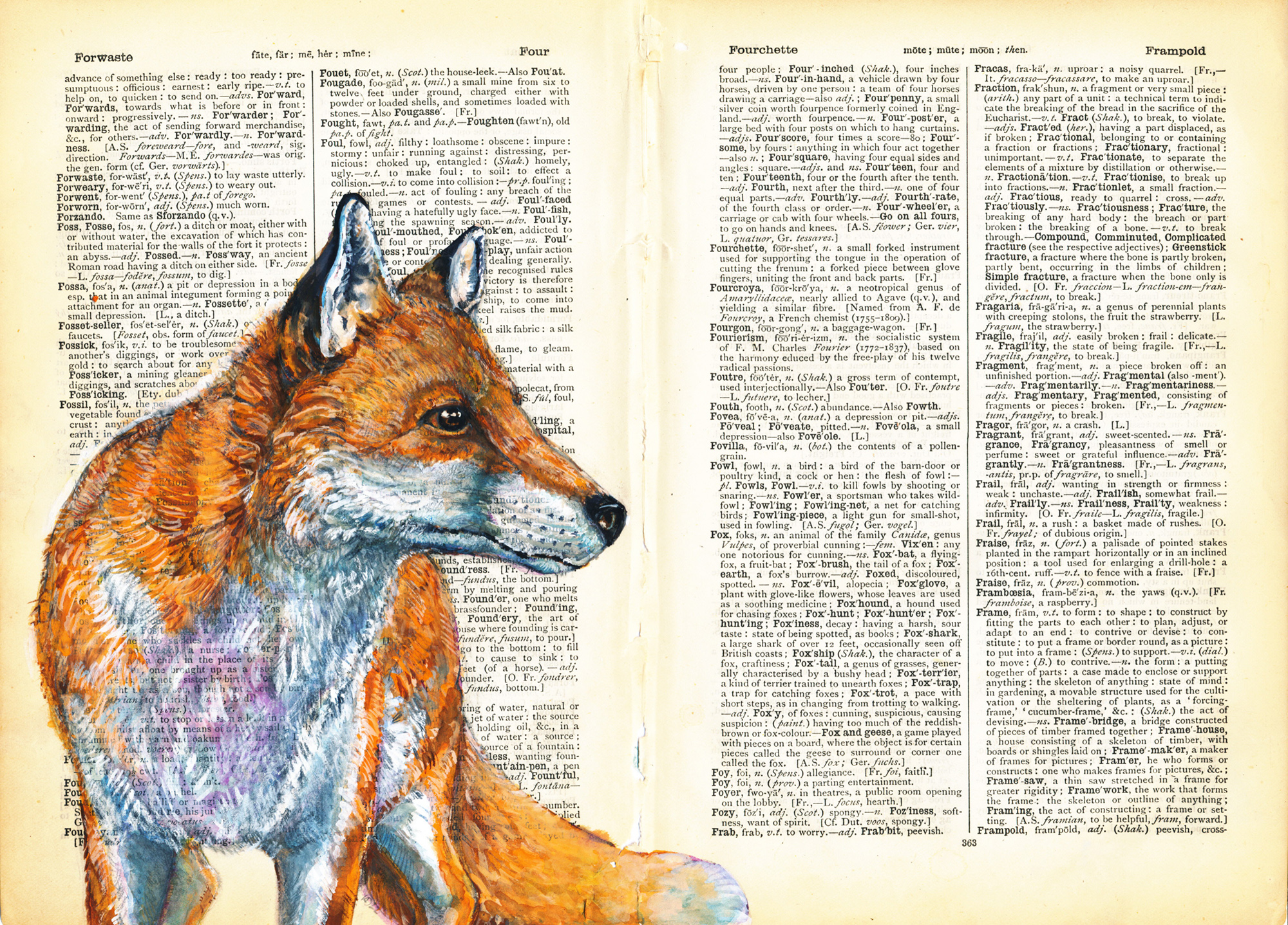 Working daily as an Illustrator and particularly at various events and open days, has fed my great passion for paper, textiles and organic natural materials- anything that I can use as a canvas- from on its last legs, very very old dictionary paper, scrap wood and organic matter (I'm currently working on a beautiful piece of birch bark), all have led me to some very exciting discoveries.