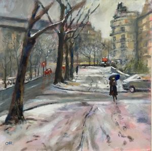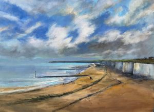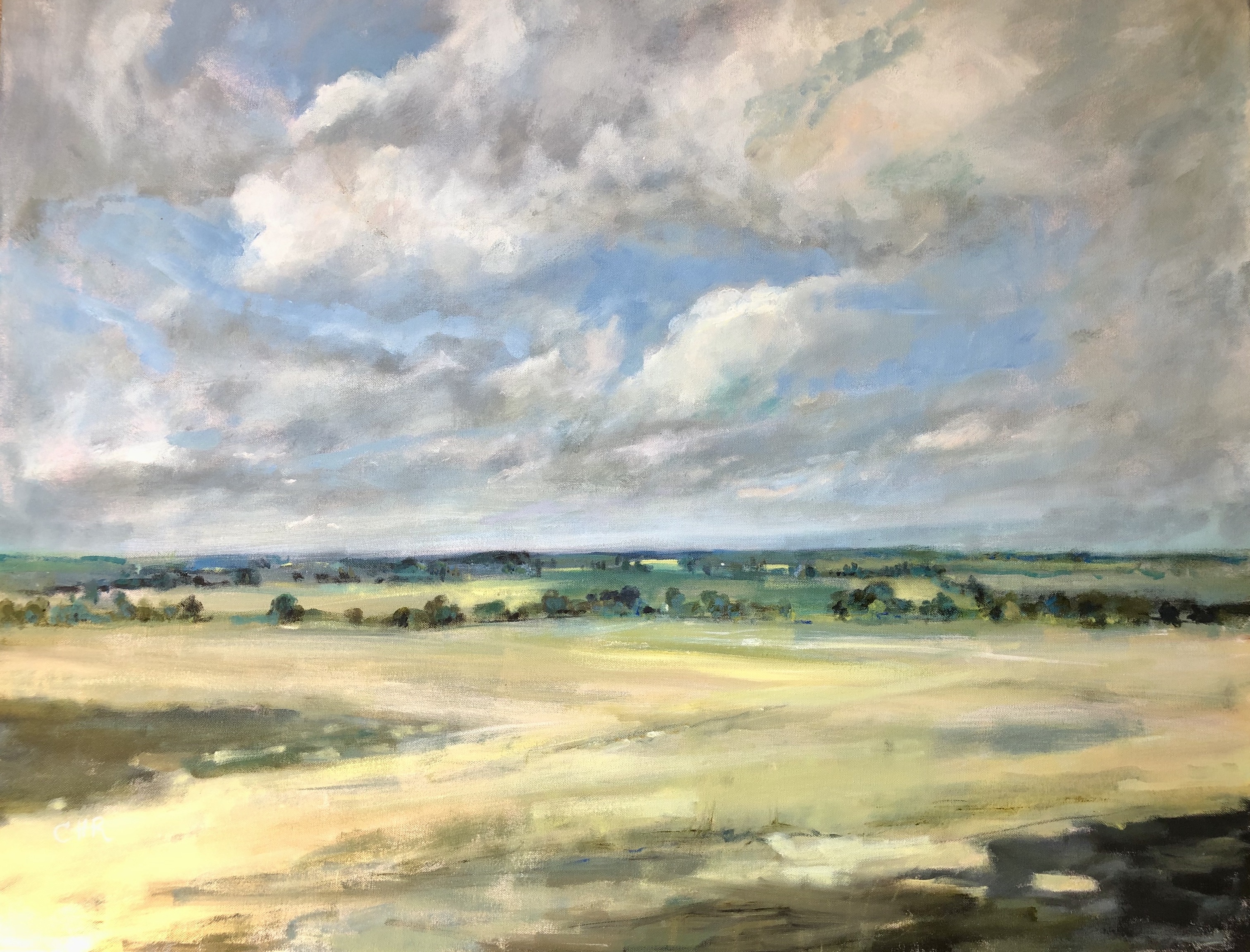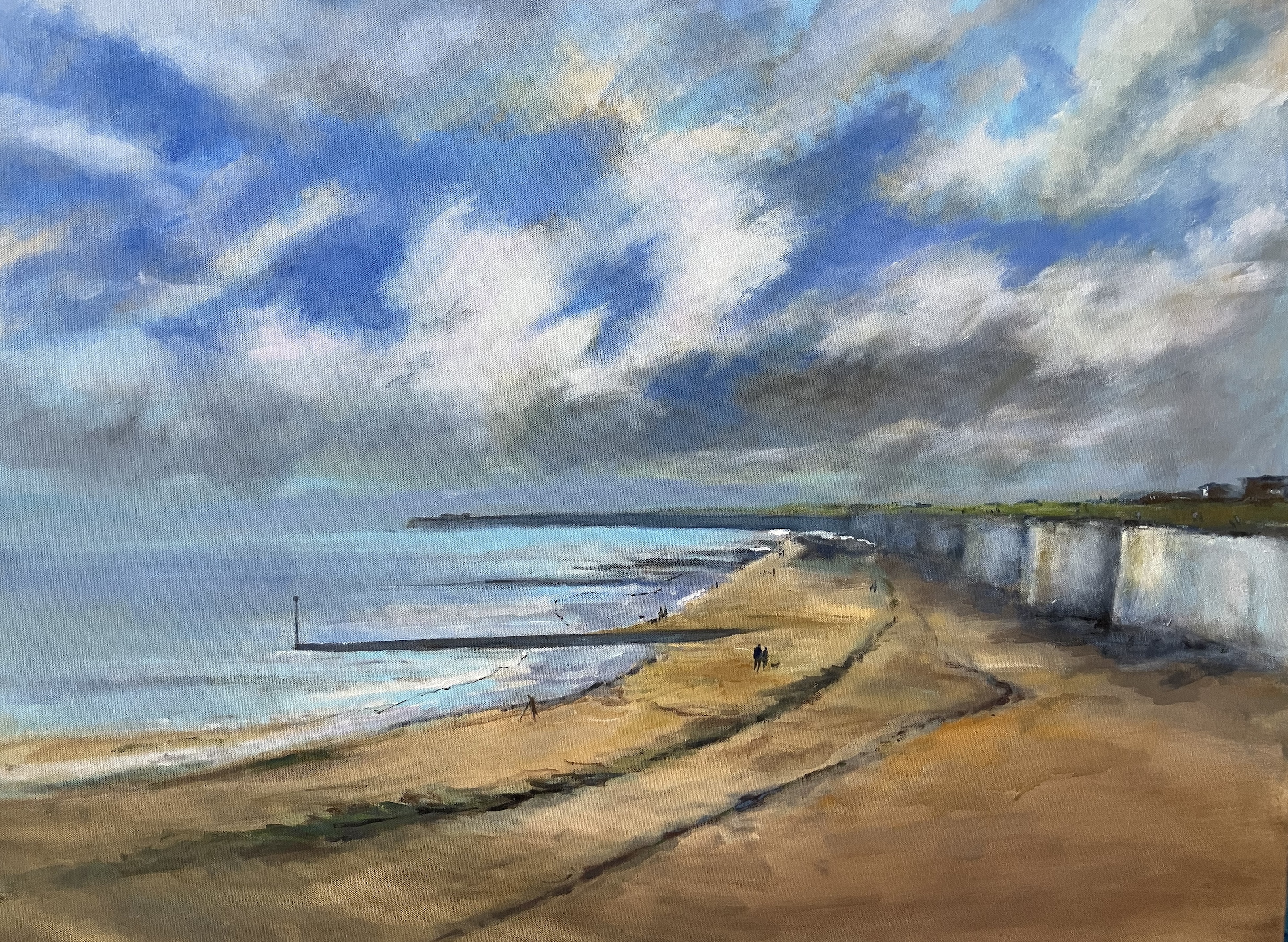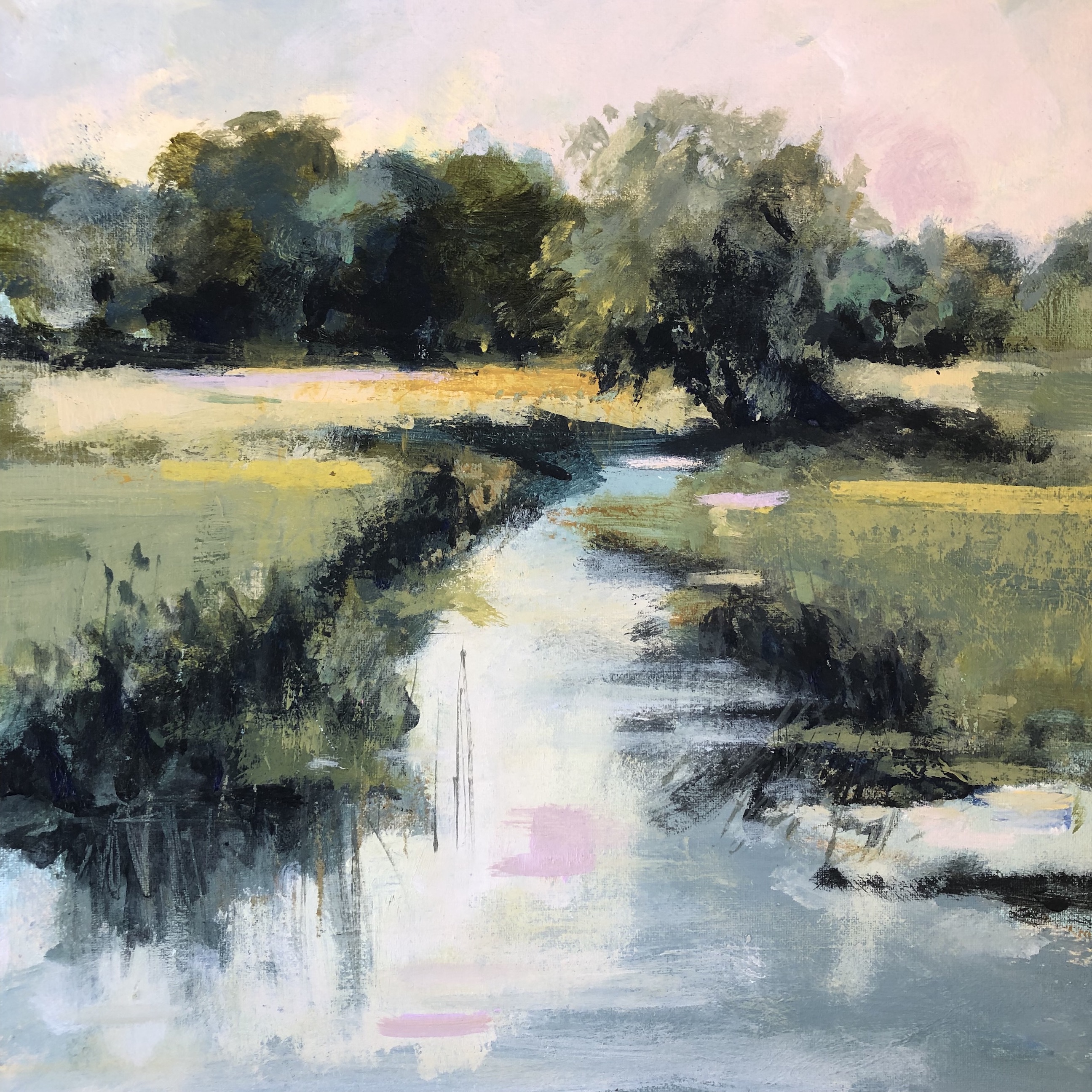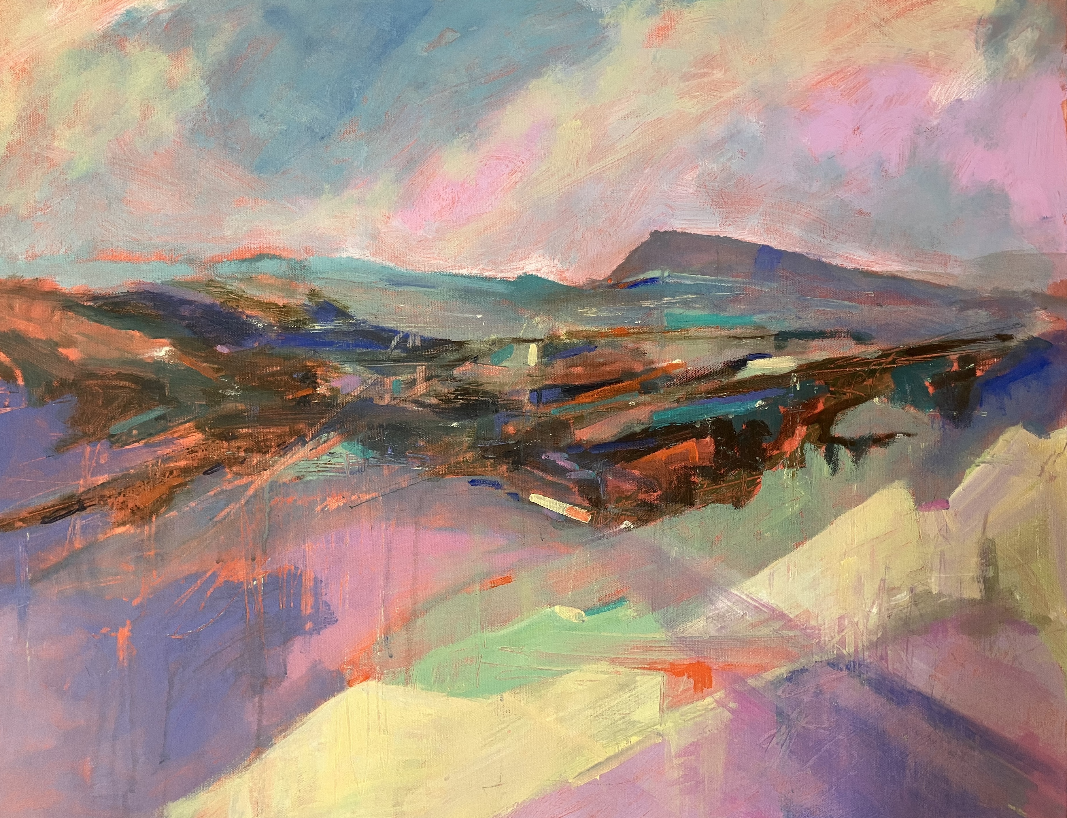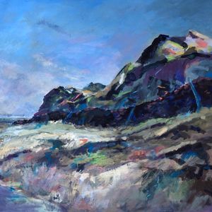 I paint mainly in acrylic or watercolour, and sometimes with mixed media. I prefer to paint outside whatever the weather which can bring a whole new meaning to watercolour!