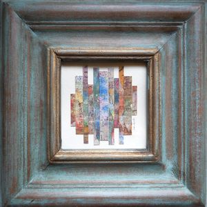 Work is in many collections including The Alfred East Permanent Collection in Kettering. Influences include Joseph Cornell, Robert Rauschenburg, Andy Warhol, Peter Blake and Joe Tilson.