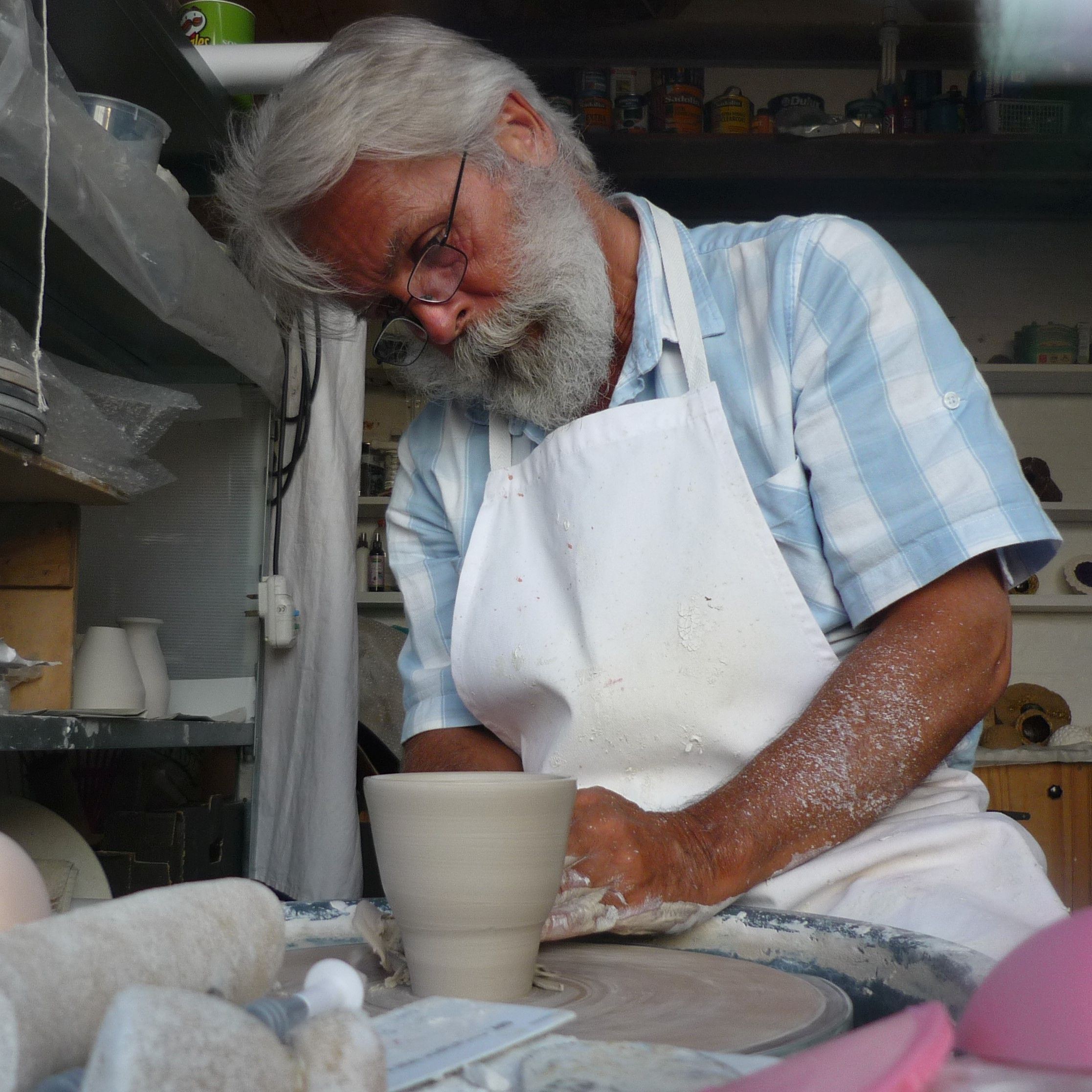 I make hand thrown individual porcelain stoneware ceramic pots made in the shared garden studio with Dot