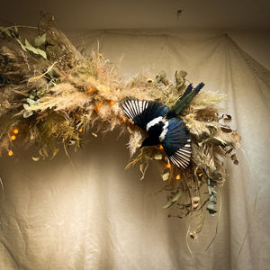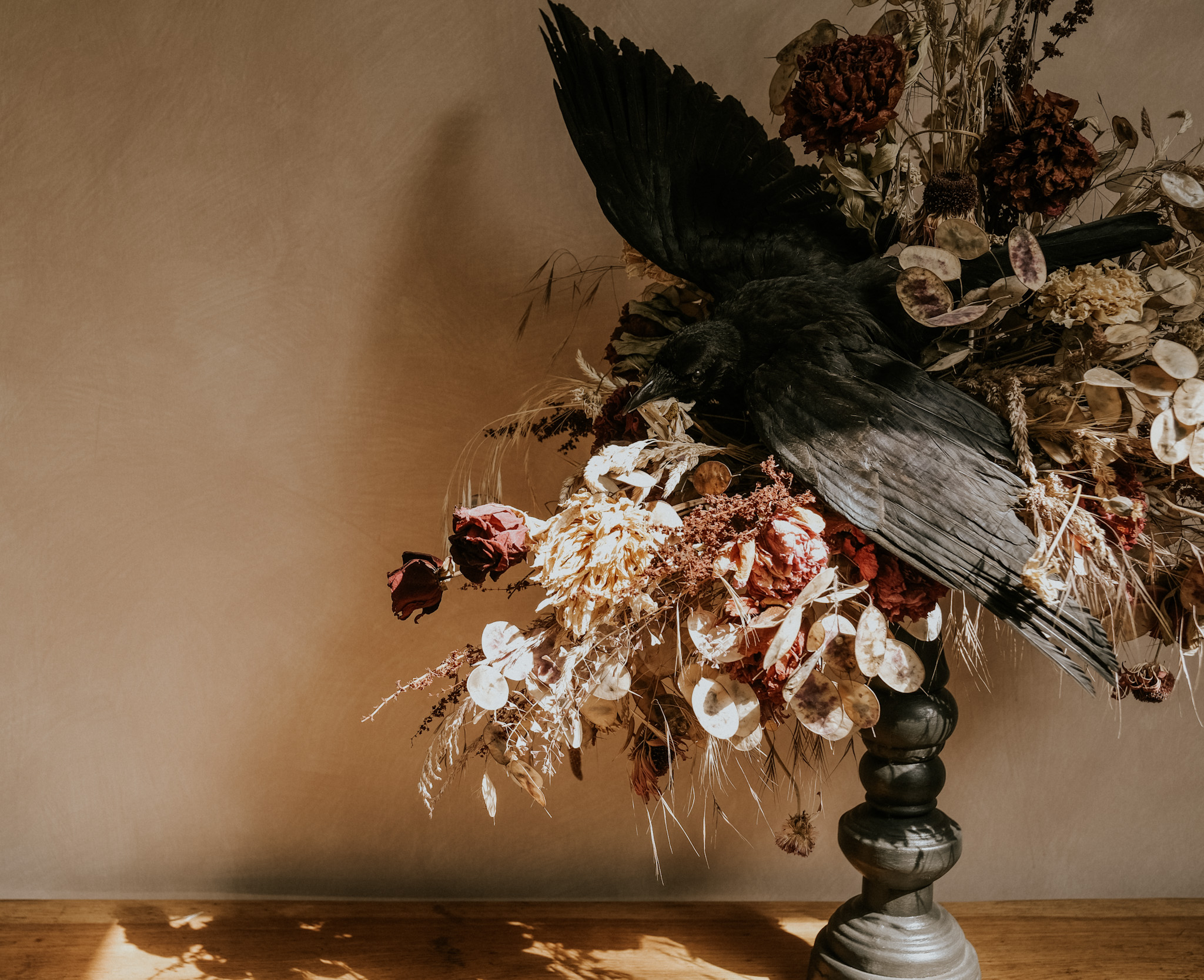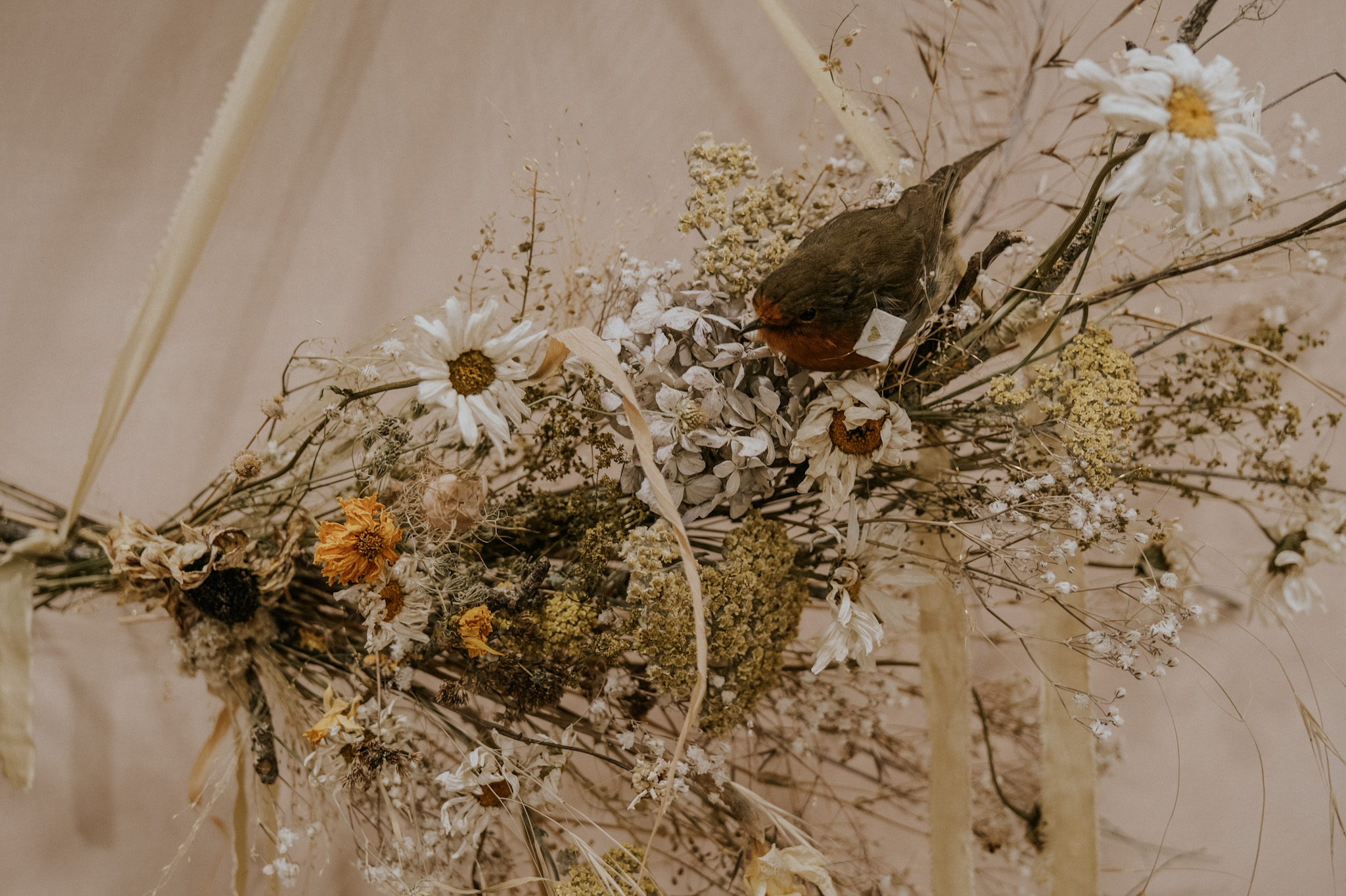 I have been creative my whole life, and after beginning a career in tattooing at age 17, this has been the foundation of my work as an artist ever since. Throughout these years, I have explored many different materials and mediums and come to terms with the fact I simply cannot choose just one! Inspired by nature, the fragility and also resilience, I predominantly work with dried flowers and ethical taxidermy to create thought-provoking and ethereal dreamscapes and immersive installations. I’m a fan also of watercolor, textiles, and free motion embroidery, and you will see these throughout my work too.