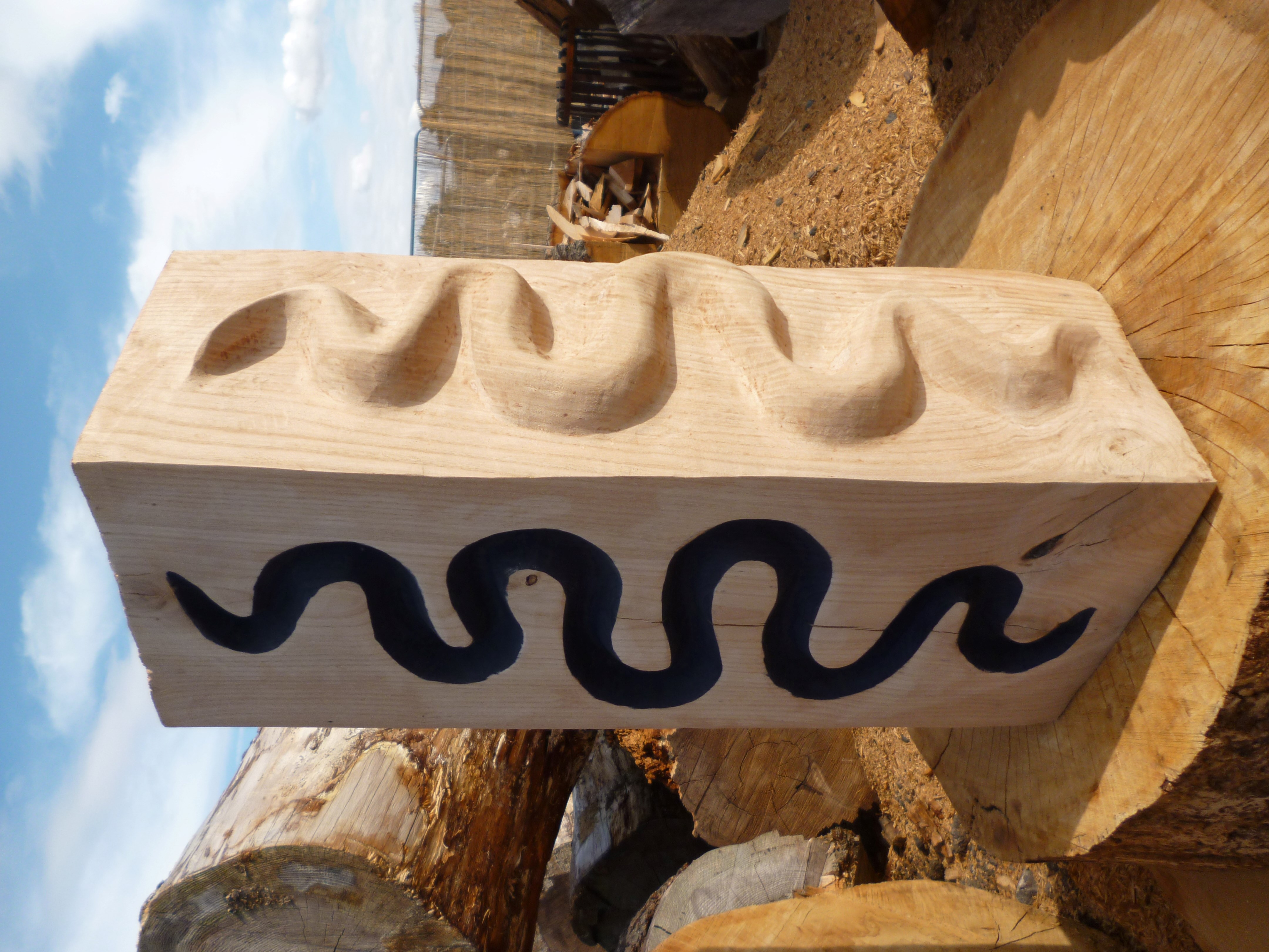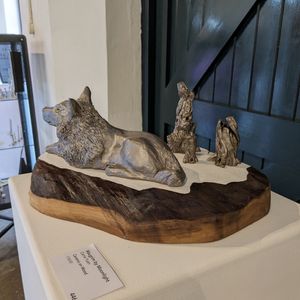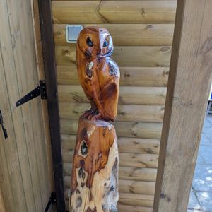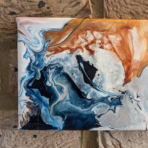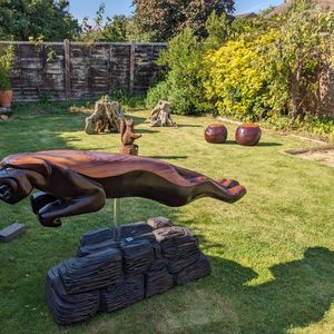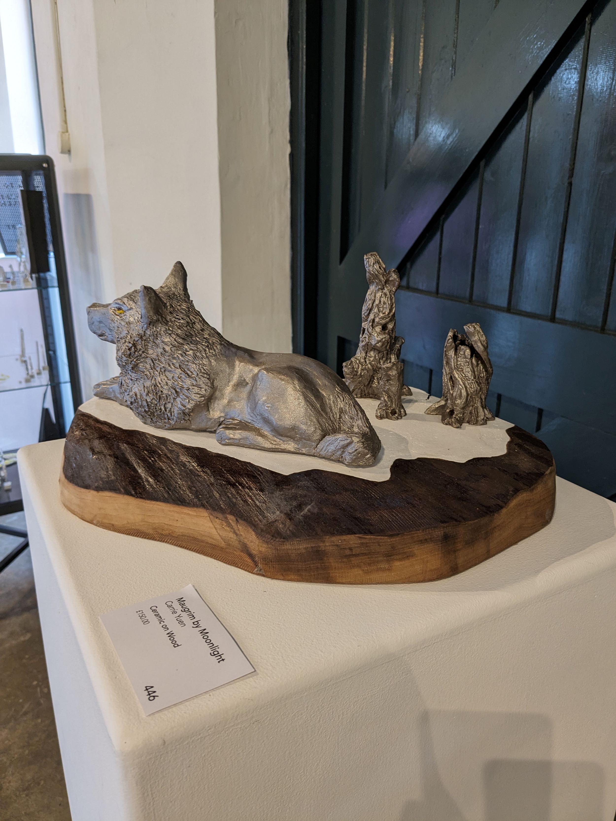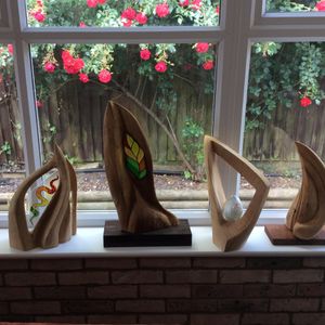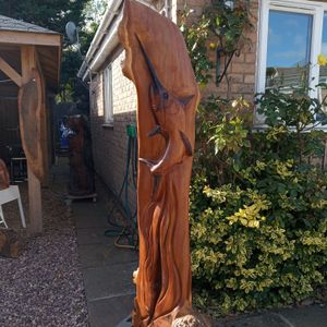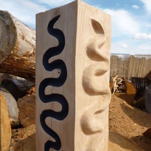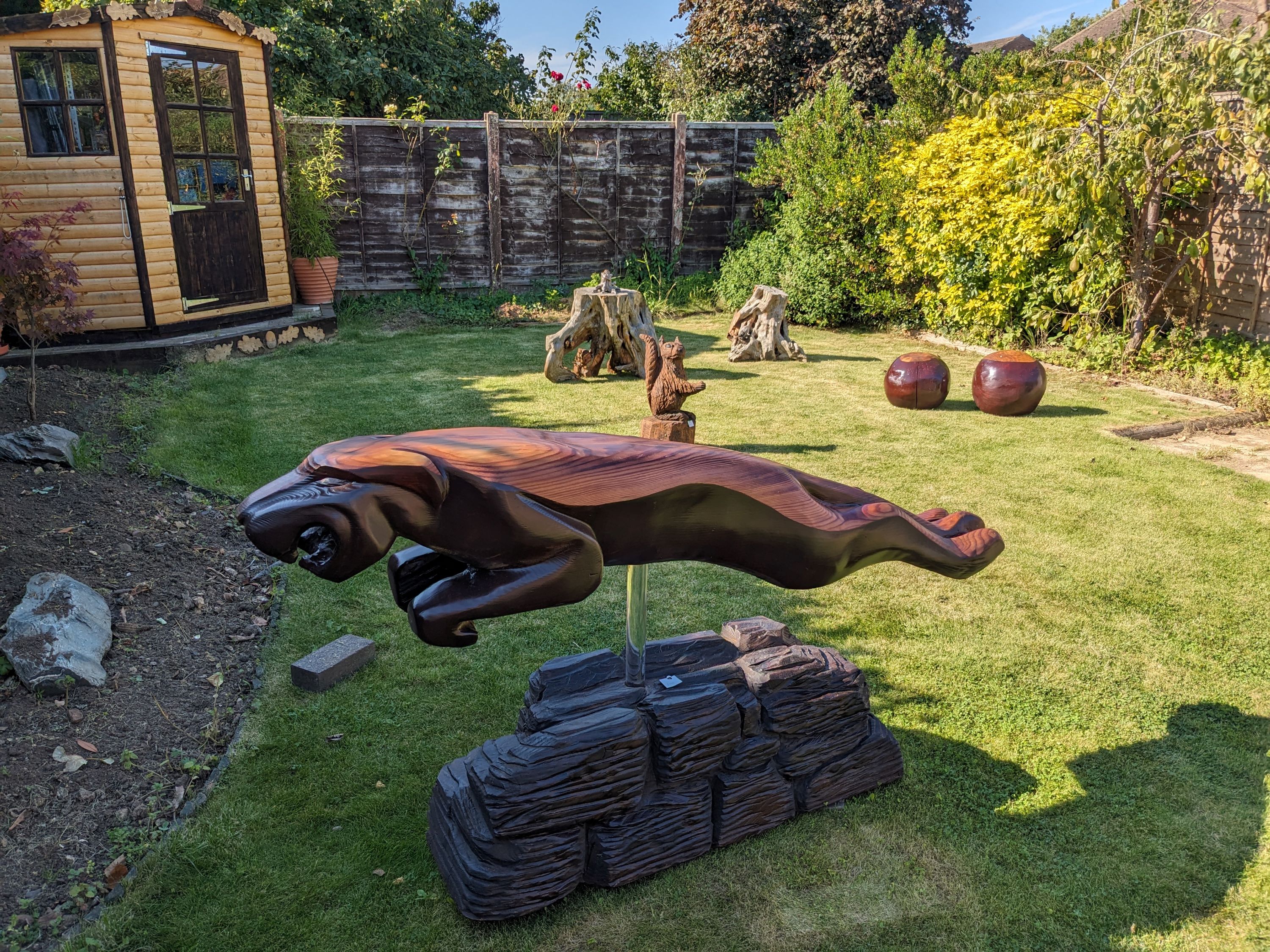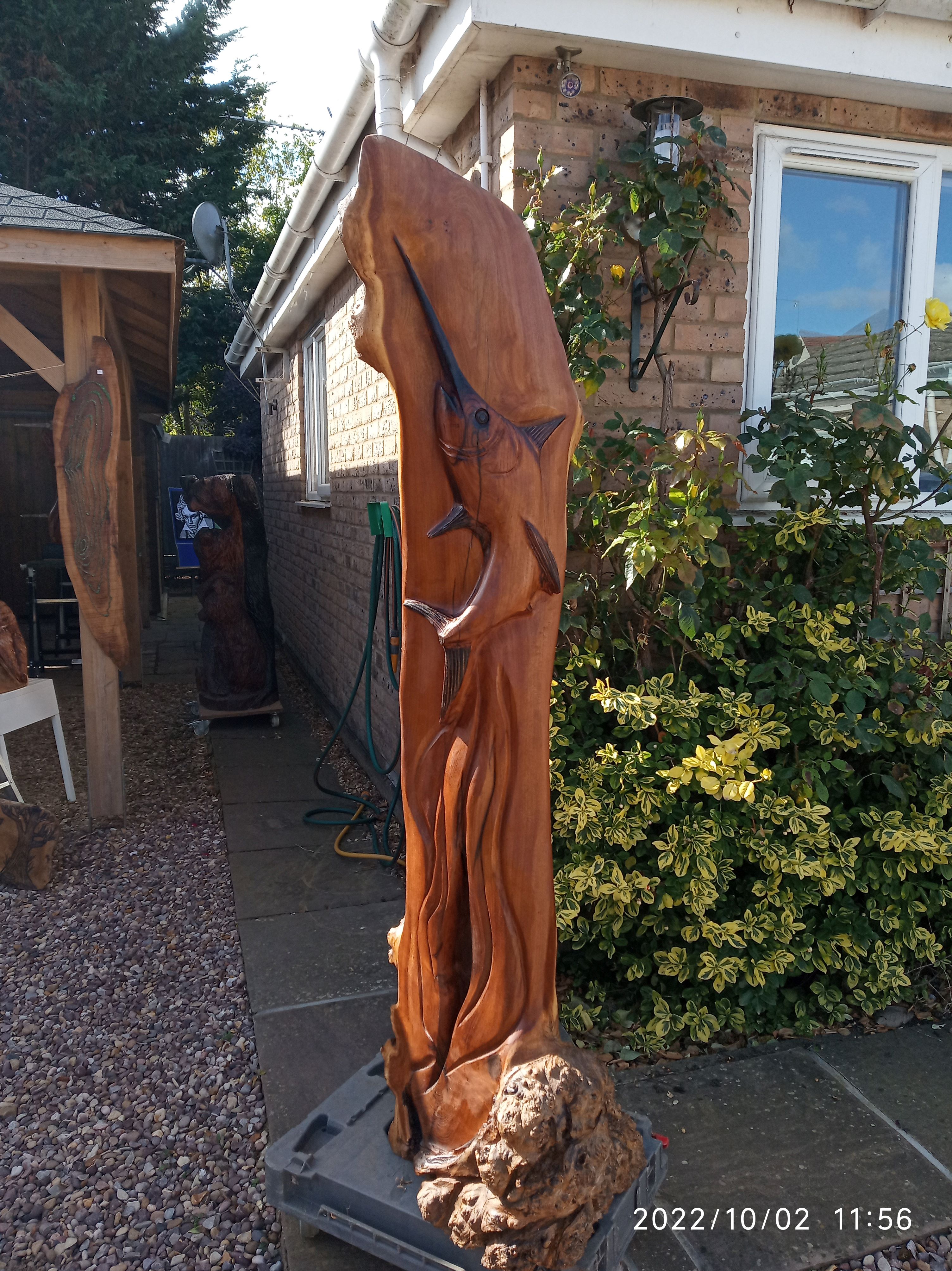Chainsaw Woodcarver with Ceramics and Acrylic Pour Painting.
