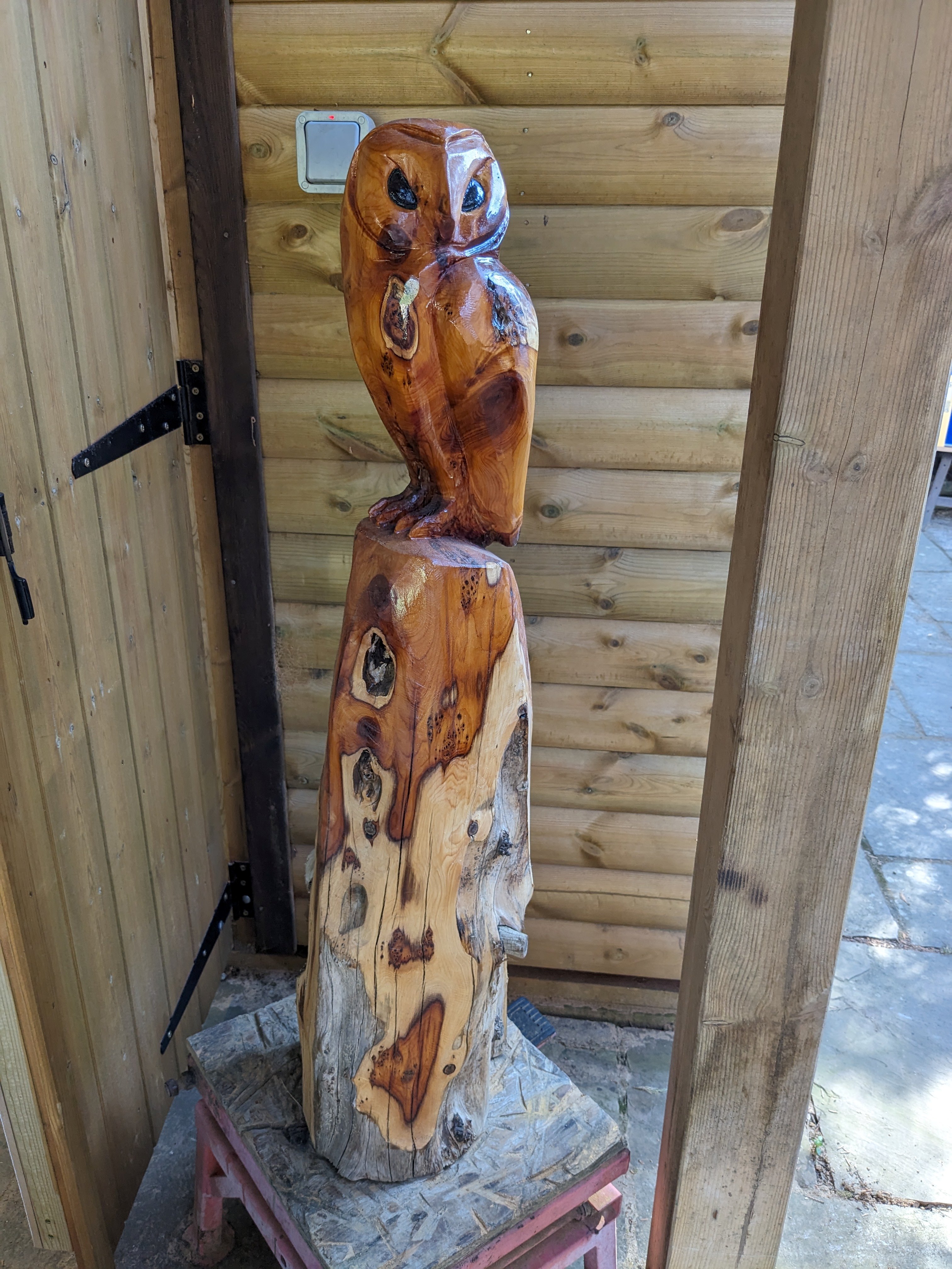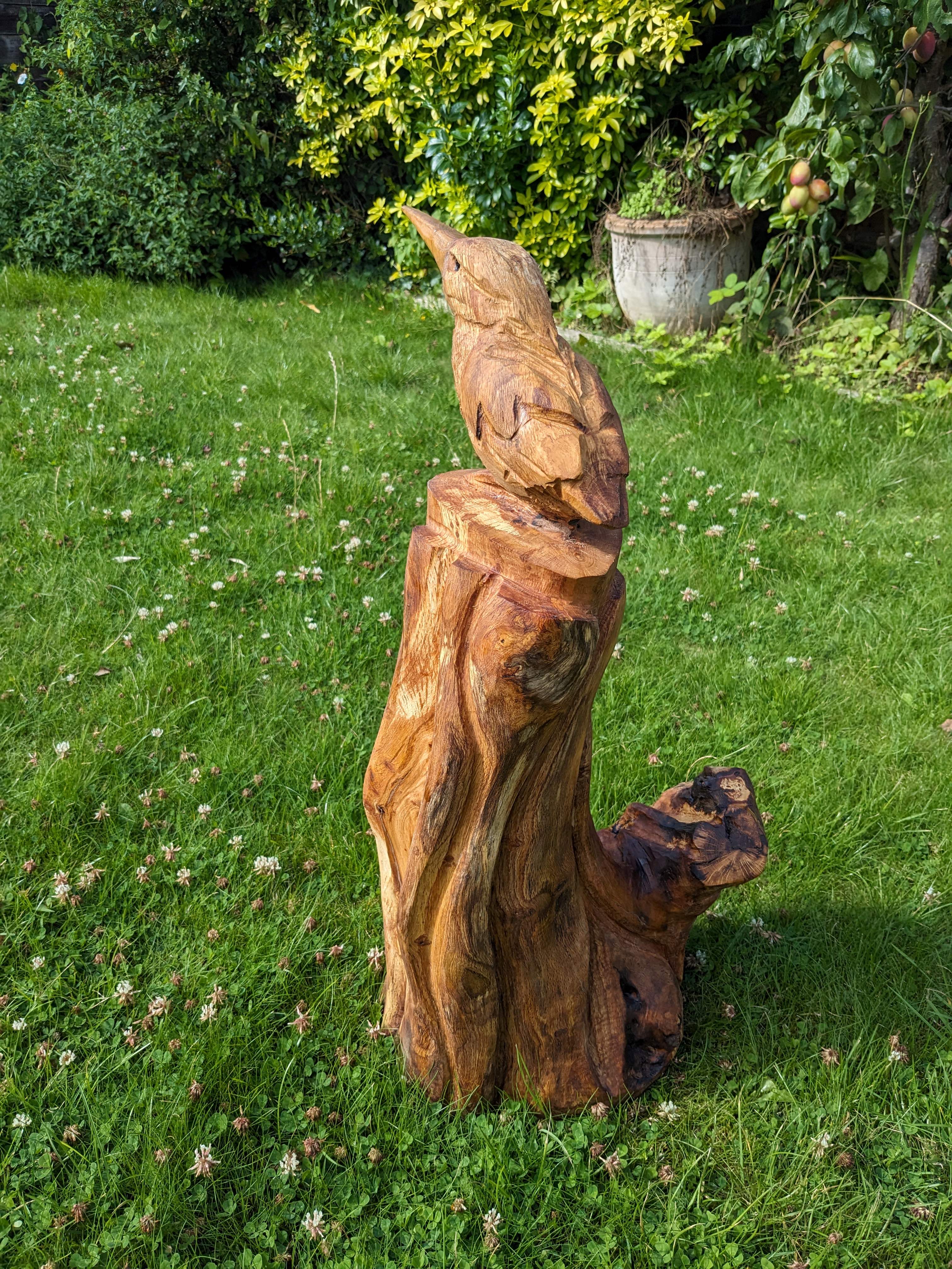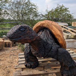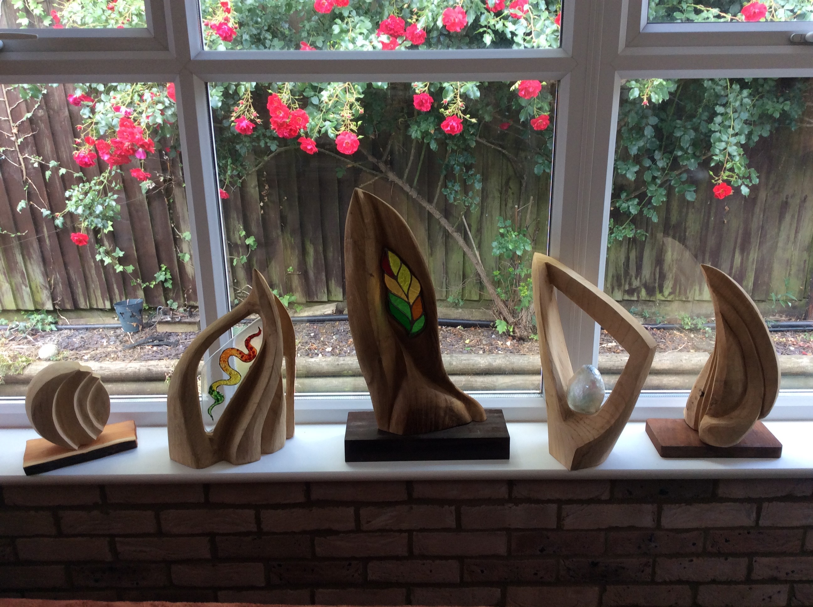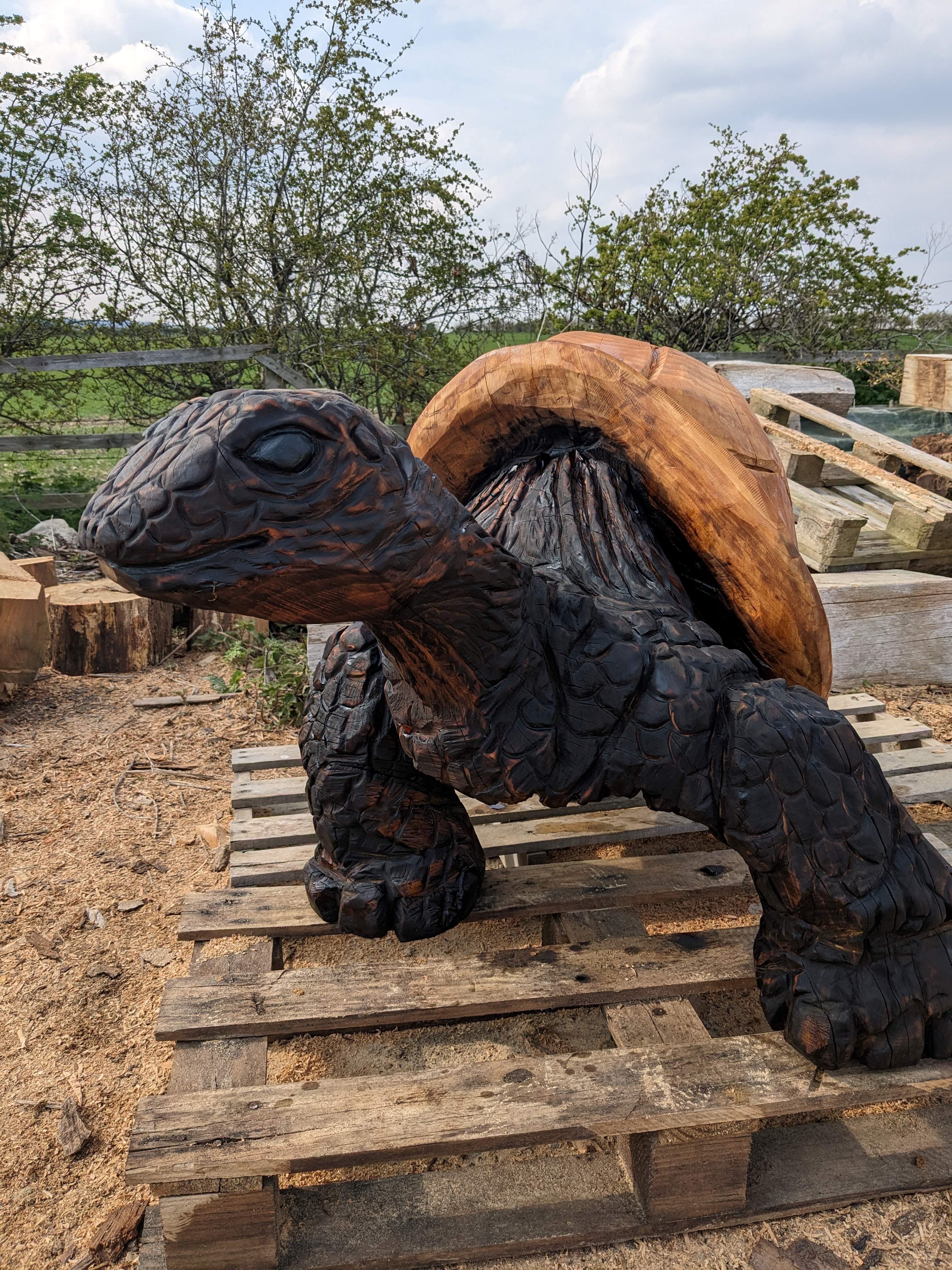 Chainsaw Woodcarver with Ceramics and Acrylic Pour Painting.