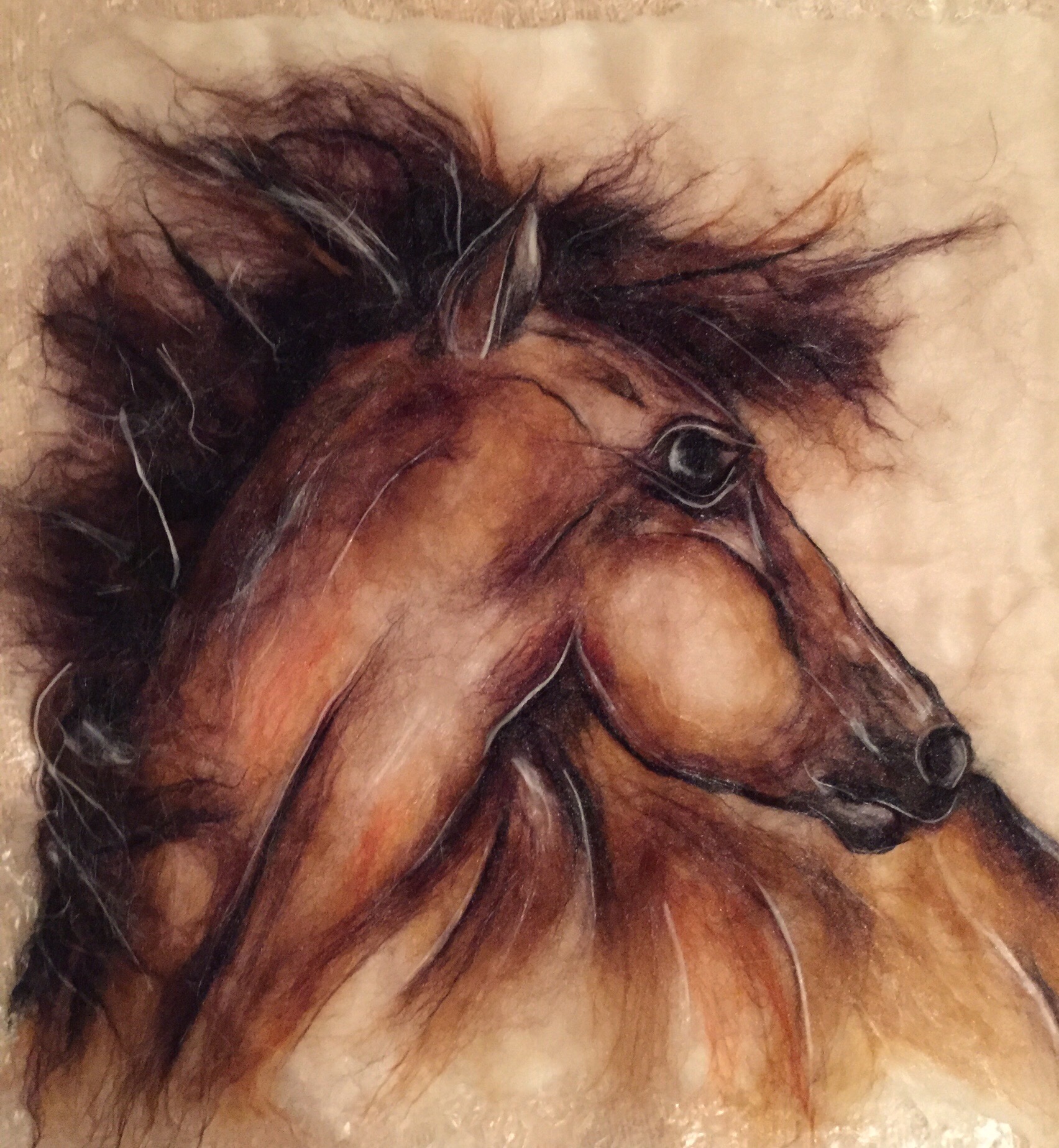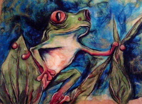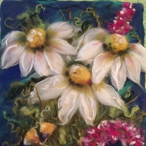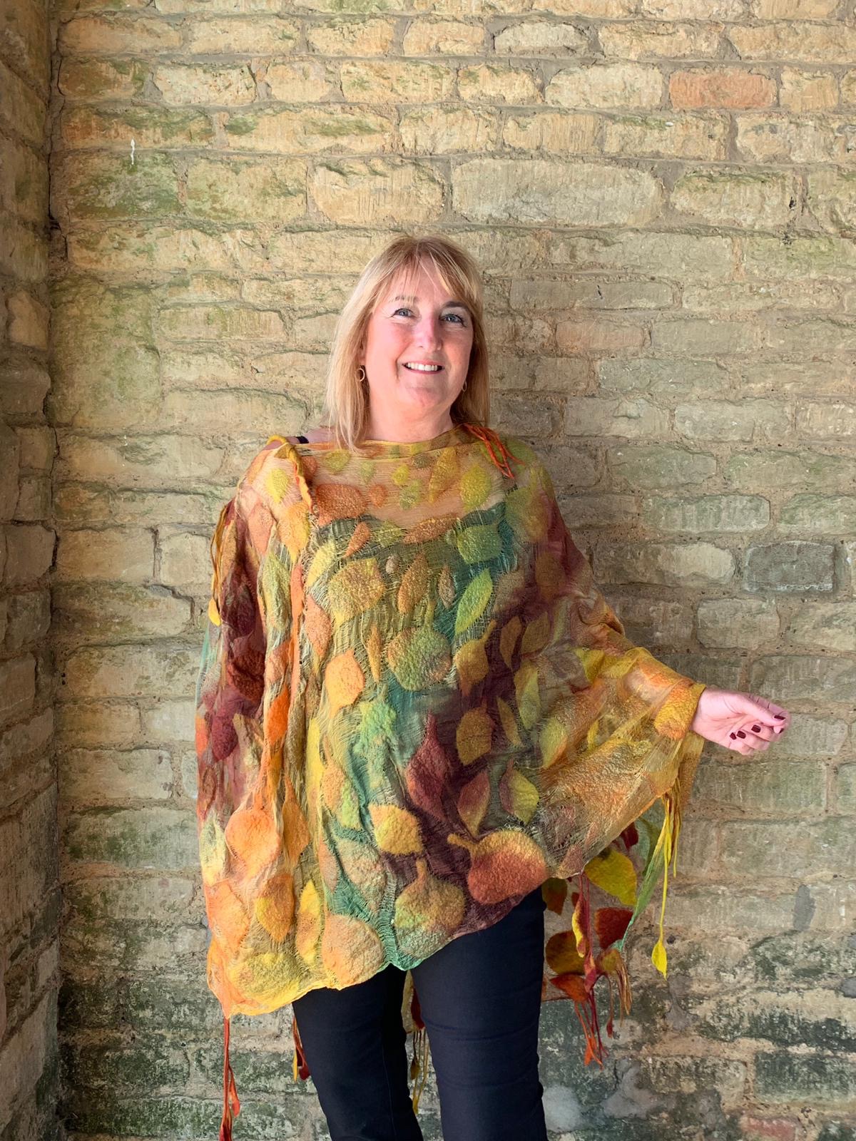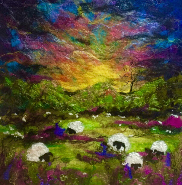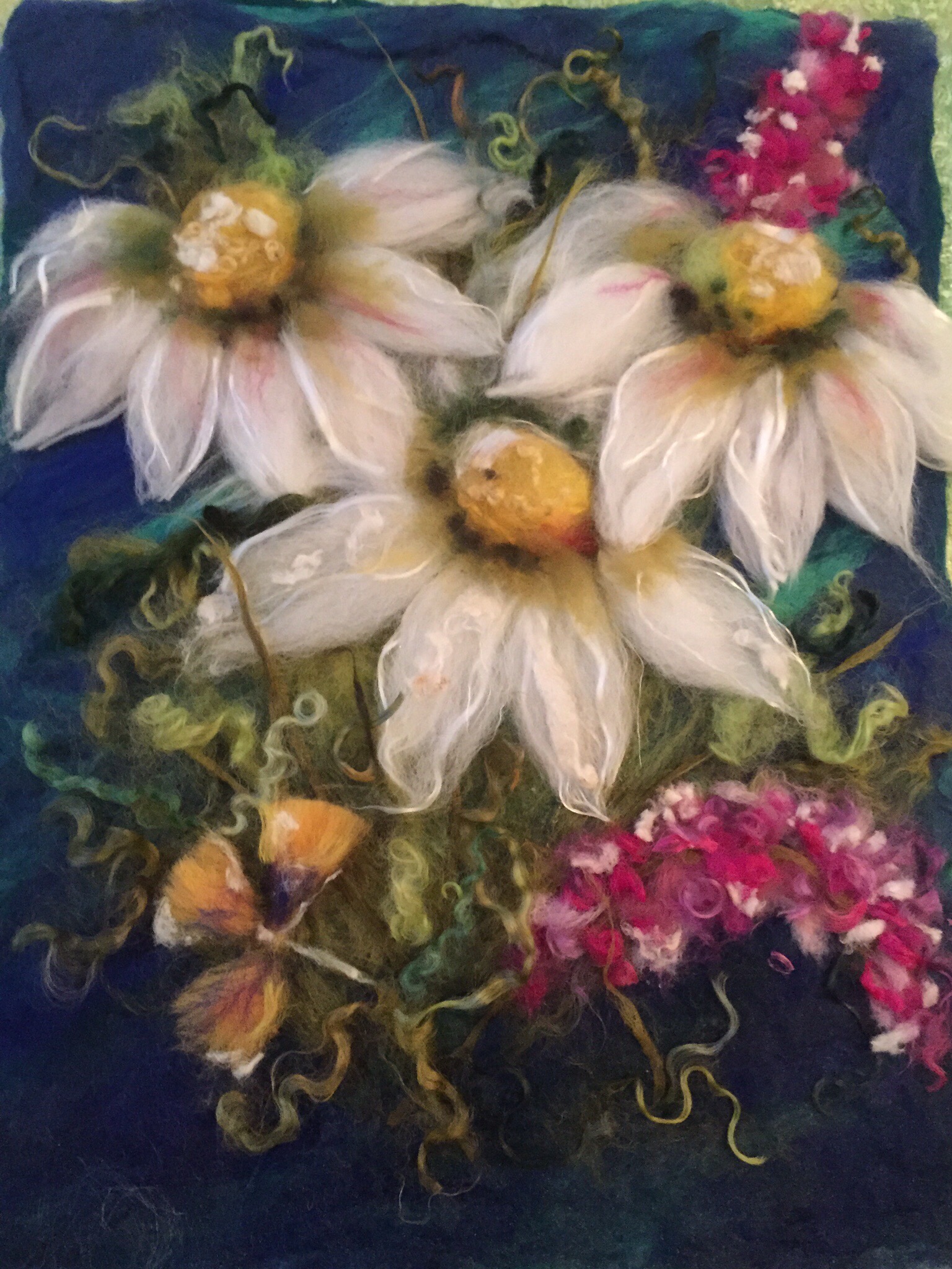 I am a fibre artist, creating pictures and wearable art with wool and silk fibres.