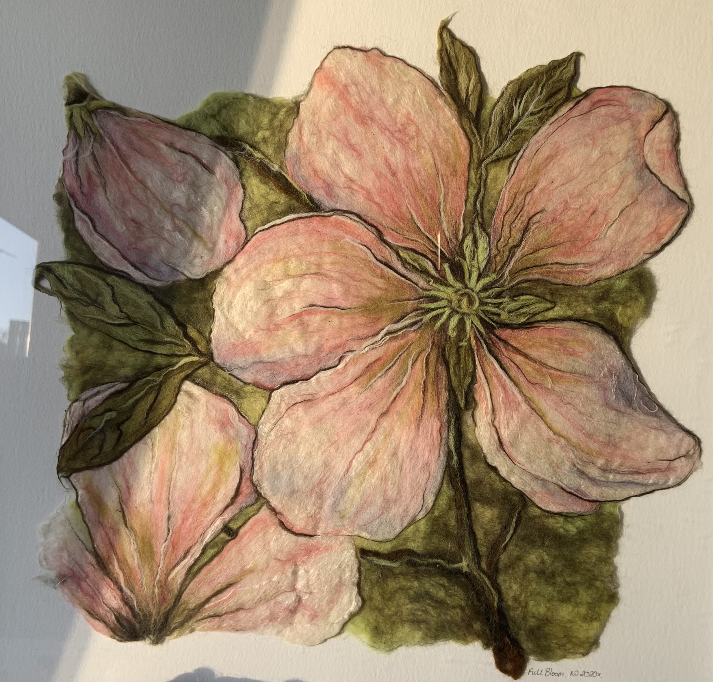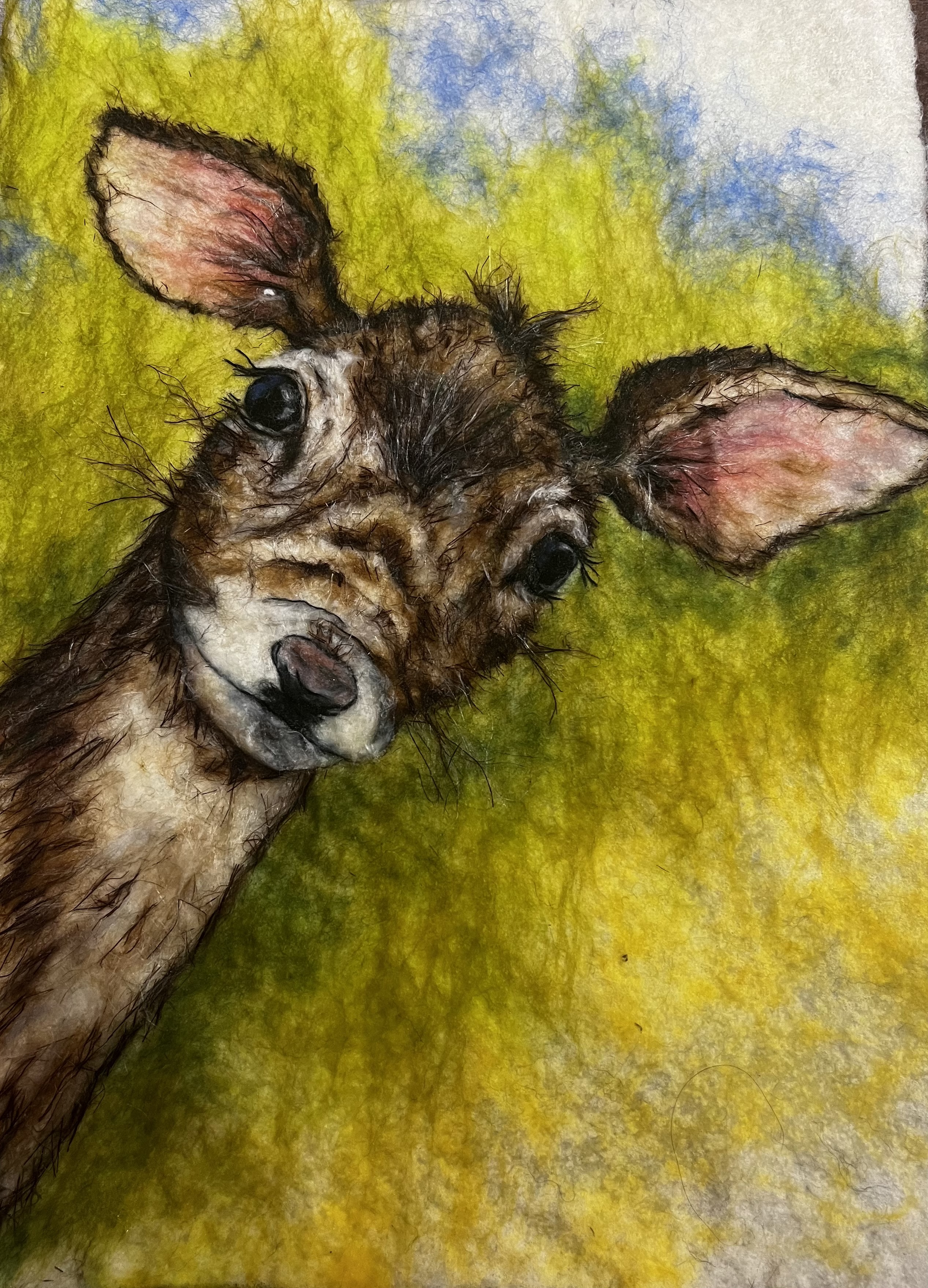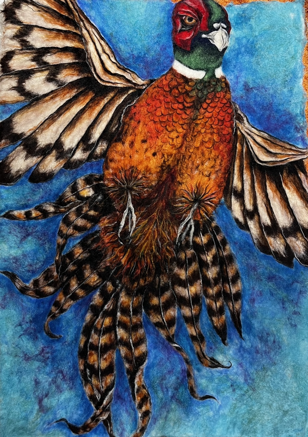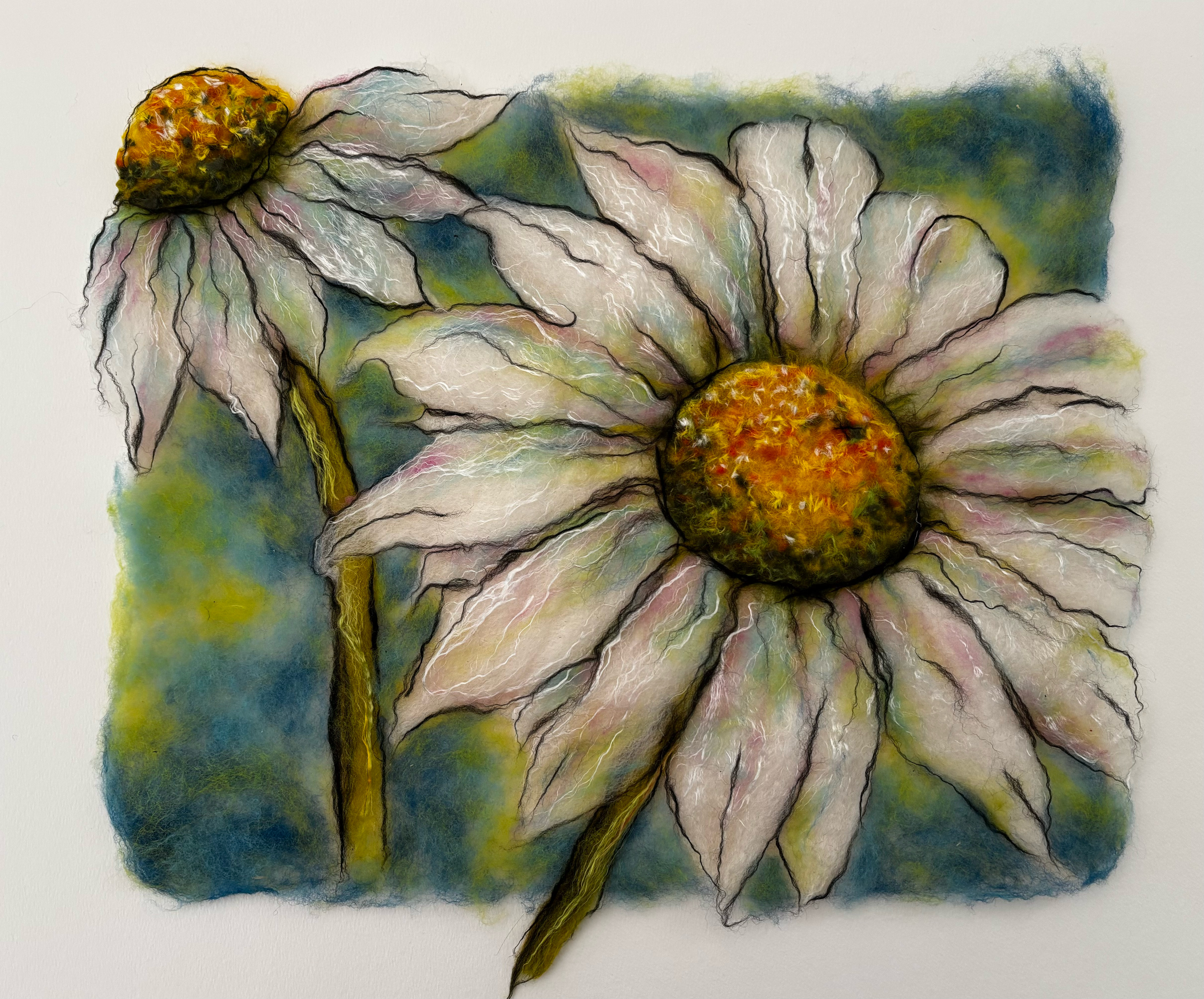 I am a fibre artist, creating pictures and wearable art with wool and silk fibres.
