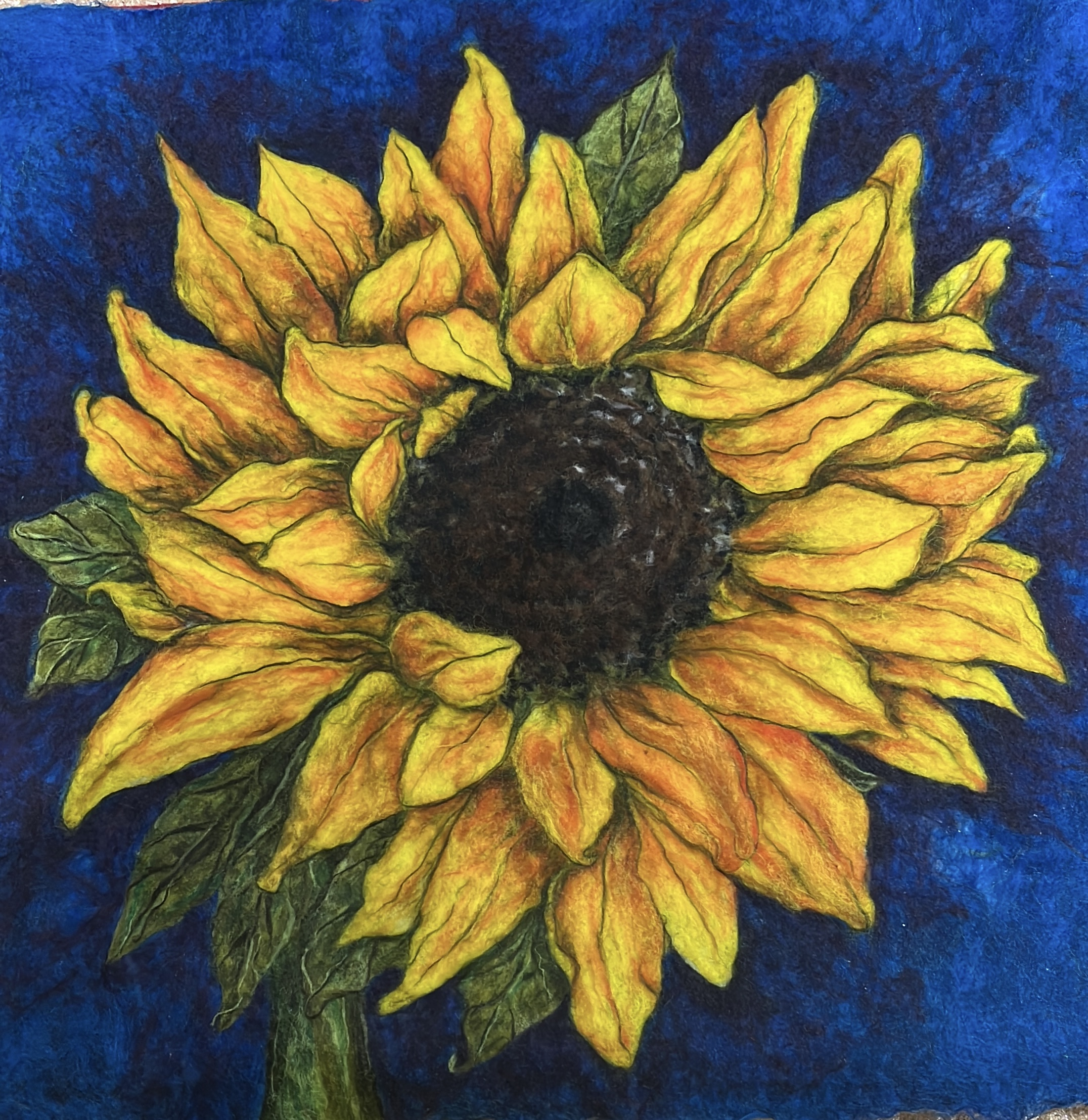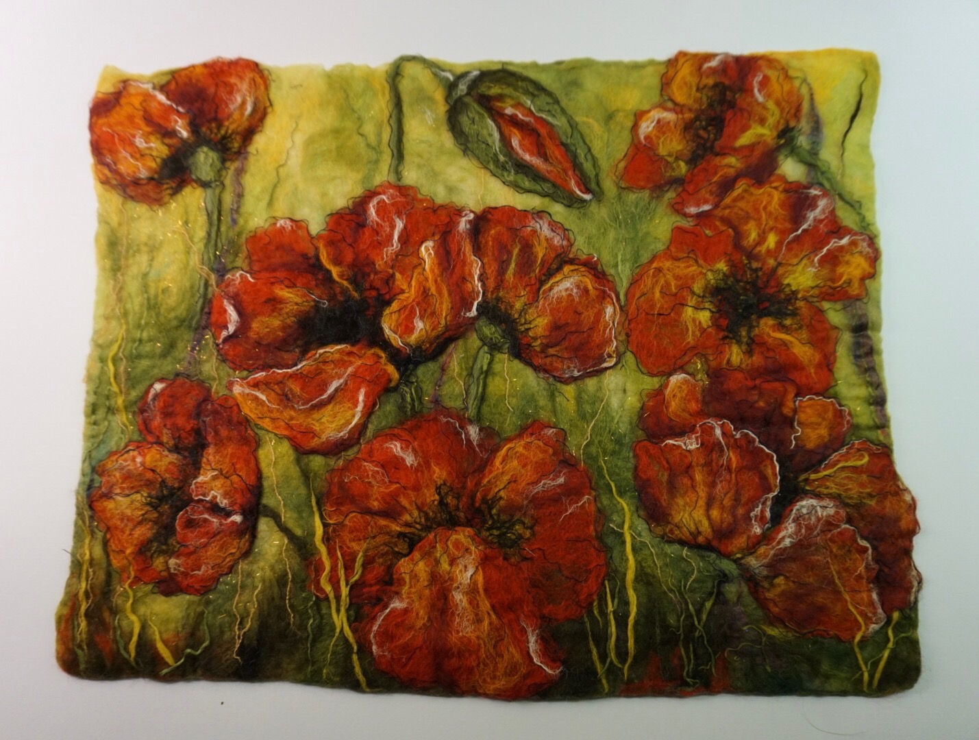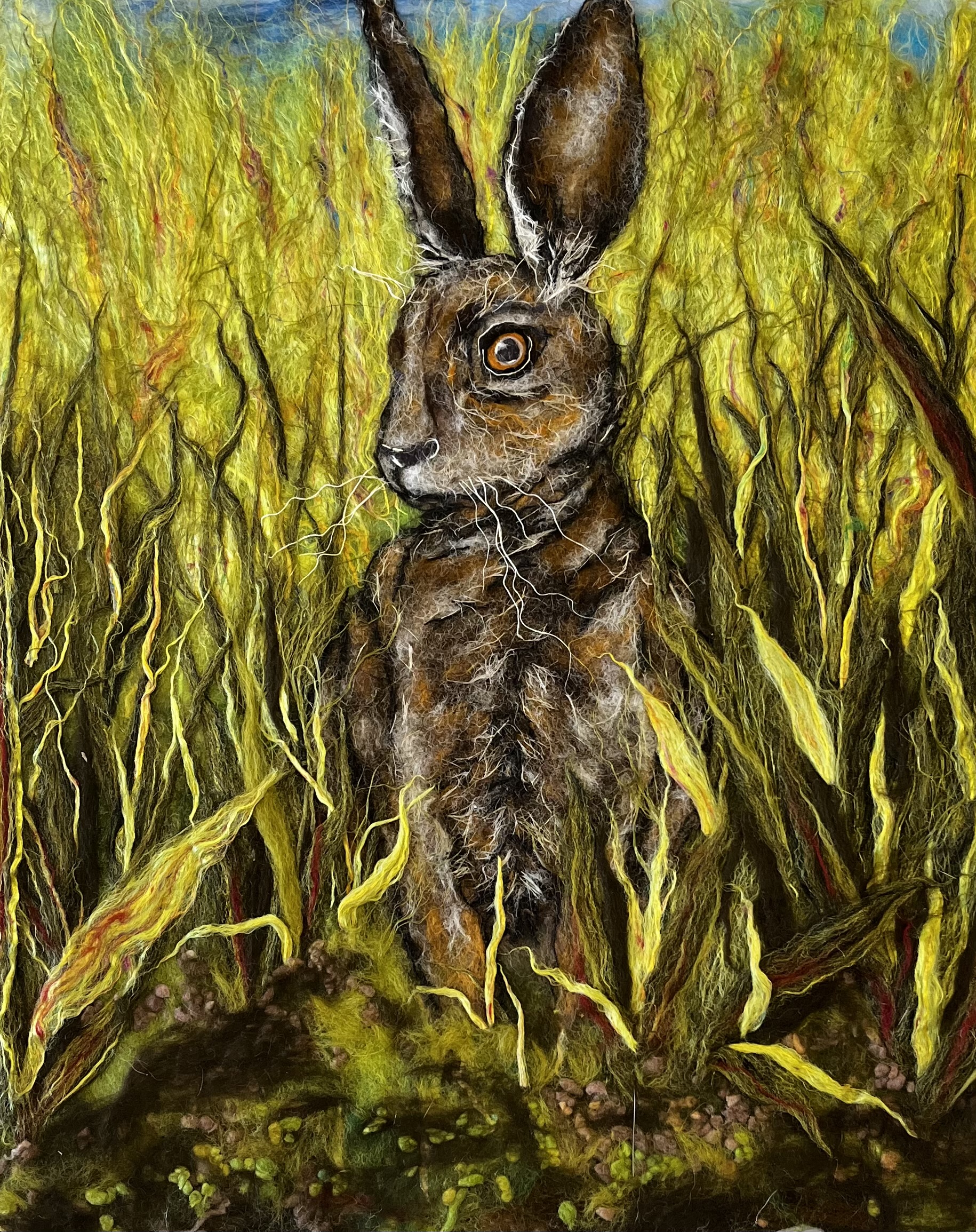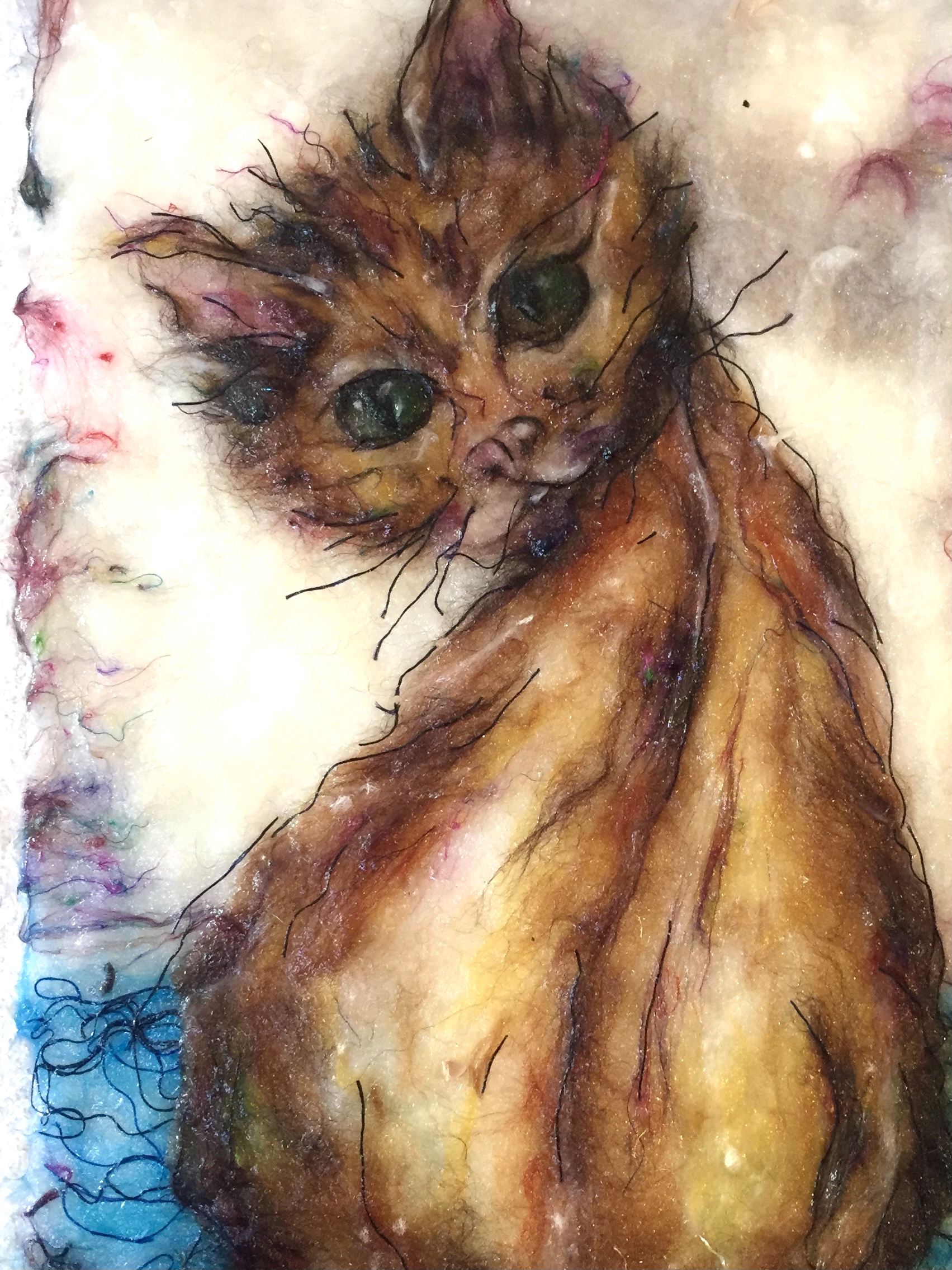 I am a fibre artist, creating pictures and wearable art with wool and silk fibres.