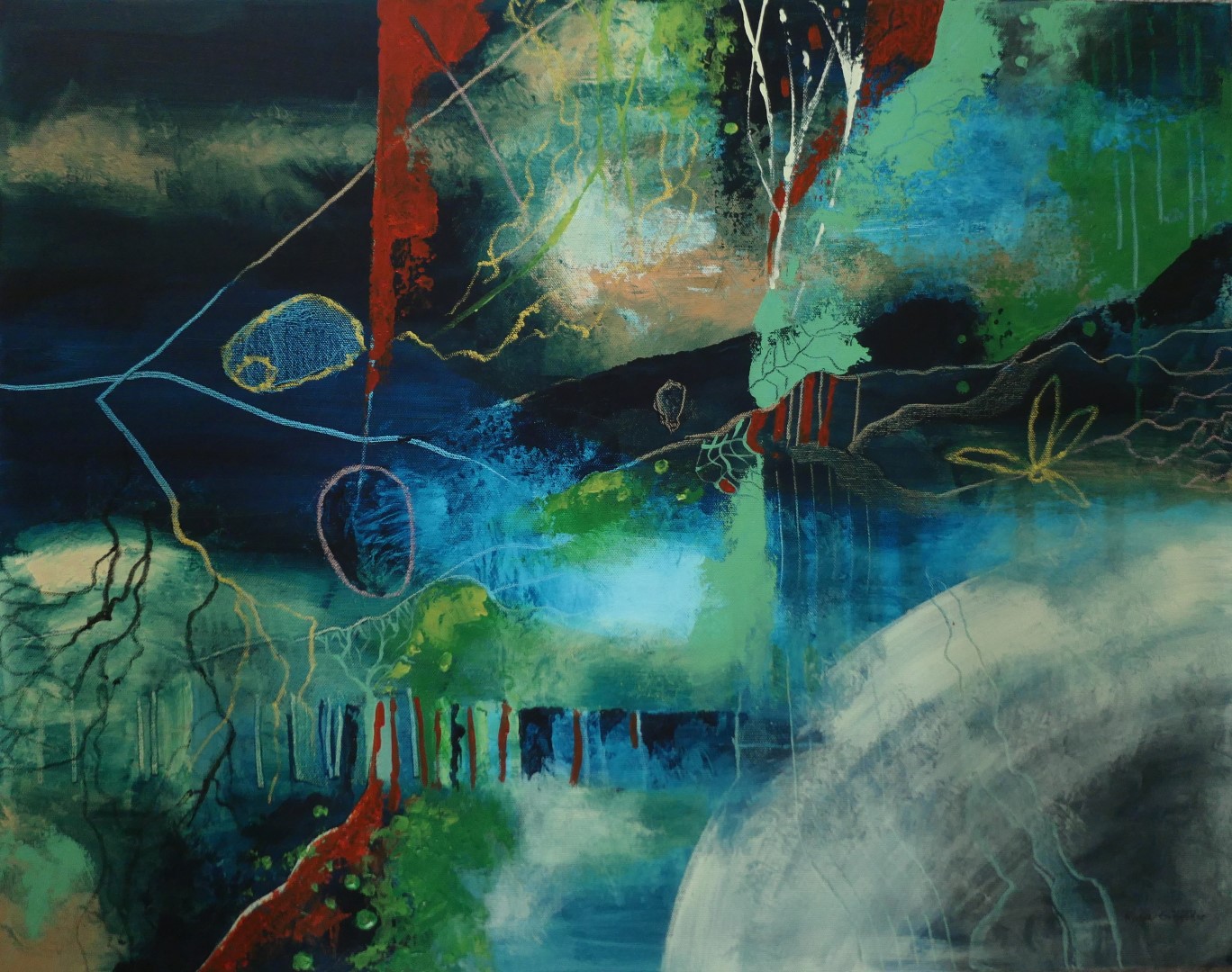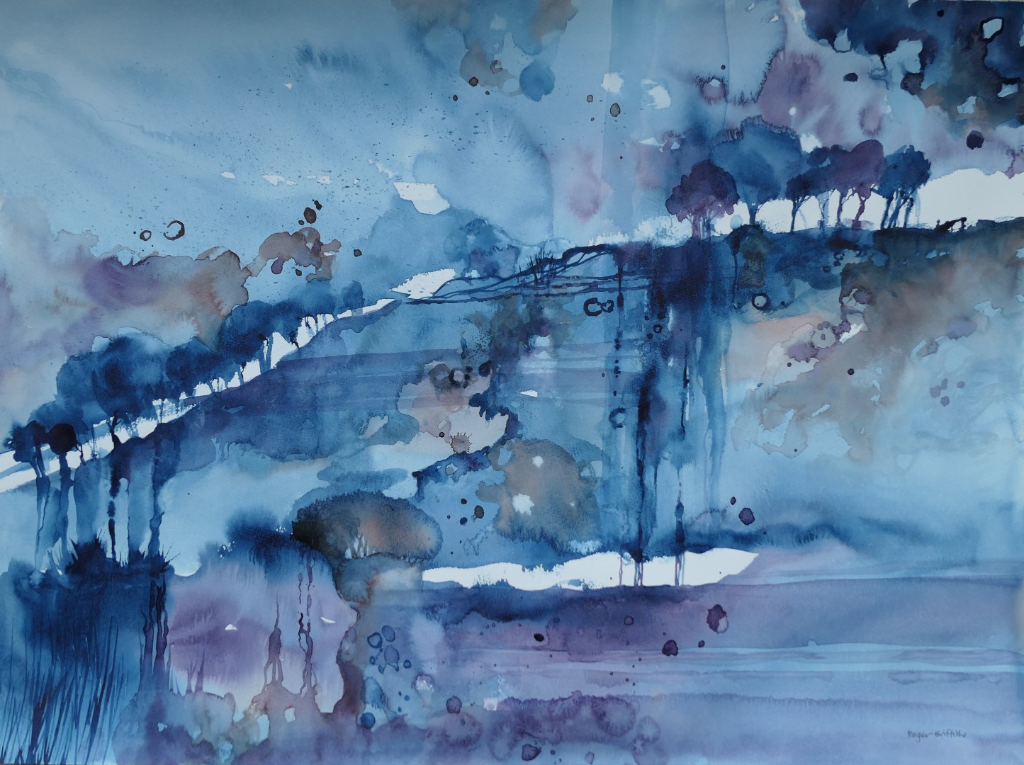 Award-winning landscape artist, unique colourful expressive style, abstracts, in watercolour and acrylic based mixed media