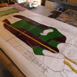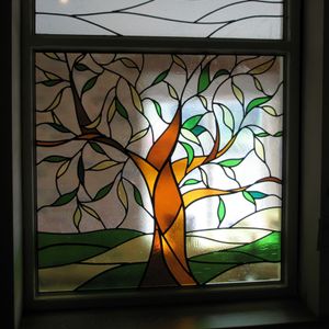 Specialising in glass painting and staining allows me to not just work with leaded lights (coloured glass and lead) but to manipulate the light through the coloured glass to create images either traditional or abstract.