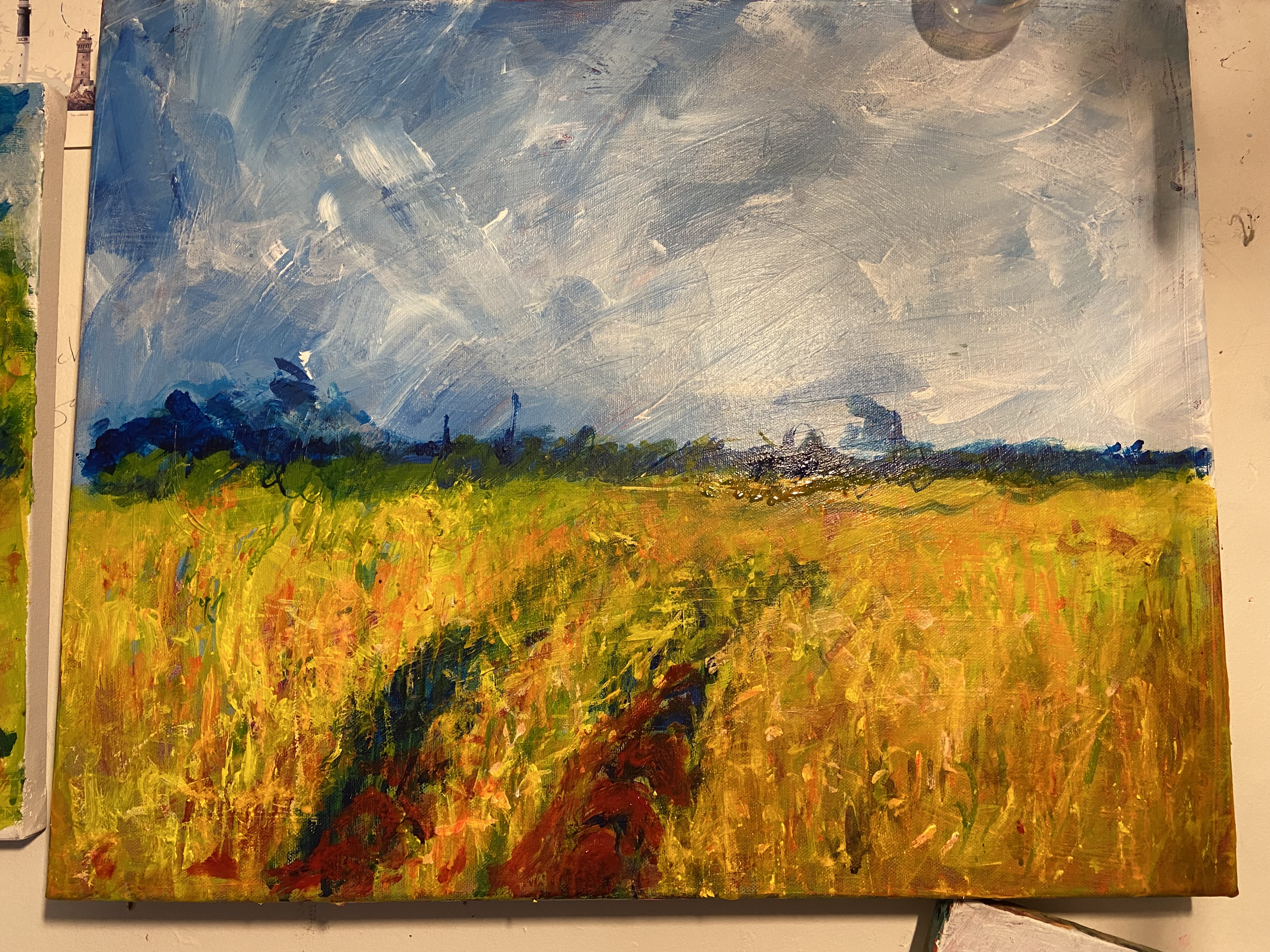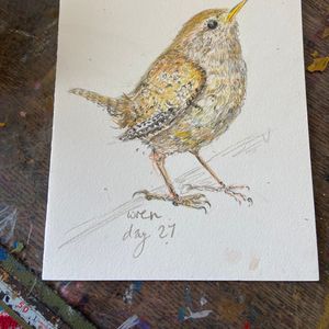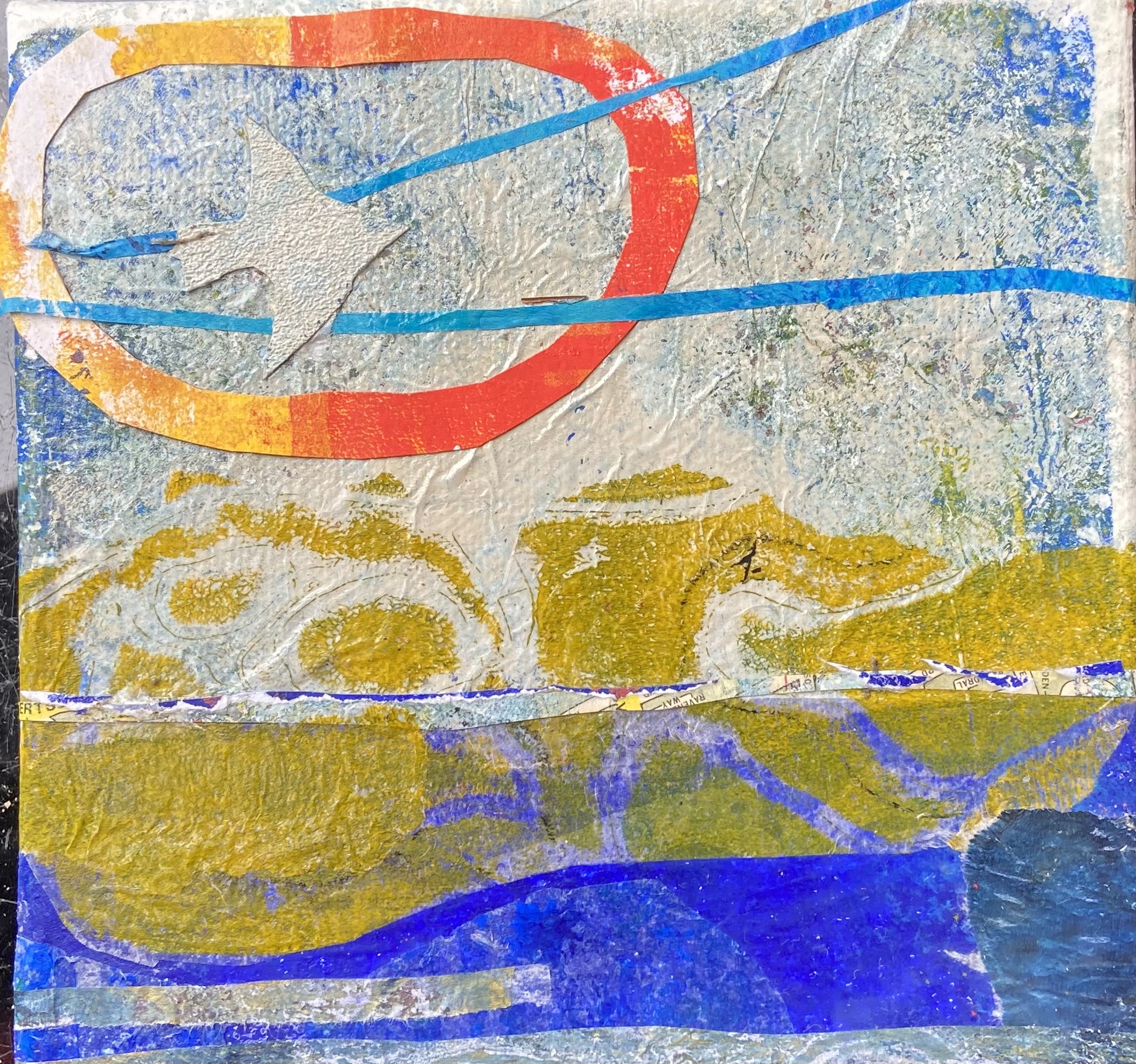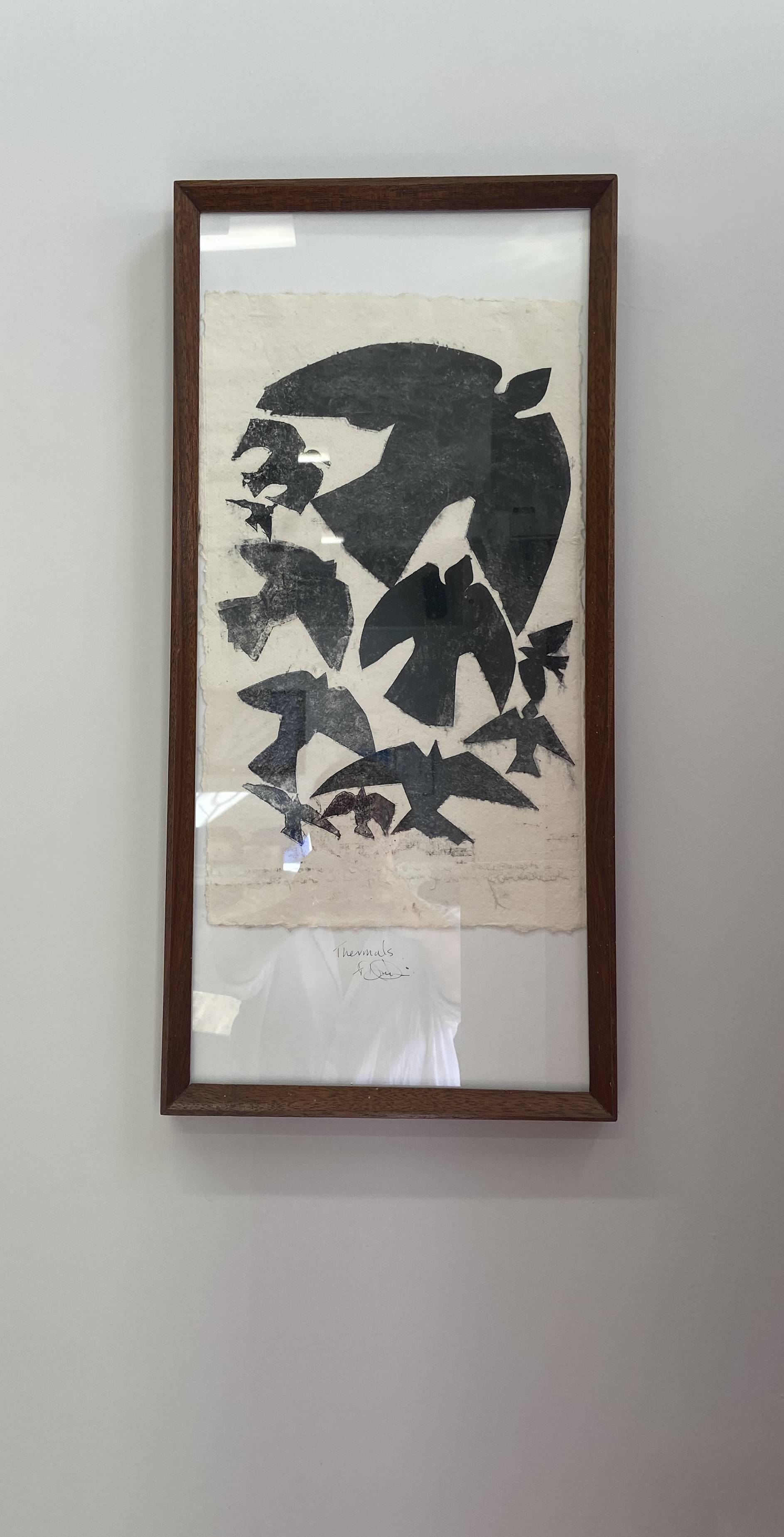 Donna Drouin is a printmaker, poet and painter whose work stems from an almost daily plein air practice of using inks, watercolours, pencils and found natural media. These observations are from places that she knows and loves in the surrounding landscape l she tries to capture an essence of being present in reworded spaces. The threshold of wild and domesticated places which bare the marks of human existence, from the bailing string repairing fences, wonky telegraph poles, to the ridge and furrow of oxen and farmer. She explores the Narrative of the Delphic marks of ancient river beds, where nature rubs uneasy shoulders with the human and birds watch the rhythm of life. Those marks and repeating forms become the bedrock of her studio practice. Where she pushes, pulls and manipulates the marks and words through the processes of collage, printmaking and painting. Donna is mindful of the environment in her work, and is constantly looking at ways of reducing her impact in her work, experimenting with making her own pigments as part of the process of carving, scratching and inking mirroring the drilling, broadcasting and harvesting of the landscape, the current print works are exploring using repeating motifs of bold abstracted bird forms containing and overlooking the topographies that they inhabit.