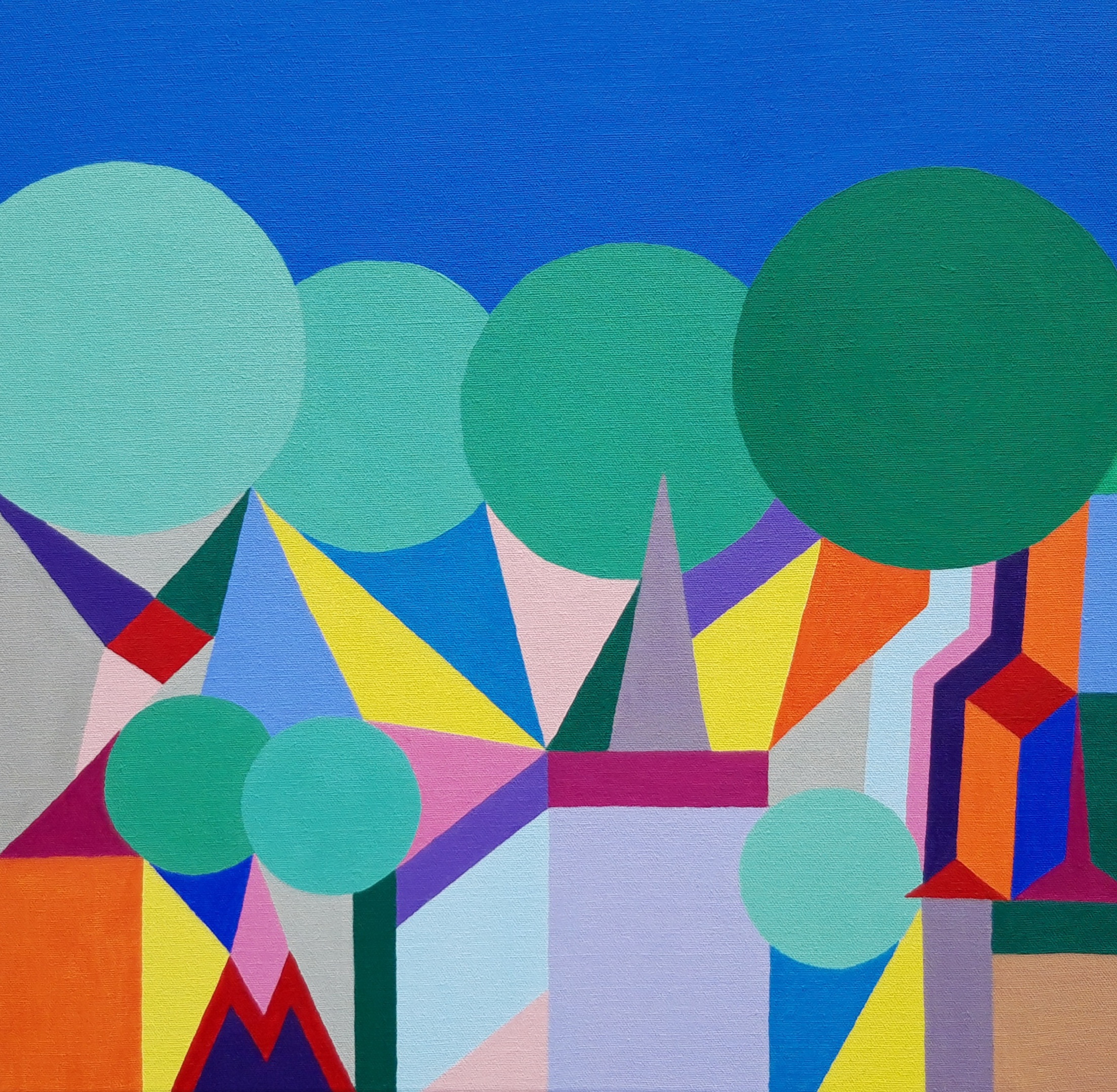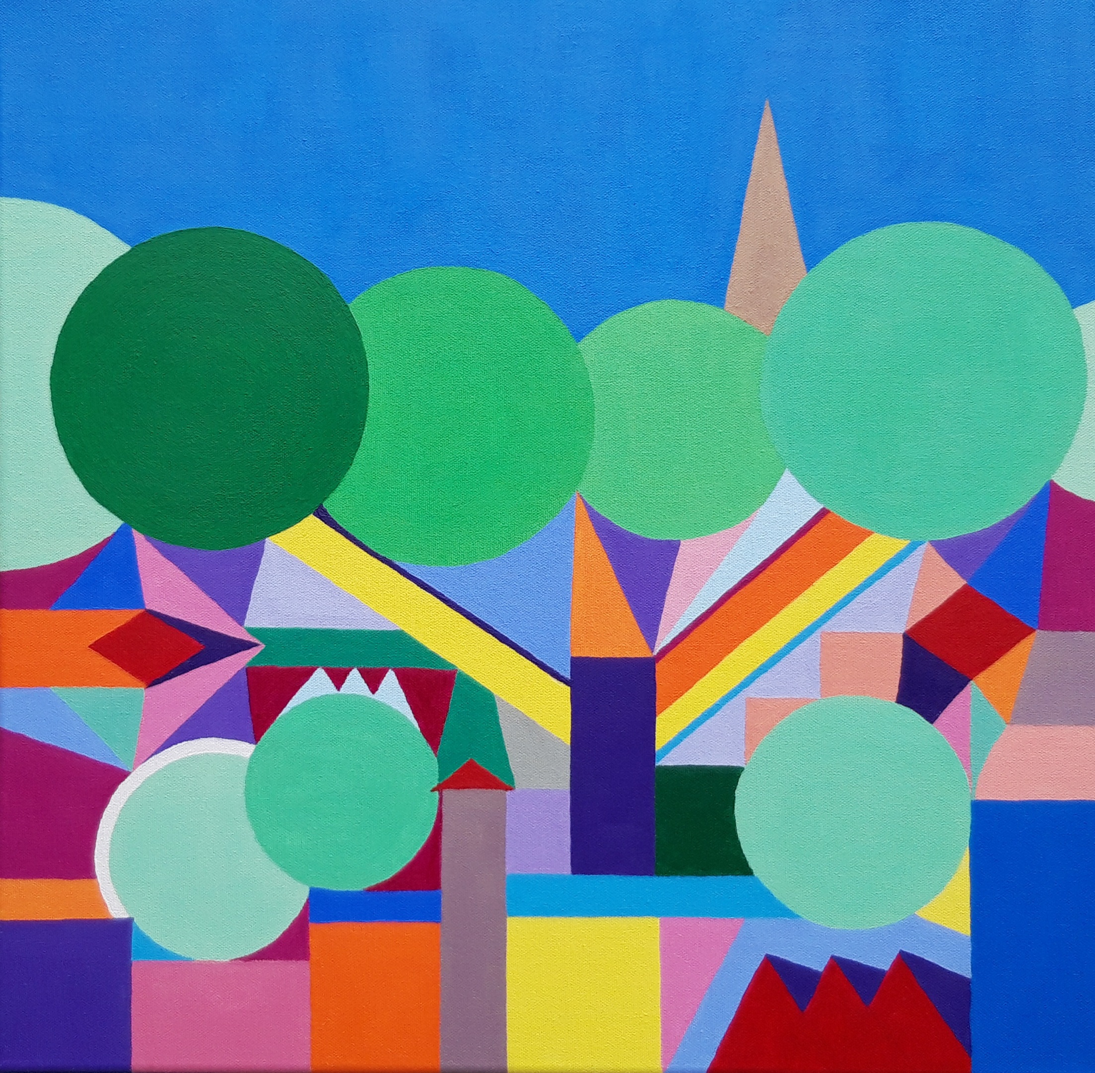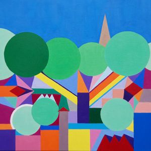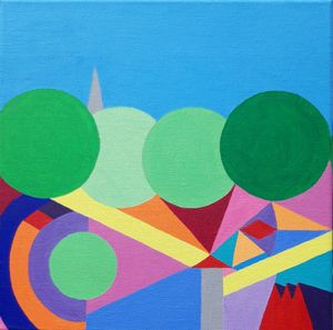 Using acrylics I paint abstracts with bright colours and bold shapes.