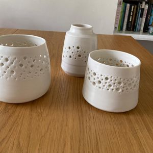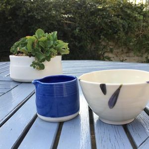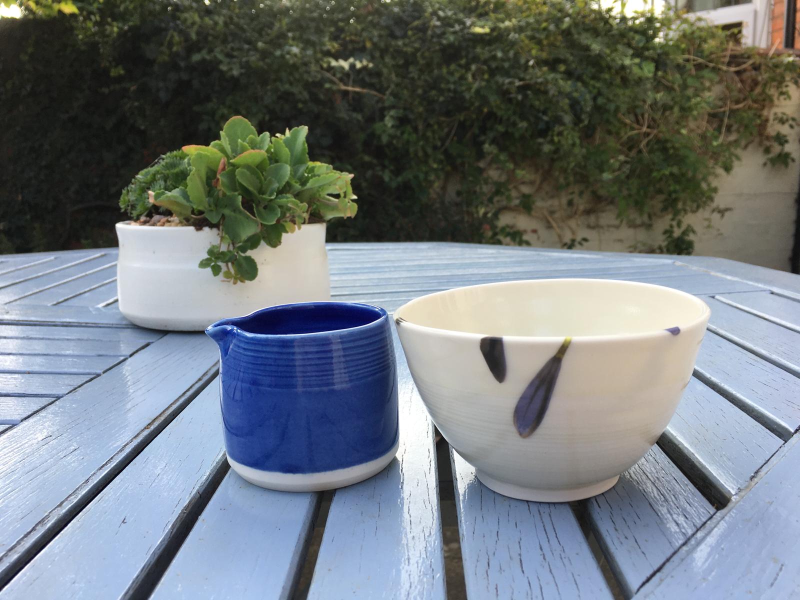 I make wheel thrown functional pots. Mostly using porcelain. My glaze colours are inspired by memories of Devon.