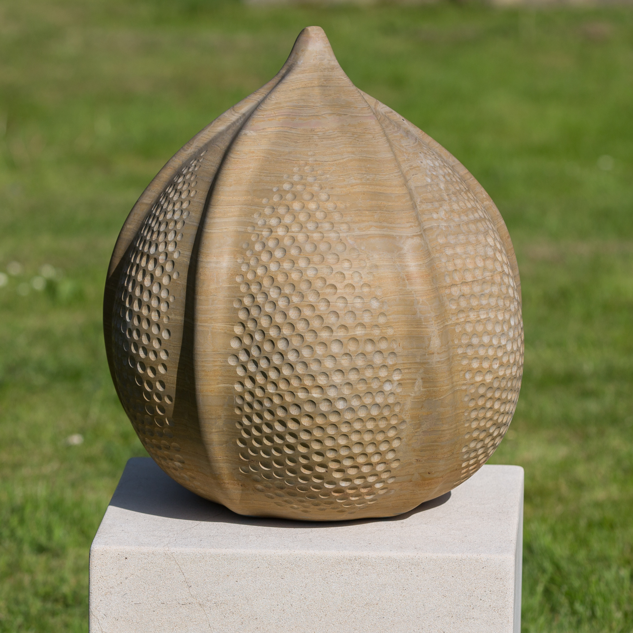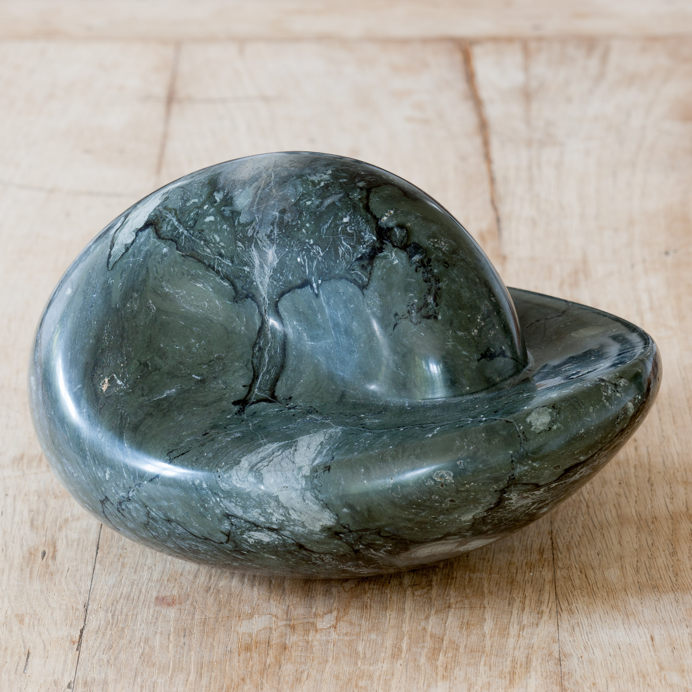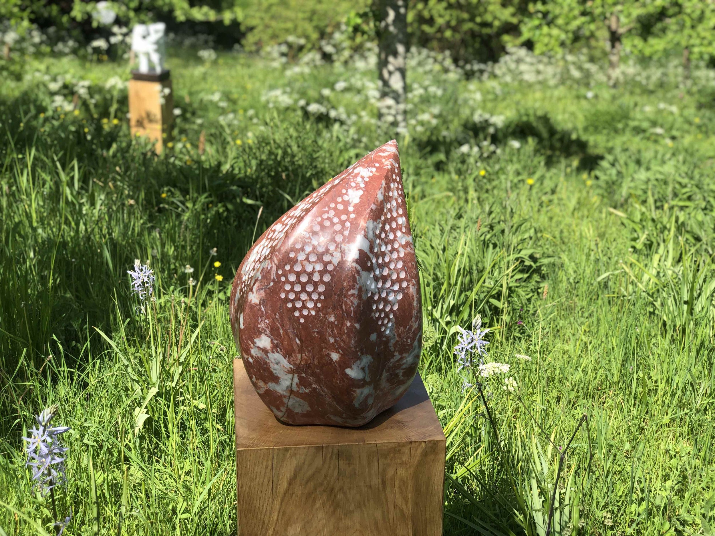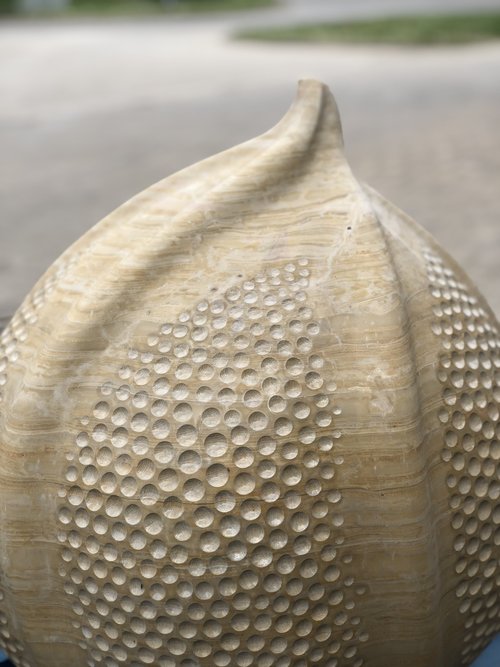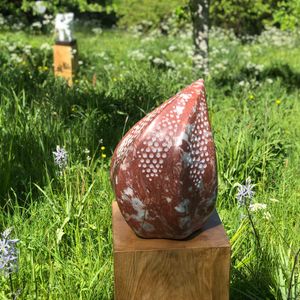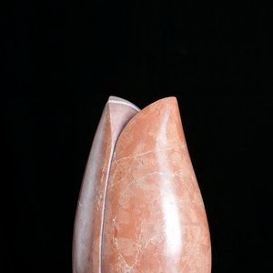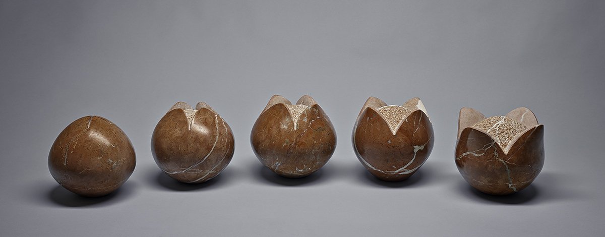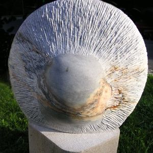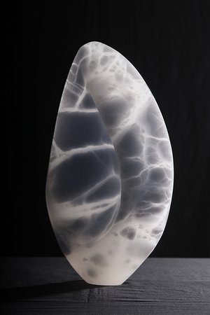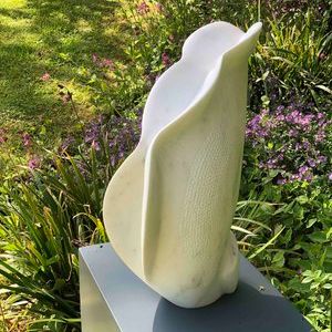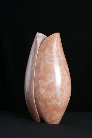 Her work appears as heir to the great organic sculptors from the prior century: Brancussi, Arp, Moore... Nevertheless she goes beyond these with a personal approach by focusing more on the tactile than the visual; where complexity and feminine emotion, radical or even contradictory at times, abound; where the heart, motherhood, one’s identity are delicately received and transmitted by the stone through the nuances of the dim light that slides over the surface, as the result of an interior process free of technical difficulties.