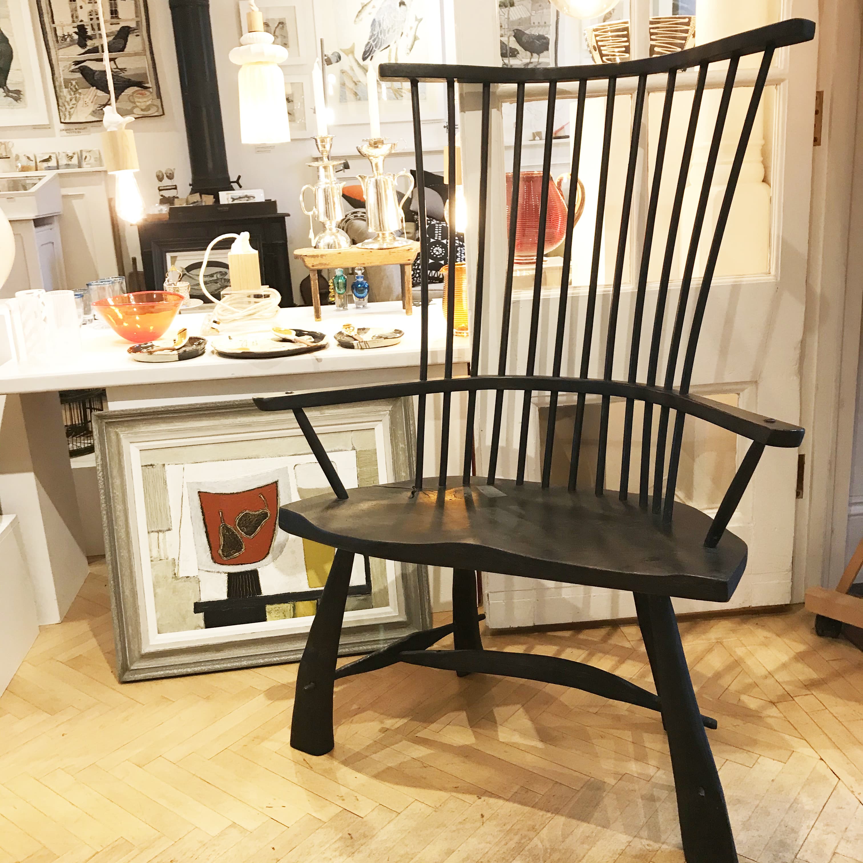 My stick chairs are based on Windsor design. They differ from free-form chairs in that the components are turned on a pole lathe. I don't turn the spindles (sticks) preferring to use a rounding plane (a tool a bit like a giant pencil sharpener).