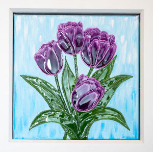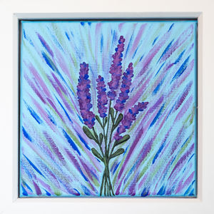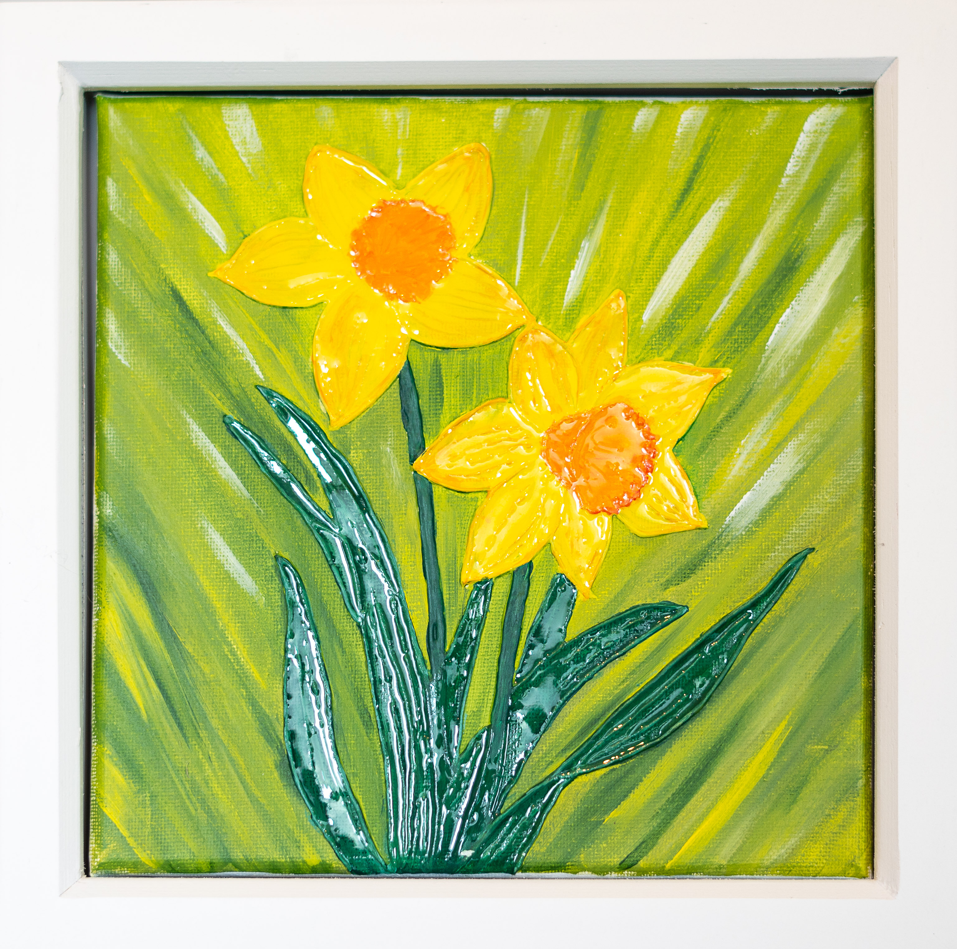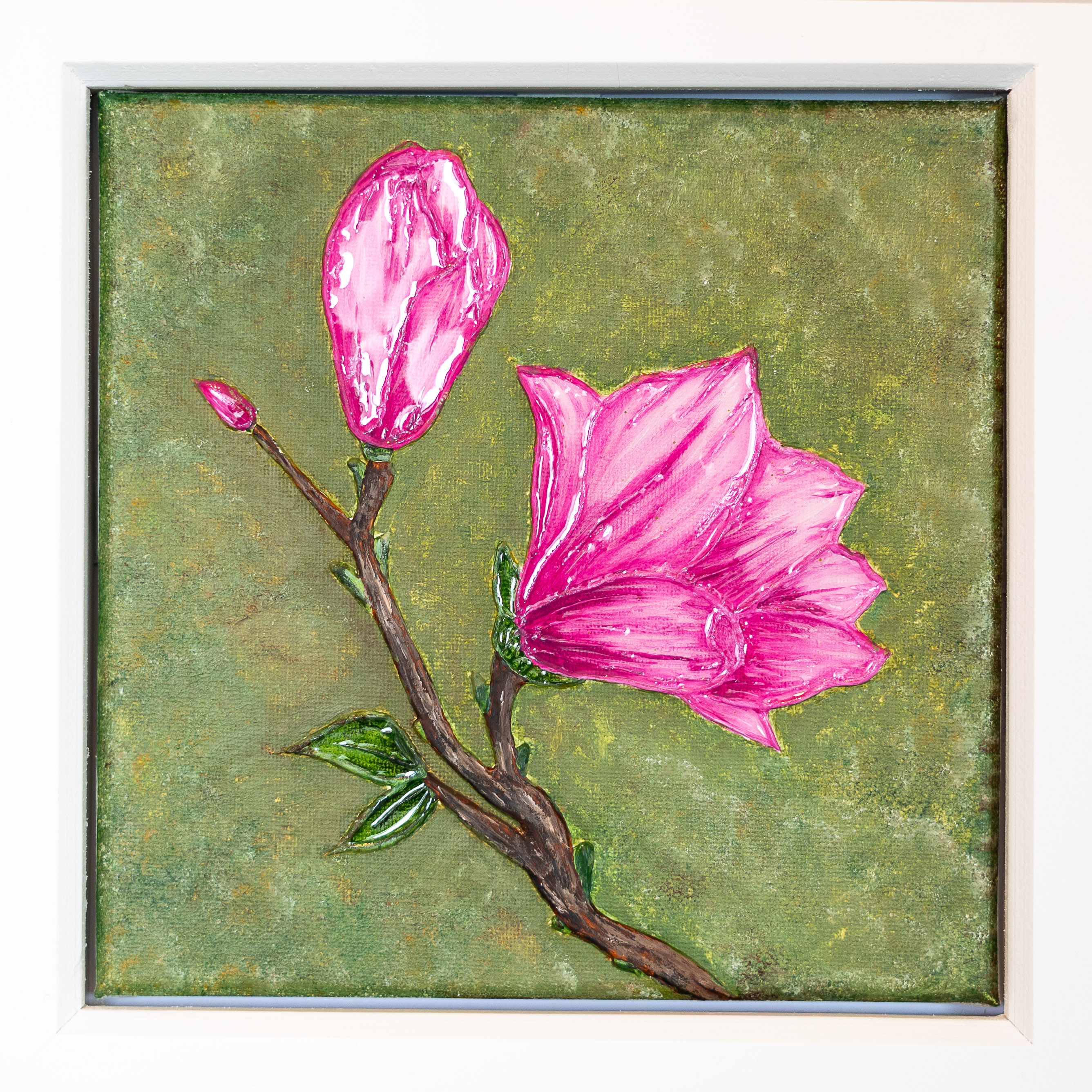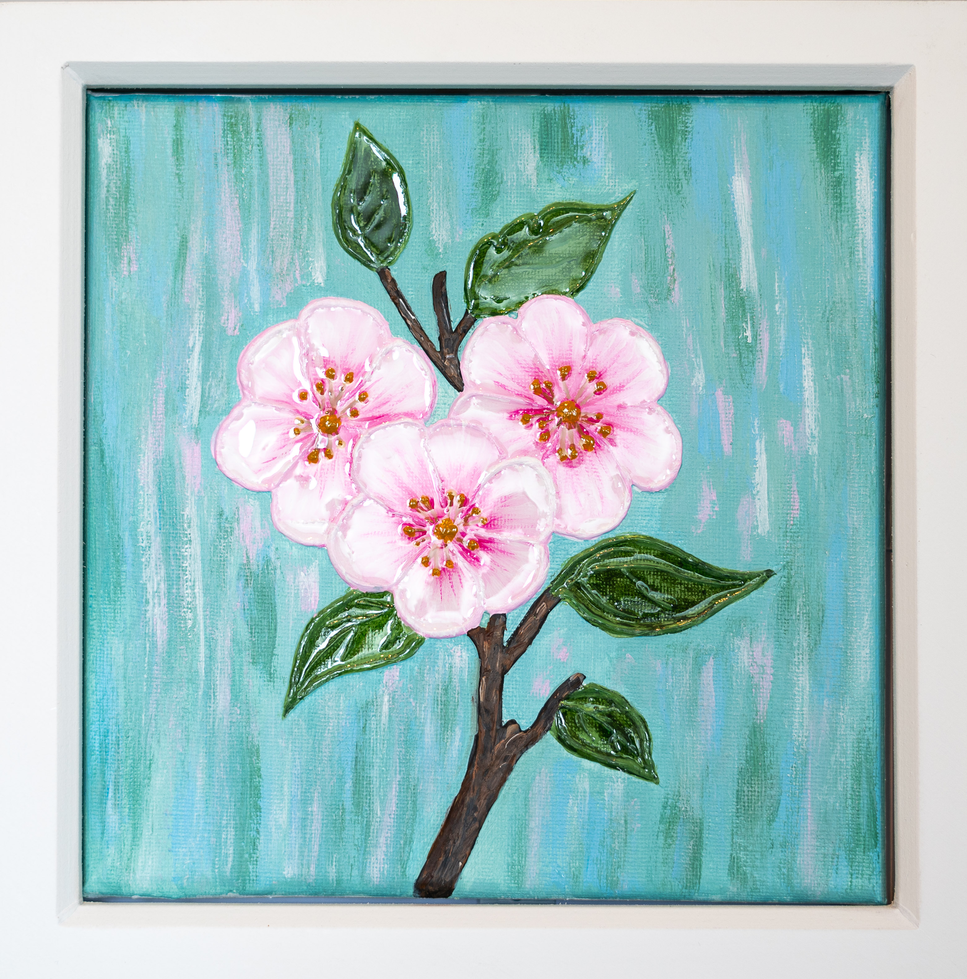 My work explores themes of nature through textured, vibrant canvas paintings.