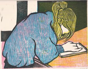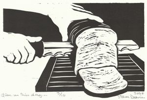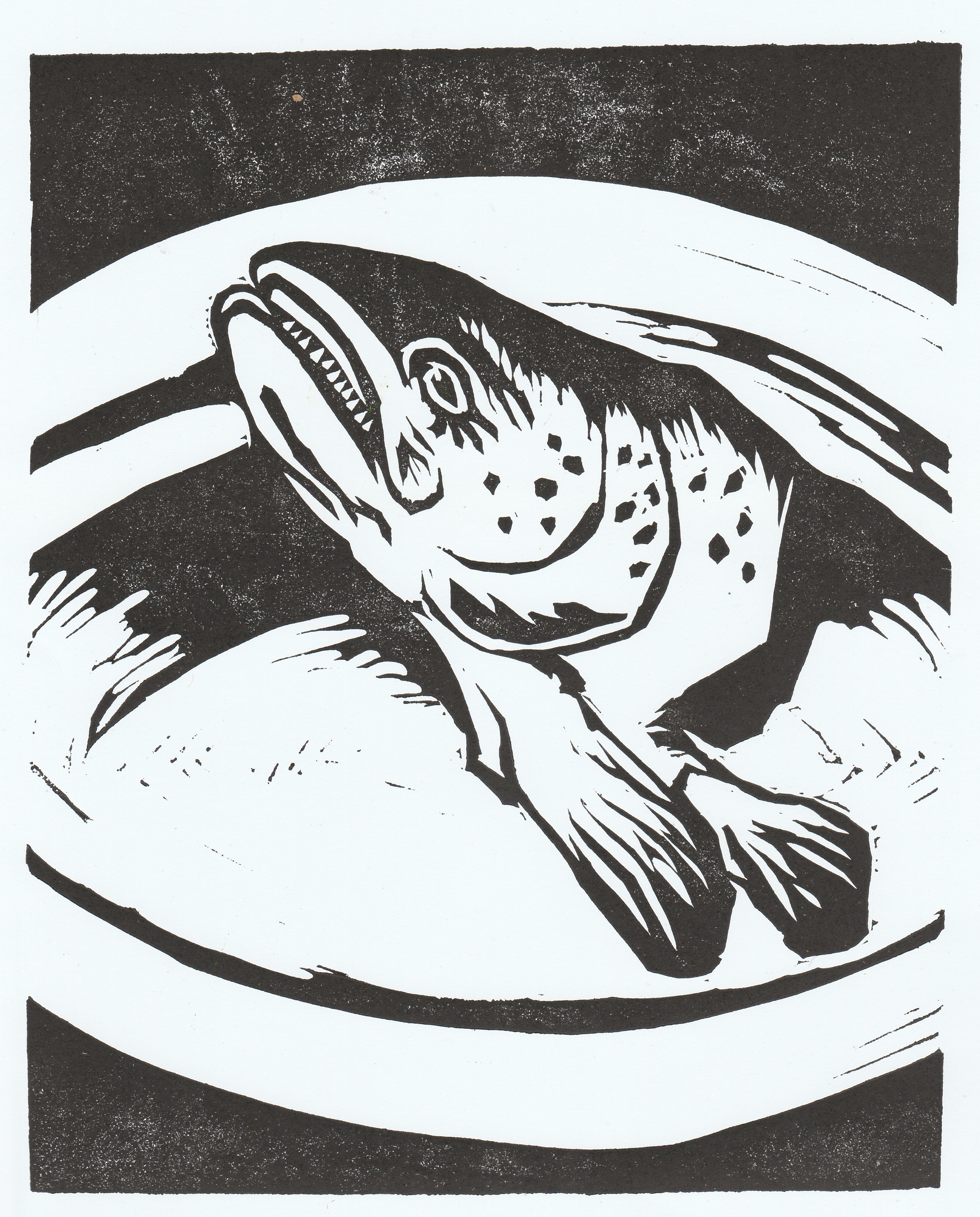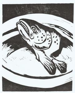 Resident printmaker at Art at the Alex in Rugby, I create lino and woodcut prints that flow from who knows where.