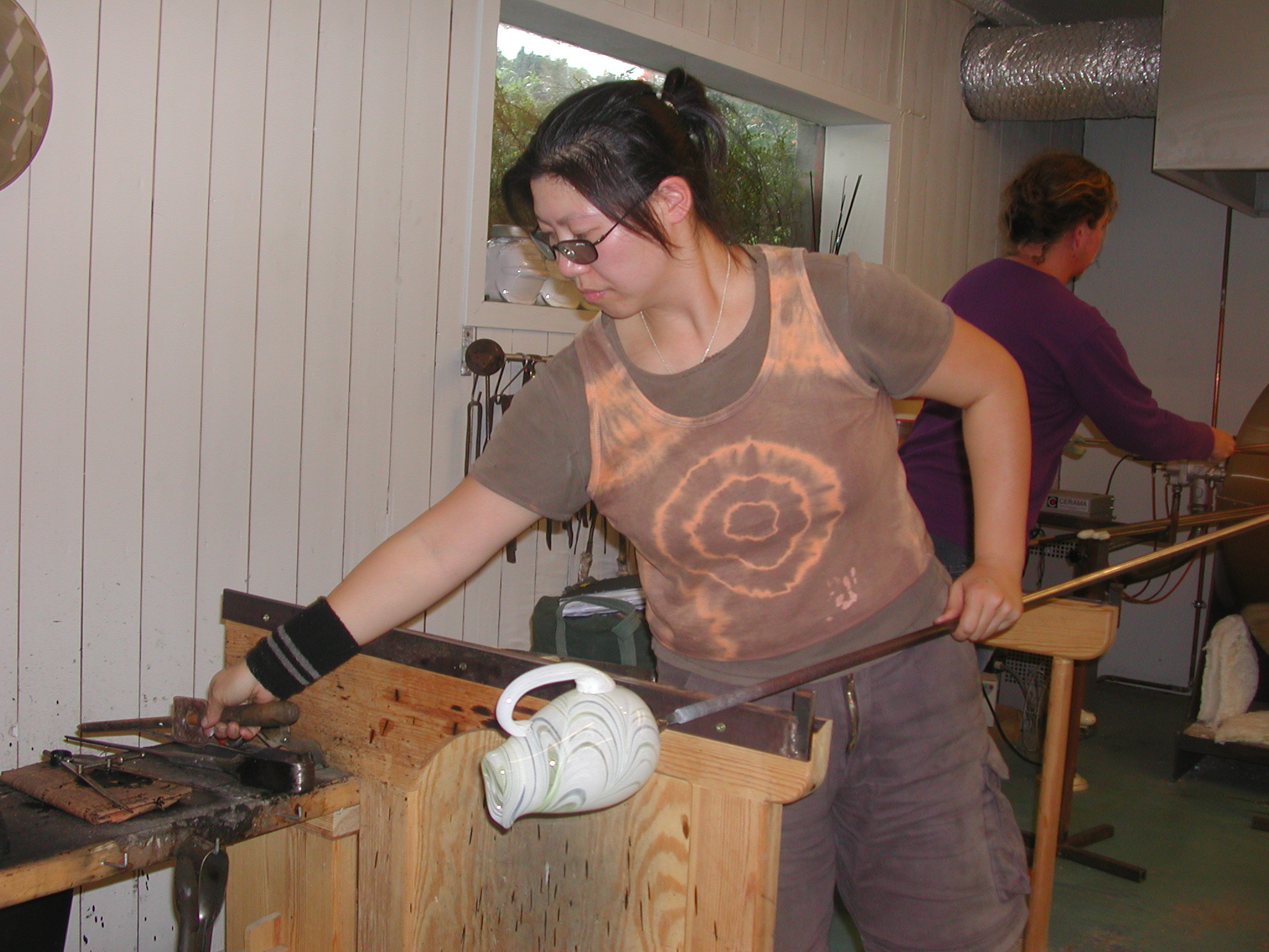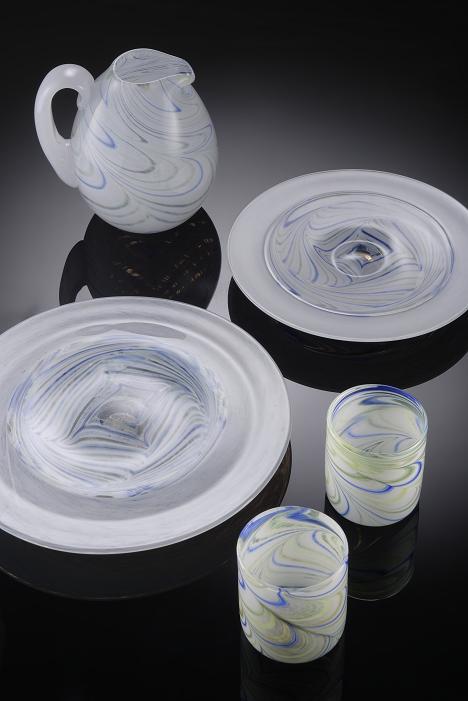 Anona has worked with glass since 1996, studying at the International Glass School in Stourbridge, graduating from the University of Wolverhampton with a degree in Glass & Sculpture. She has worked and studied in Norway and Sweden, schooling at Orreforse Glass Factory. She focuses on Blown Glass, creating contemporary functional tableware. Her tableware range includes Rocking Cognac Glasses, designed and developed during her time in Sweden 20 years ago, giving a sense of playfulness and animation; Cocktail glasses reflects her time working at a fun and colourful Norwegian studio soon after Sweden. Her works vary in styles and forms but continue to enjoy simple, clean Scandinavian lines.