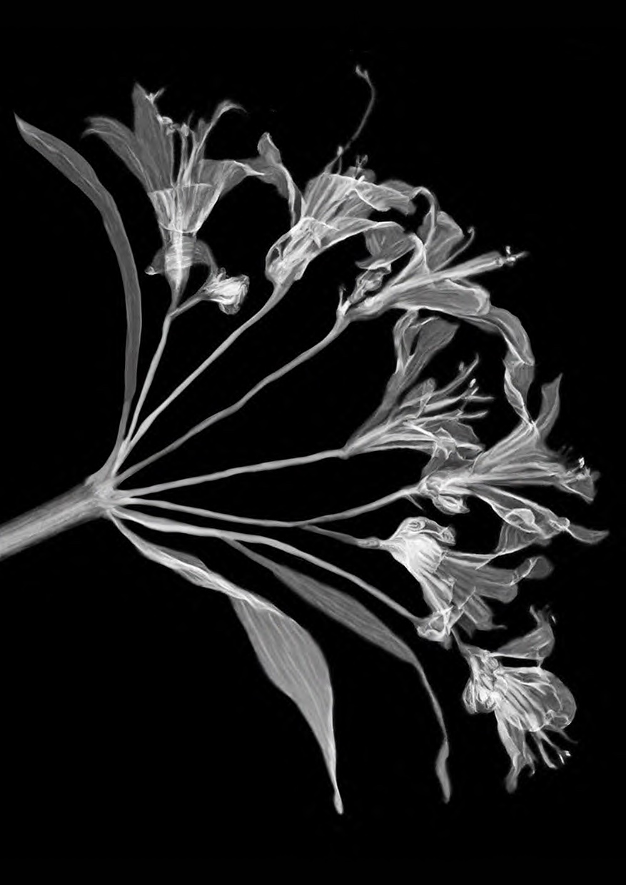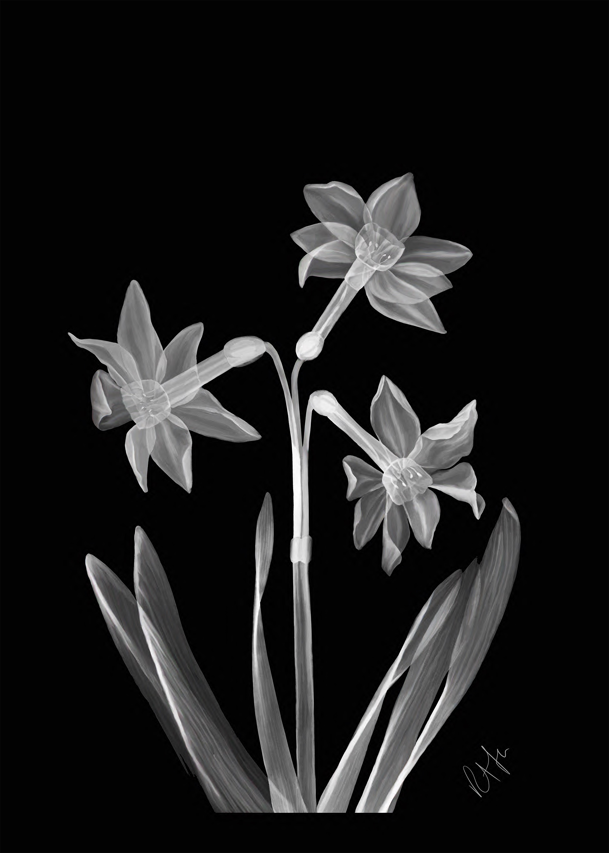 Rah Flynn uses x-rays, monochrome photography and digital painting techniques to strip away vibrancy, scent and colour, allowing the viewer to rest with the beauty within. From iodine-enhanced botanicals to Neurosurgical dexterity, Rah's work asks the viewer to look inside and look again, perceiving in a different way.