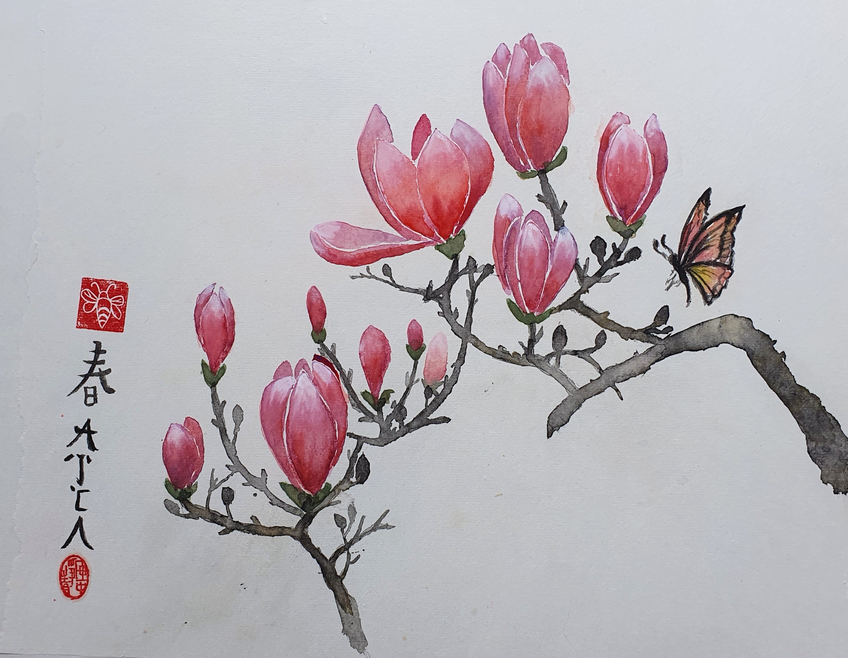 The focus of Chinese brush painting is to capture the object's essence and spirit, rather than painting an object or a scene as it is seen. I am drawn to this artform by its simplicity, harmony and unparalleled grace. Each brushstroke and where it is placed, as well as the spaces that are left empty are of utmost importance in Chinese brush painting.