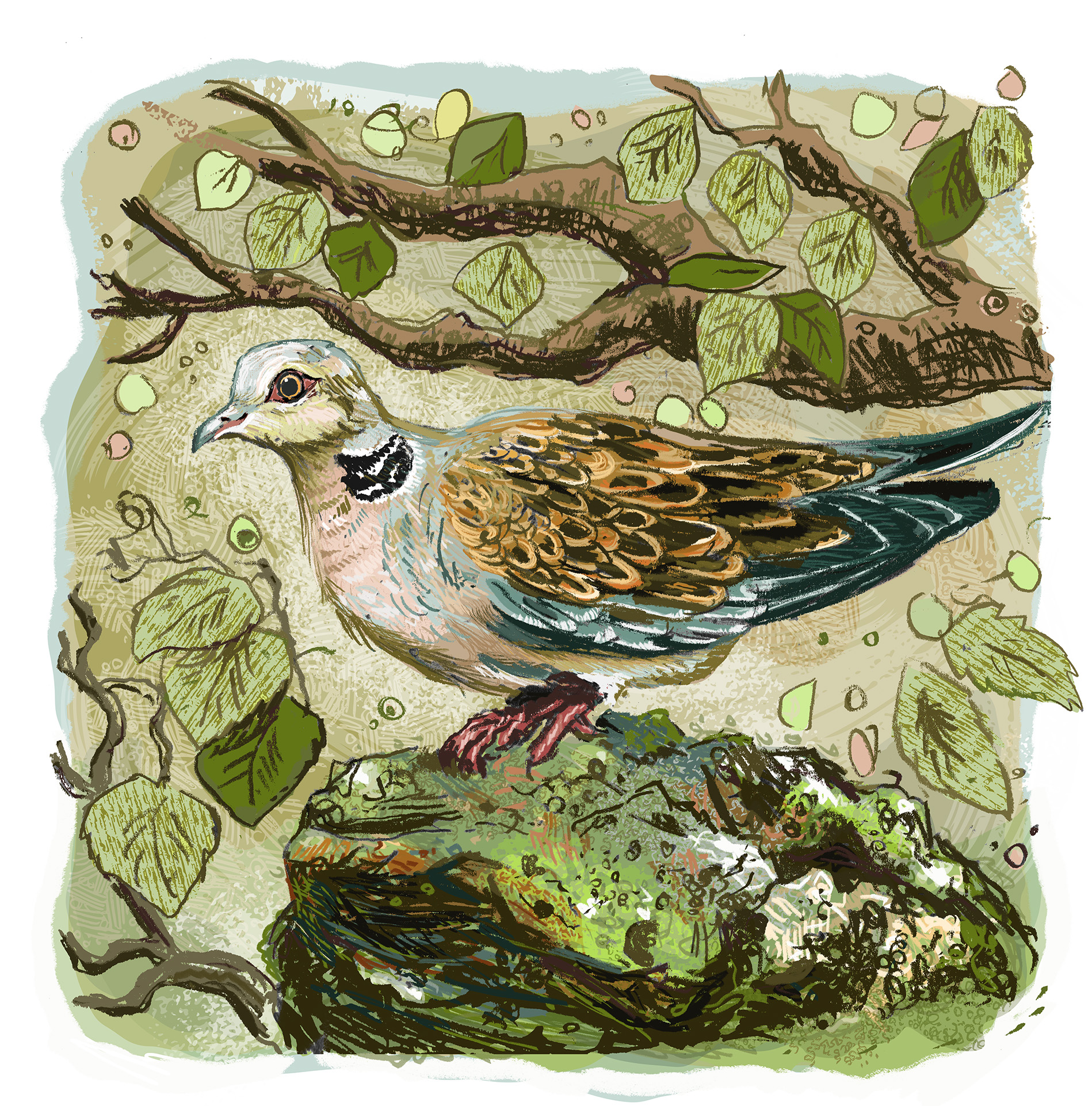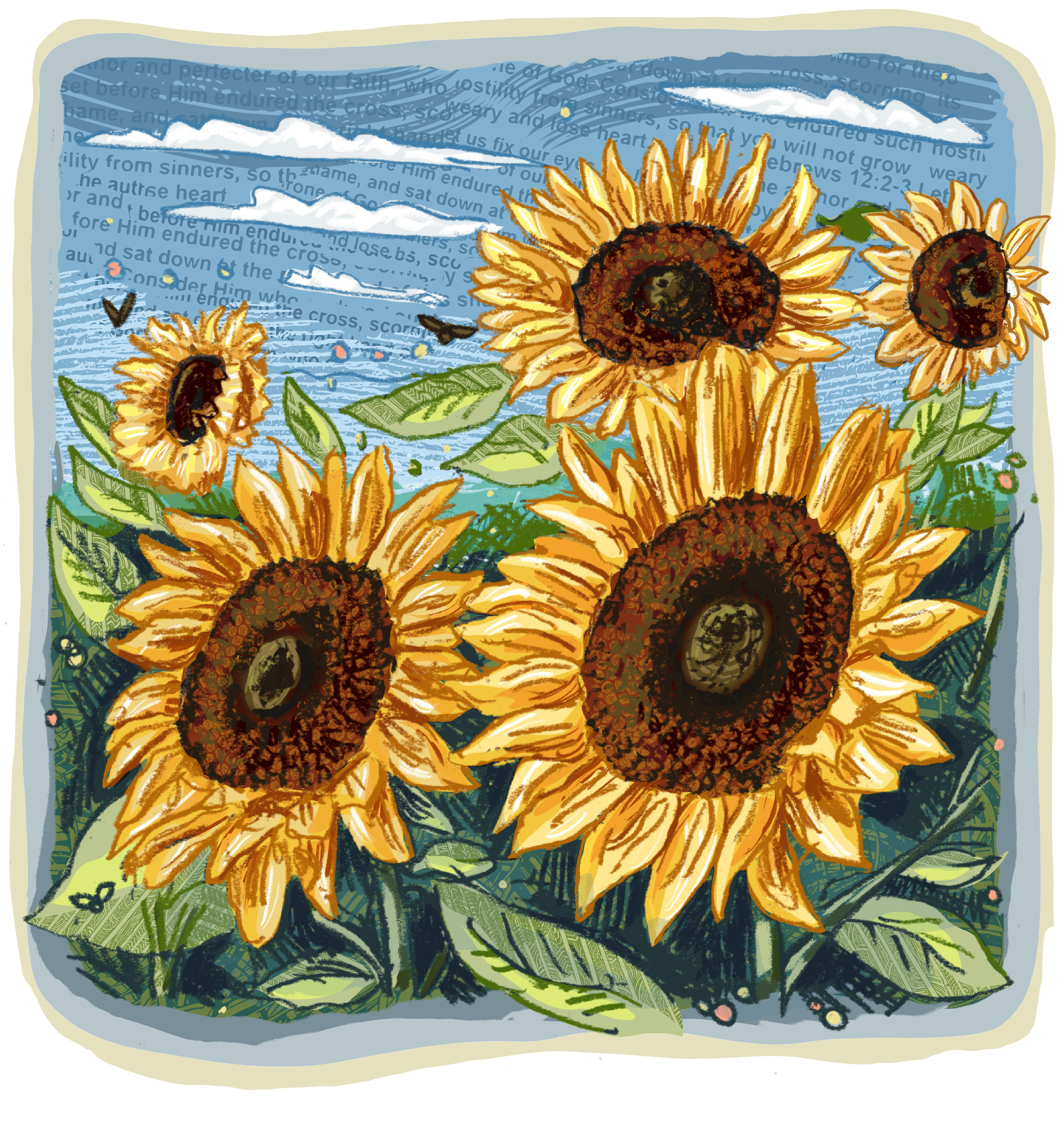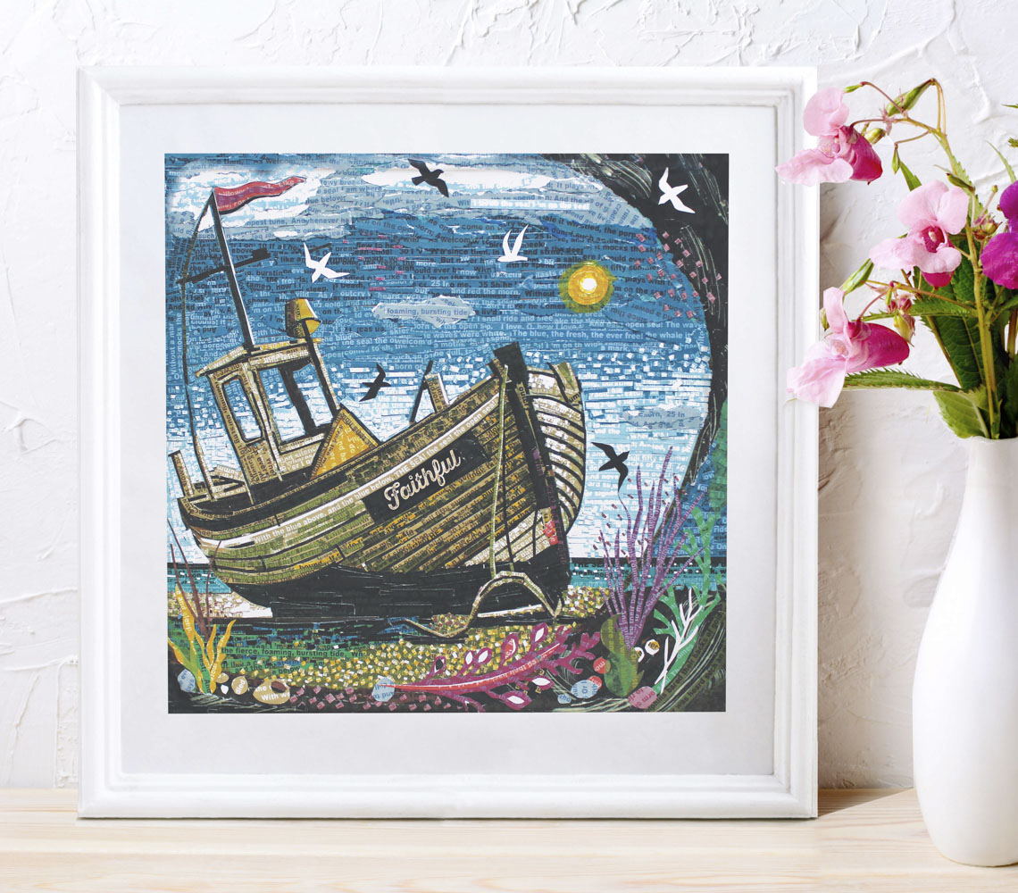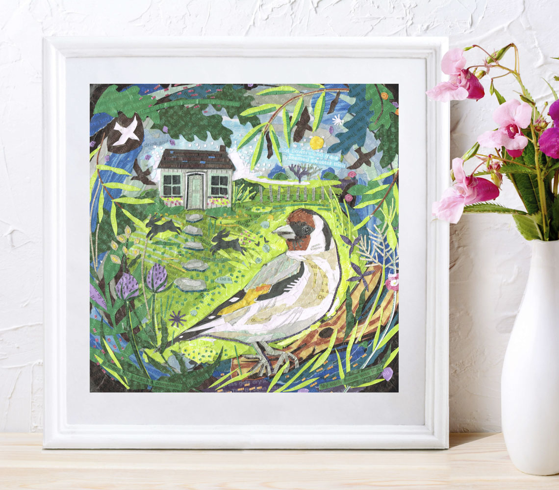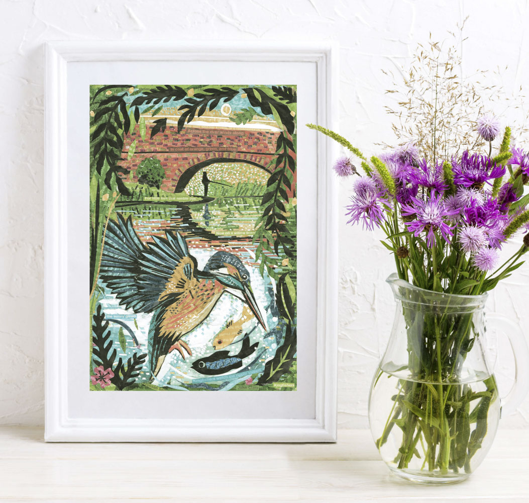 Much of my art is created using paper collage techniques, often layering printed words into the imagery to add depth and meaning. I love weaving together poetry and the natural world, creating pieces that invite you to pause and notice the details around us.