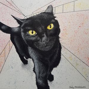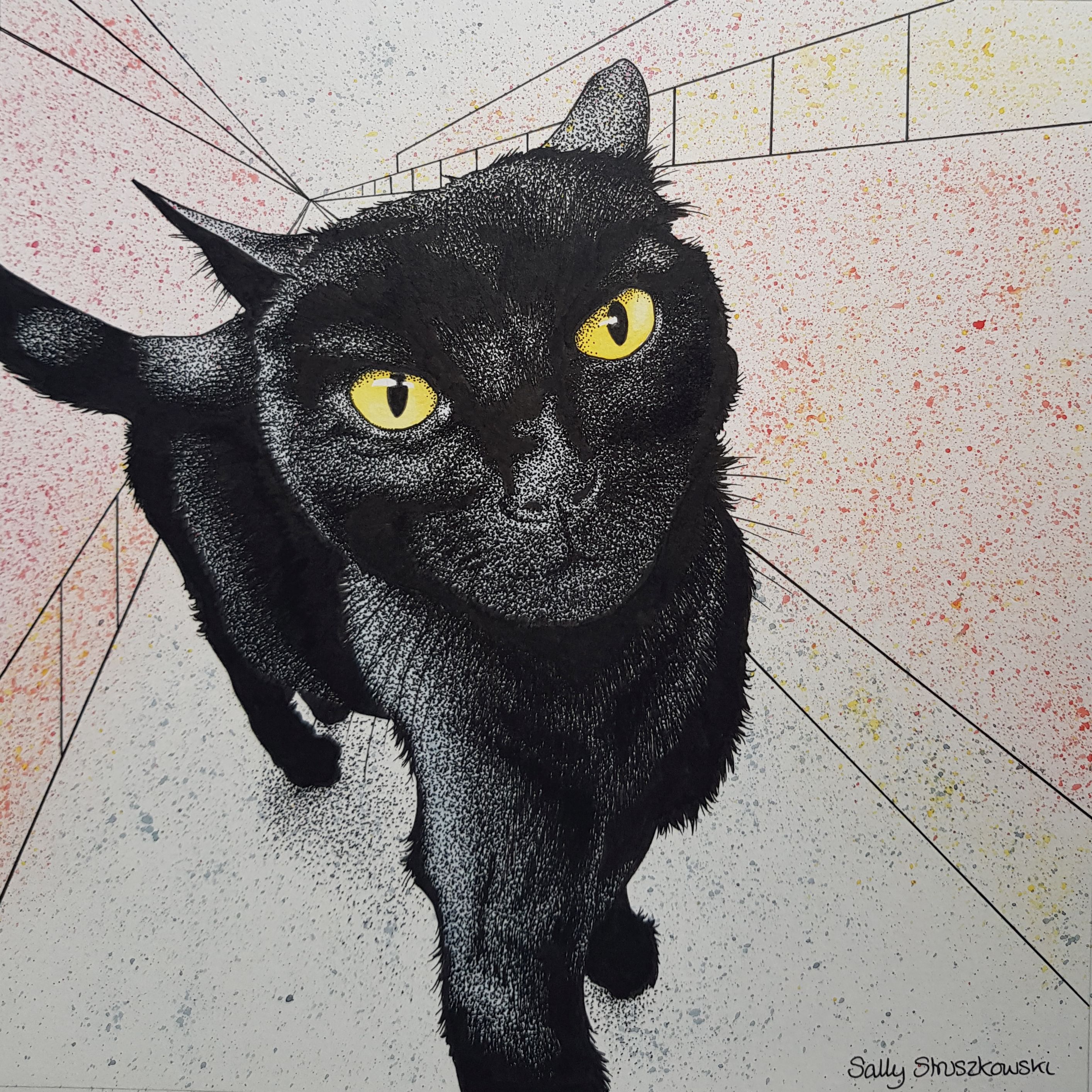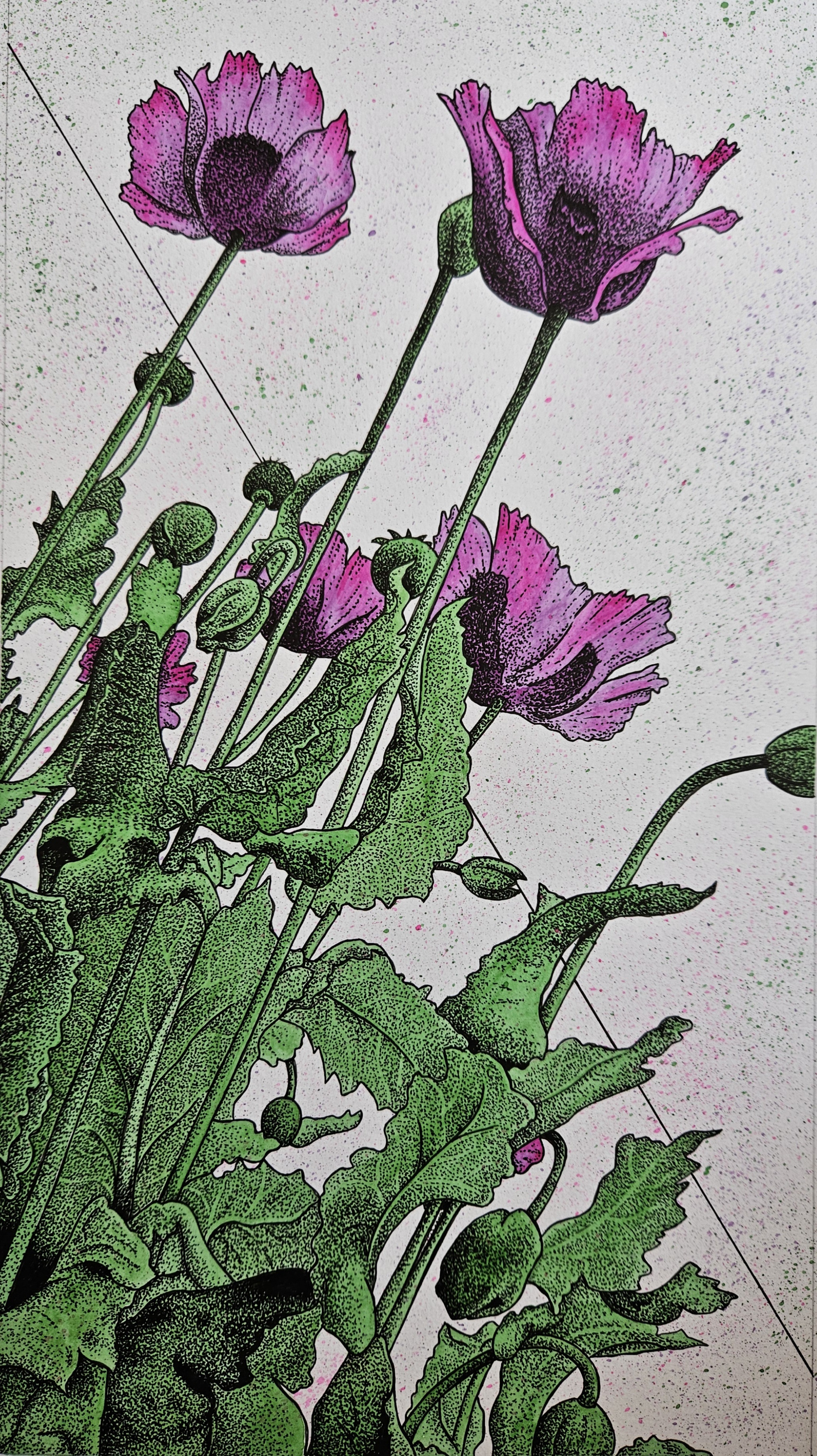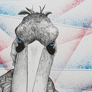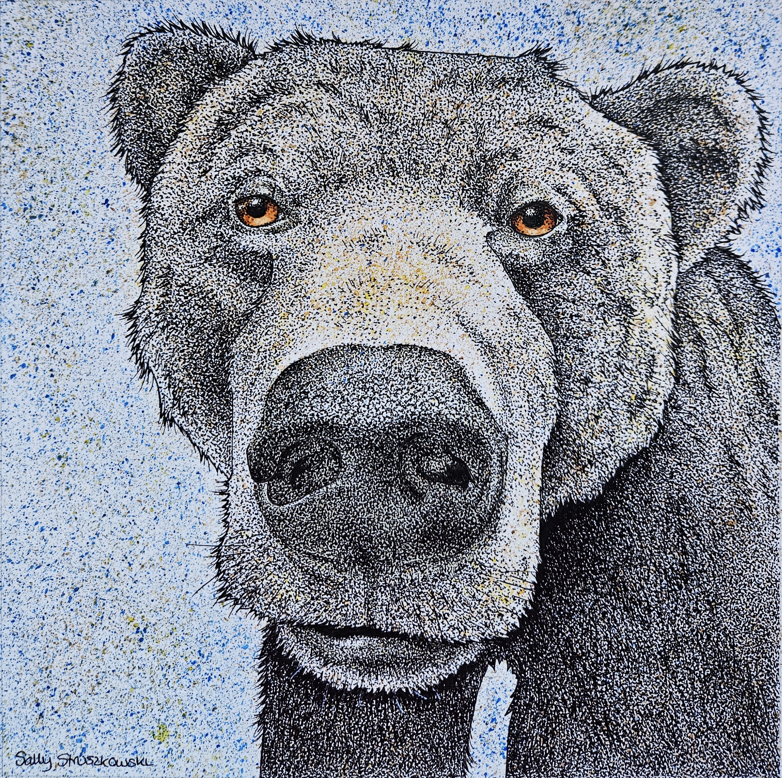 With a love of nature I like to represent the subject in a realistic, but fresh, sometimes fun, and dramatic way. I draw with pen and ink, often using splattered watercolour as a background.