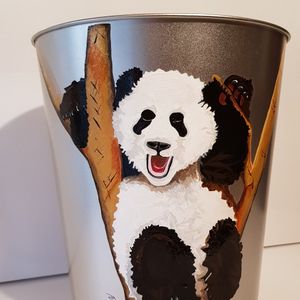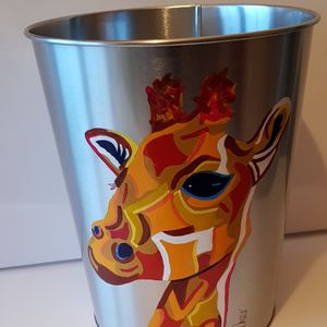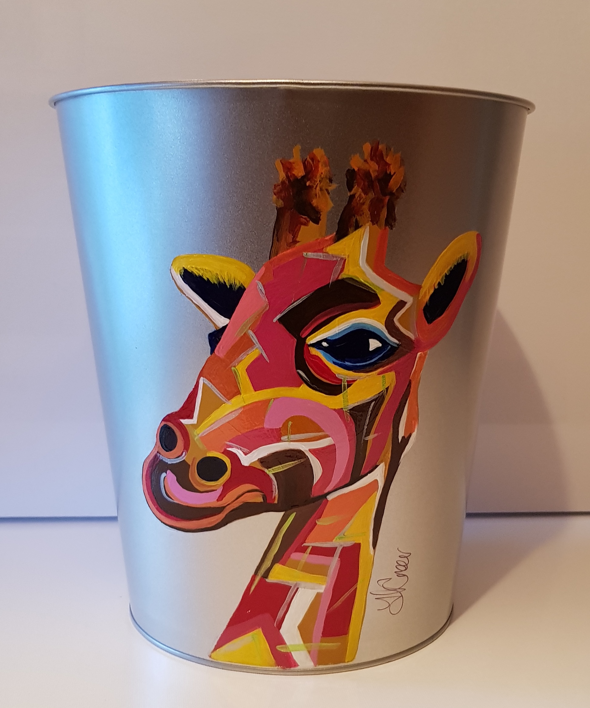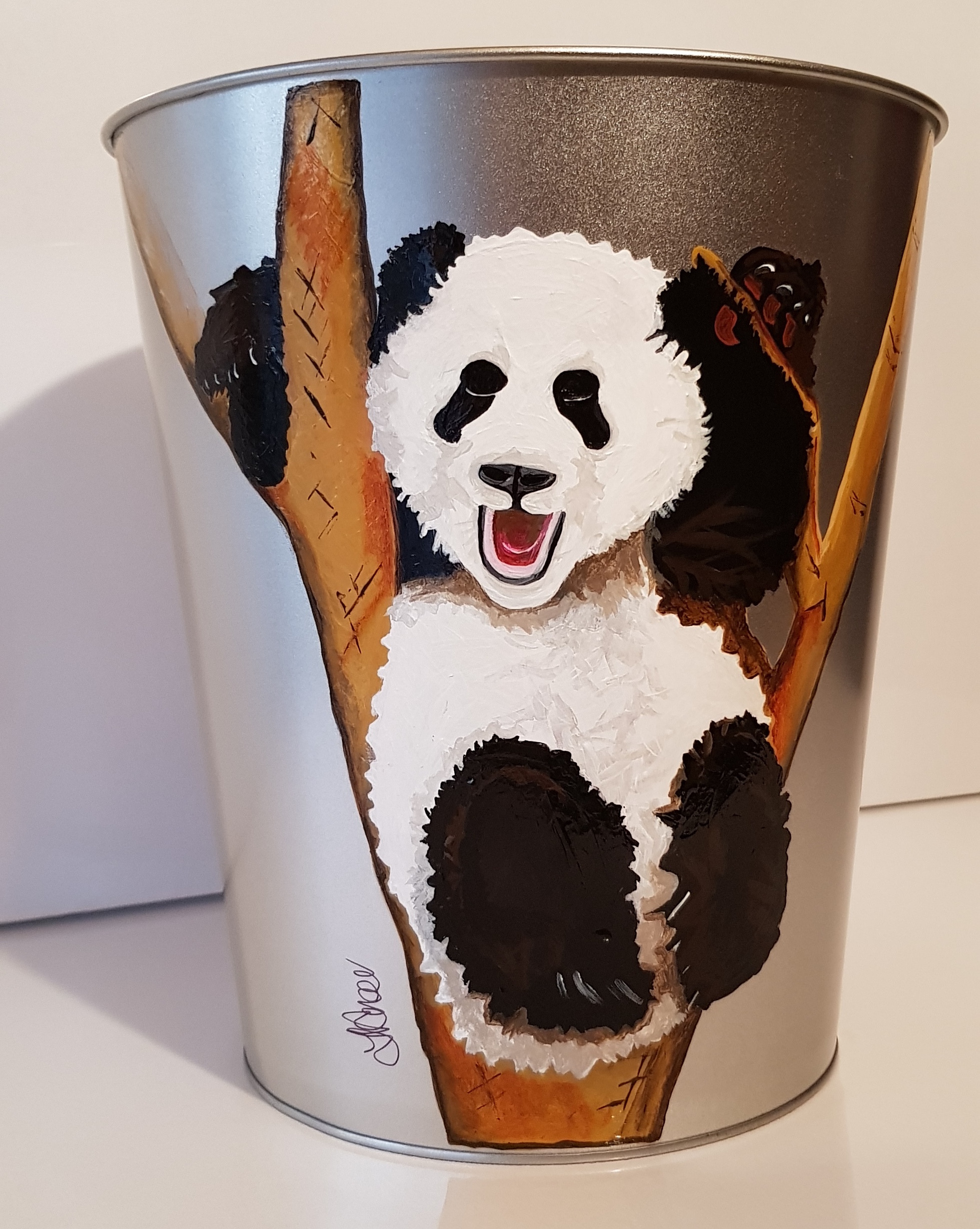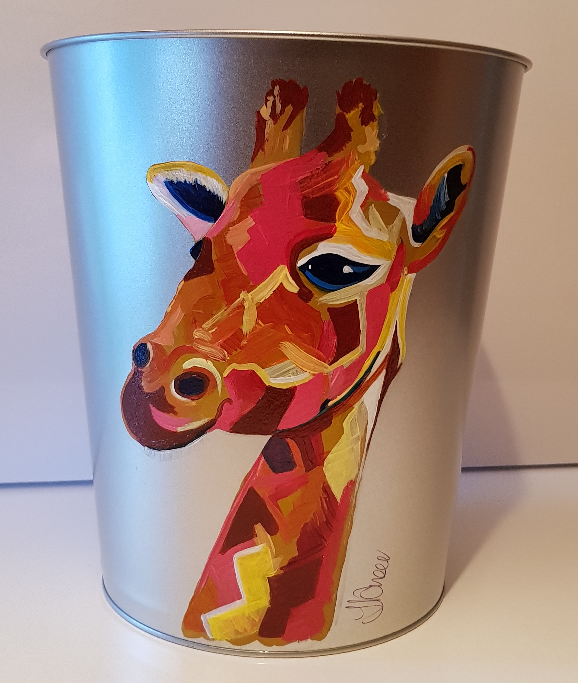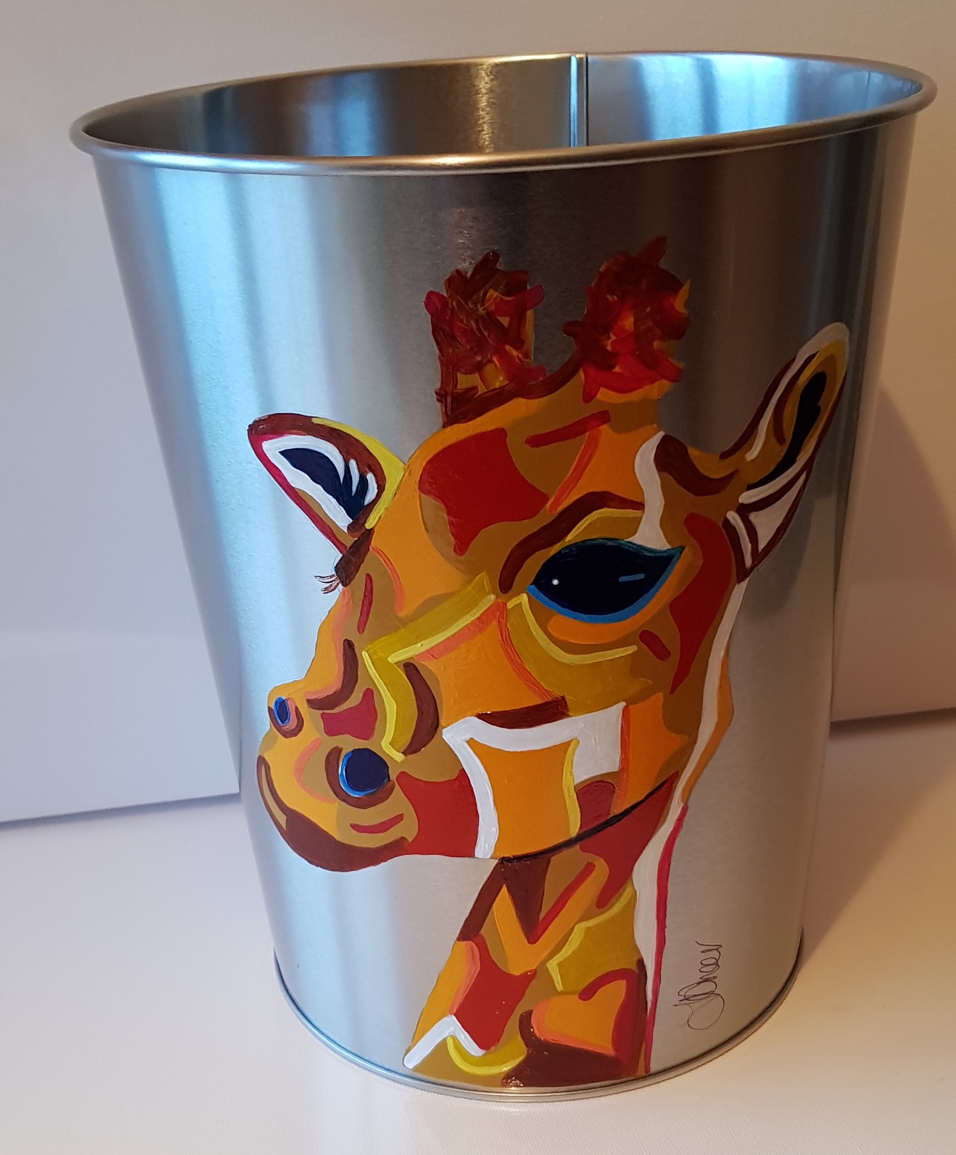 The majority of these have been commissions for those that love pandas, giraffes and elephants. Just thought it would be a good idea to turn a simple steel bin into something a tad more colourful.