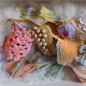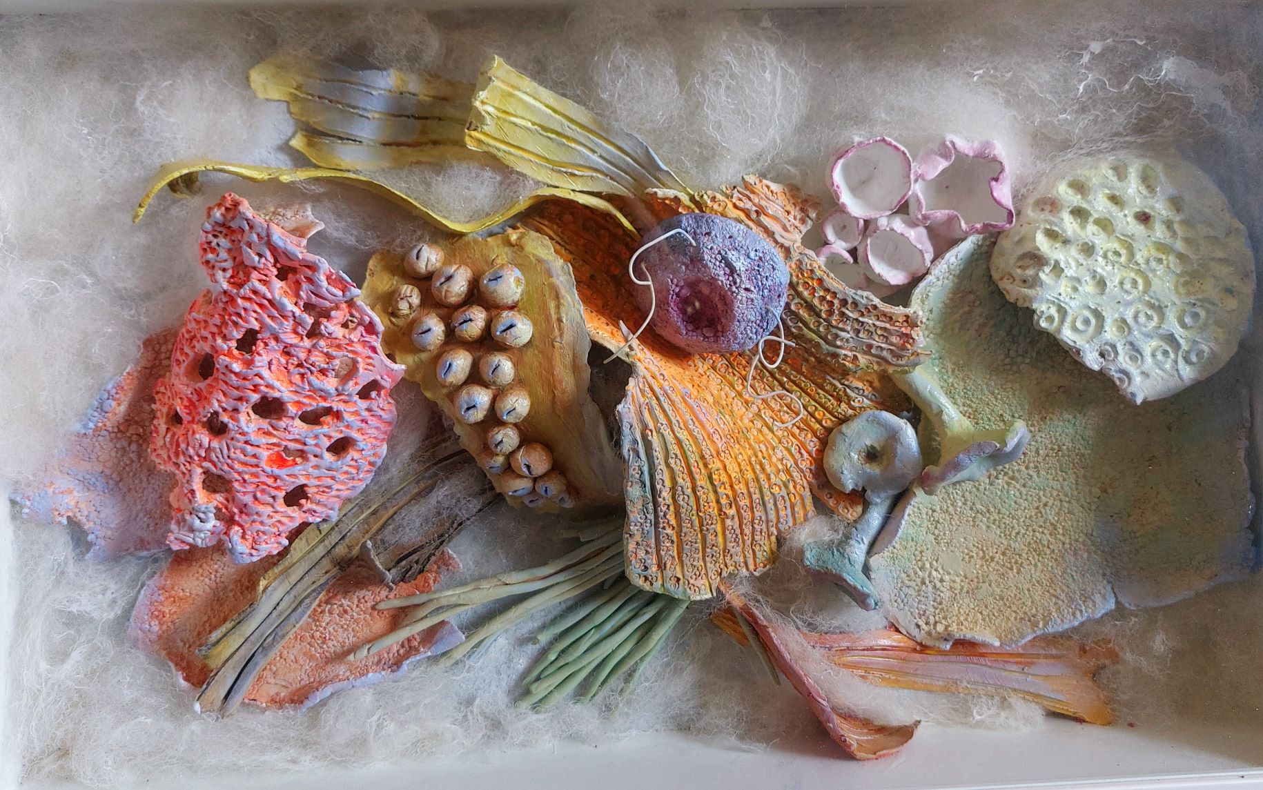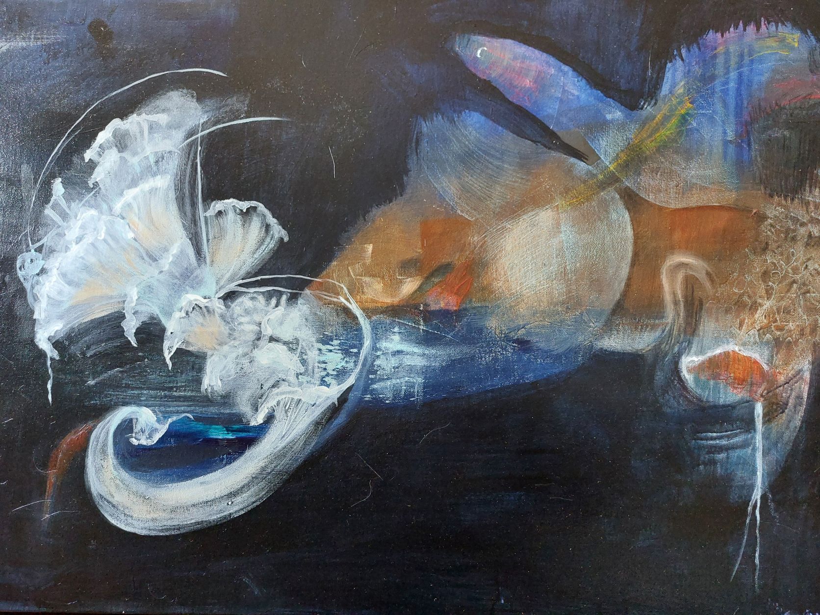 My gallery includes paintings that relate to a love of plants, an expression of the control of Covid 19, a small sculpture inspired by the microscopic views within organic life with color and organic form, and a tribute to local interest.
