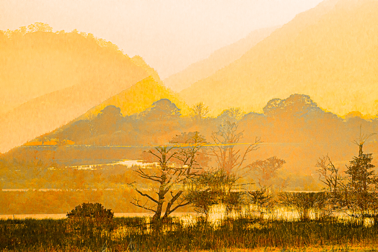 The hills, woods, grasslands and watersides of Derwentwater in the autumn provided many stimuli and I was able to create these intriguing images with shapes, colours, patterns and textures that convey a range of moods and emotions.