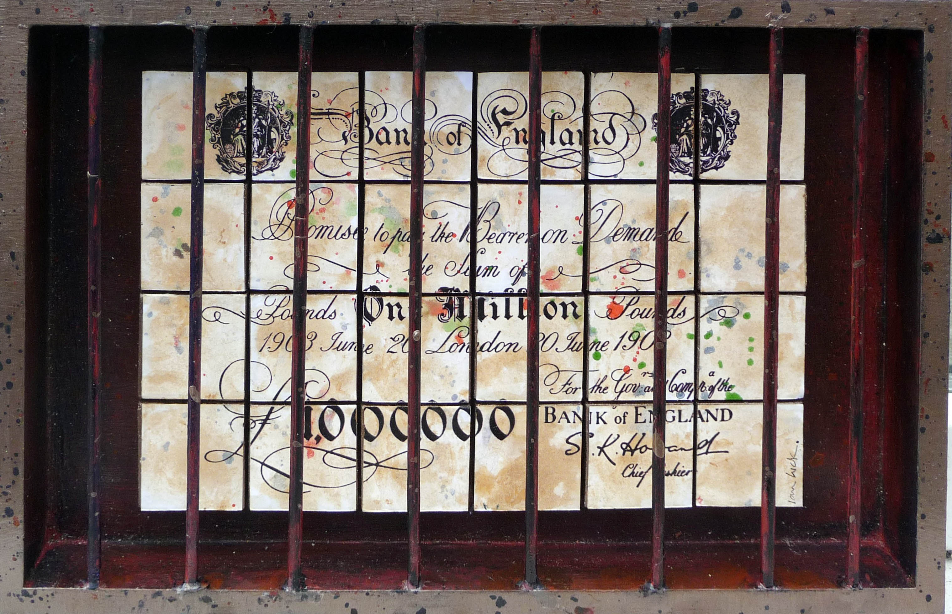Work is in many collections including The Alfred East Permanent Collection in Kettering. Influences include Joseph Cornell, Robert Rauschenburg, Andy Warhol, Peter Blake, and Joe Tilson.