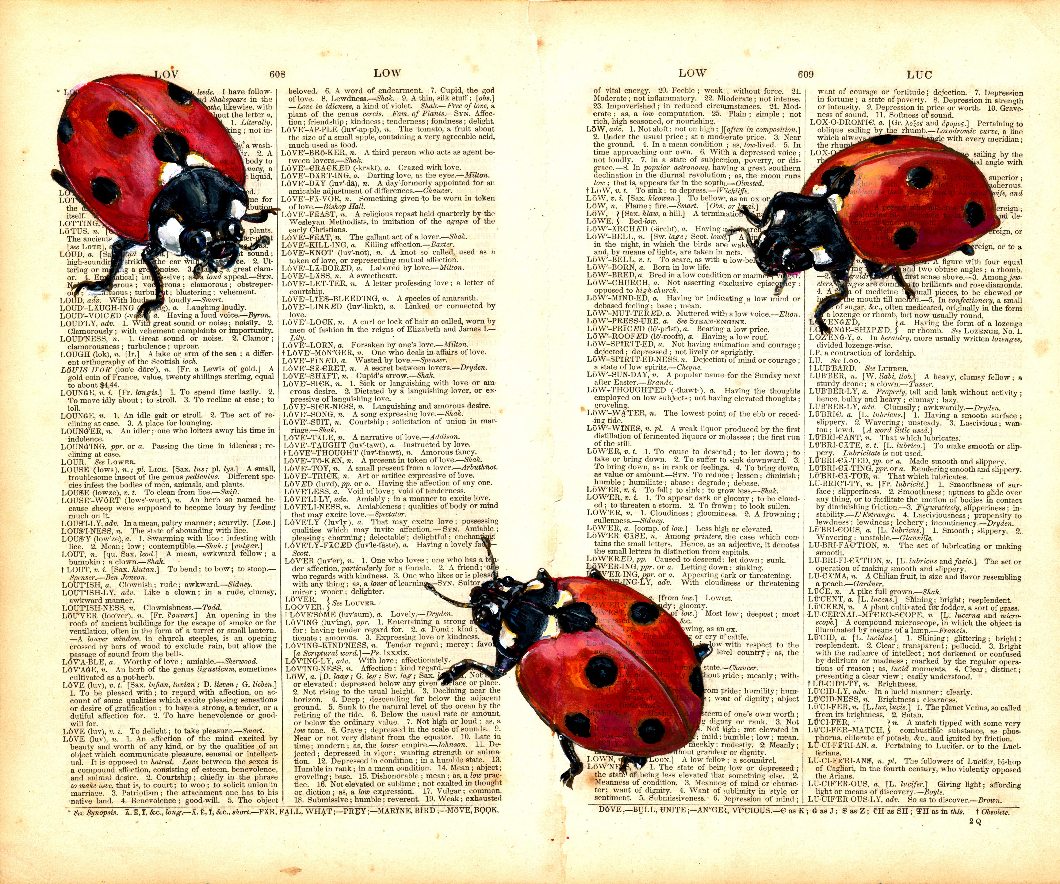 All the images in this Gallery are original works of art, painted straight on to very old dictionary pages. All images (c) Katy Dynes