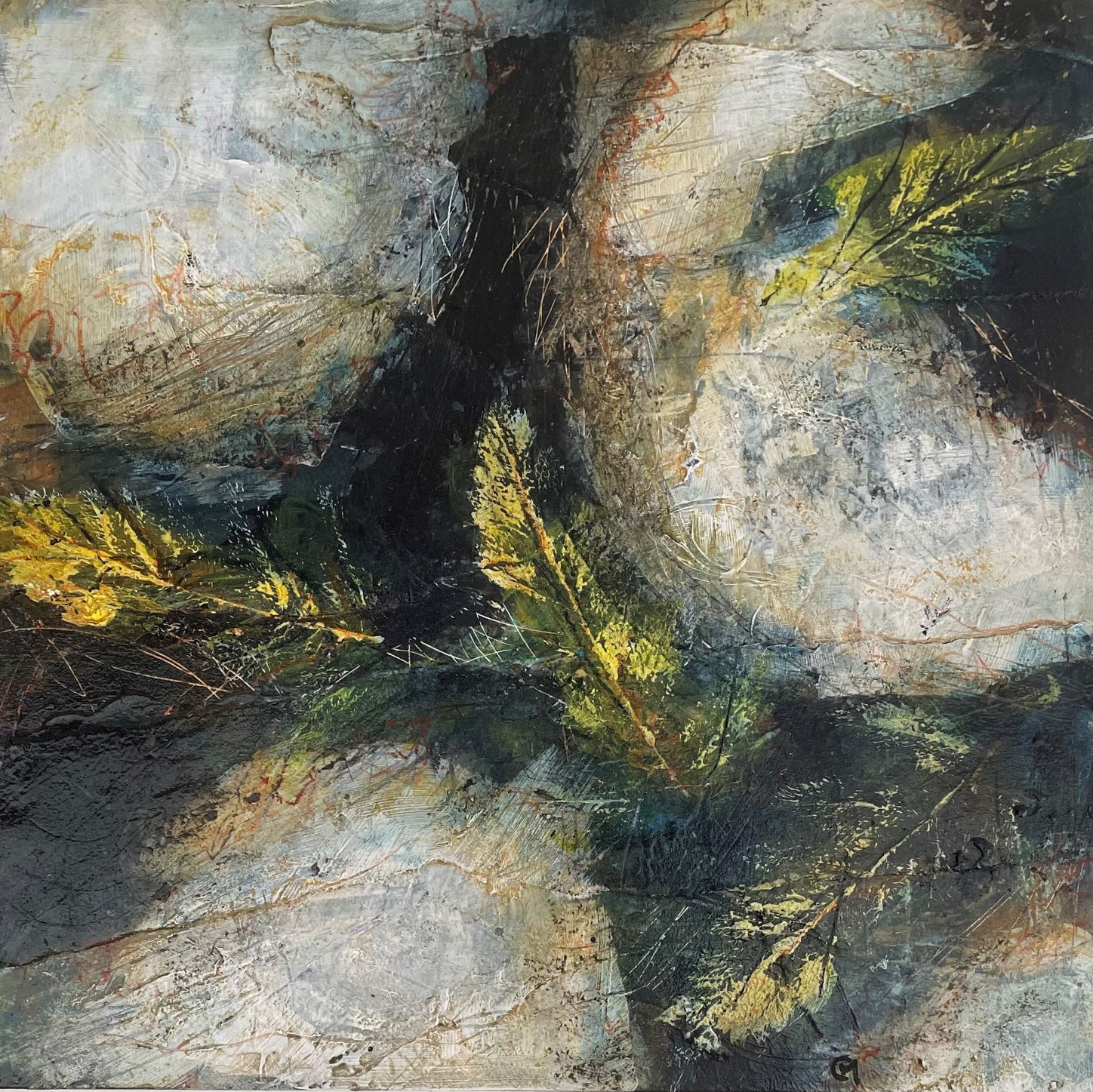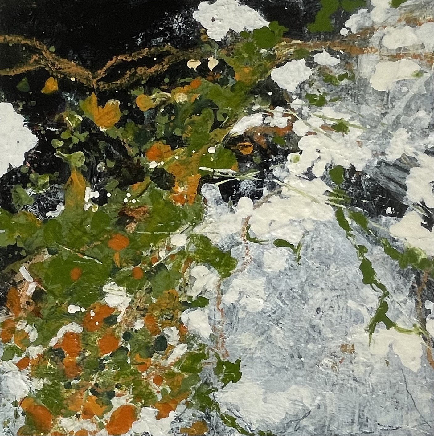 The inspiration from this new series comes from walking round the local area as well as Yorkshire and Derbyshire where in the natural environment seeing details in patterns and texture, then simplifying these by abstracting the key elements. I love to walk and these paintings come from.