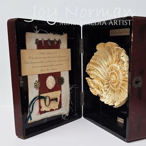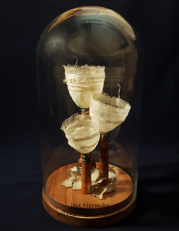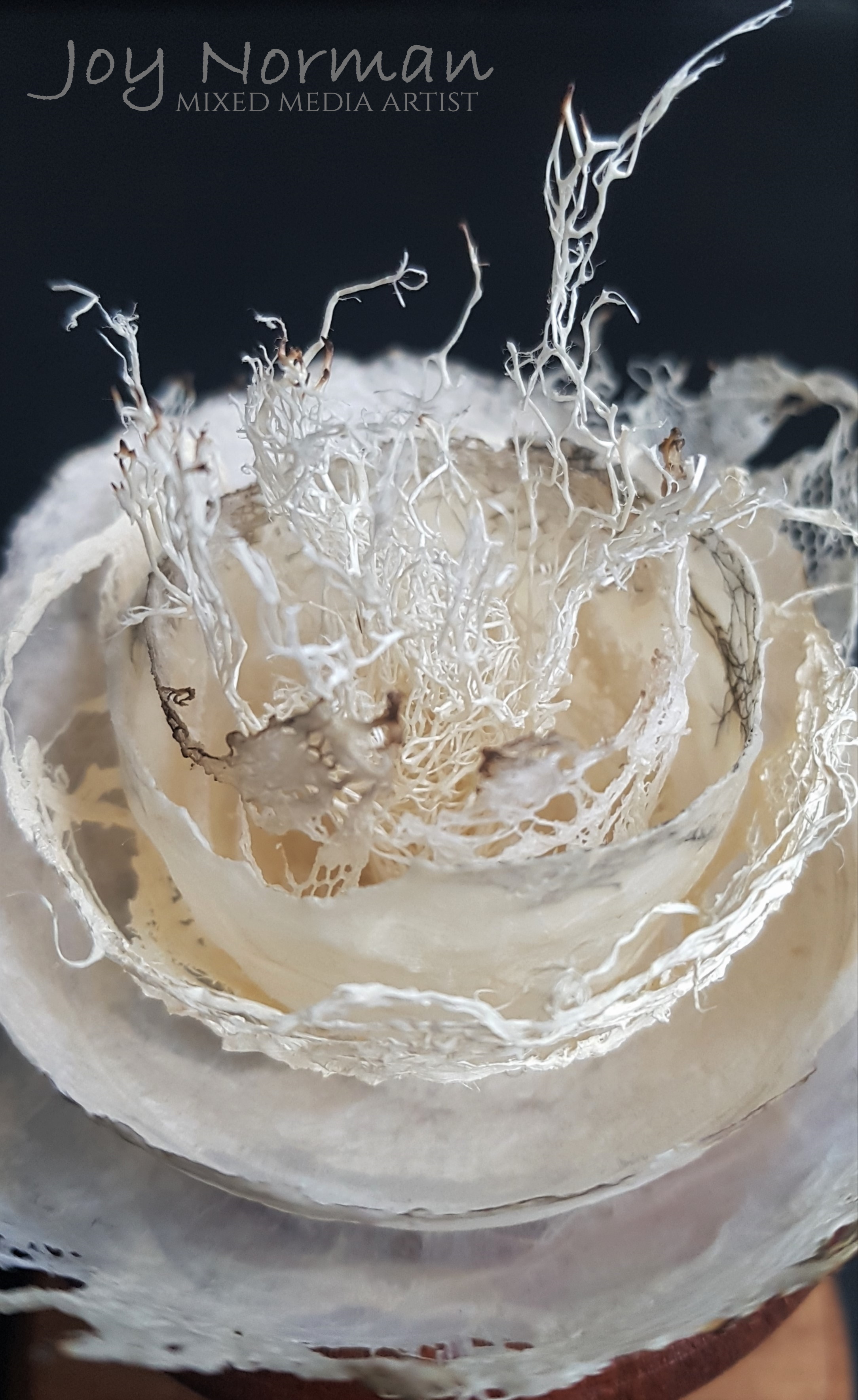 These are a few of my favourite pieces from the diverse mixed media range I have available in my website shop. I have worked with such materials as hand made paper pulp, textiles, pre-loved papers and books, leaf skeletons and a whole host of other ephemera to create assemblages, vessels and framed pieces.