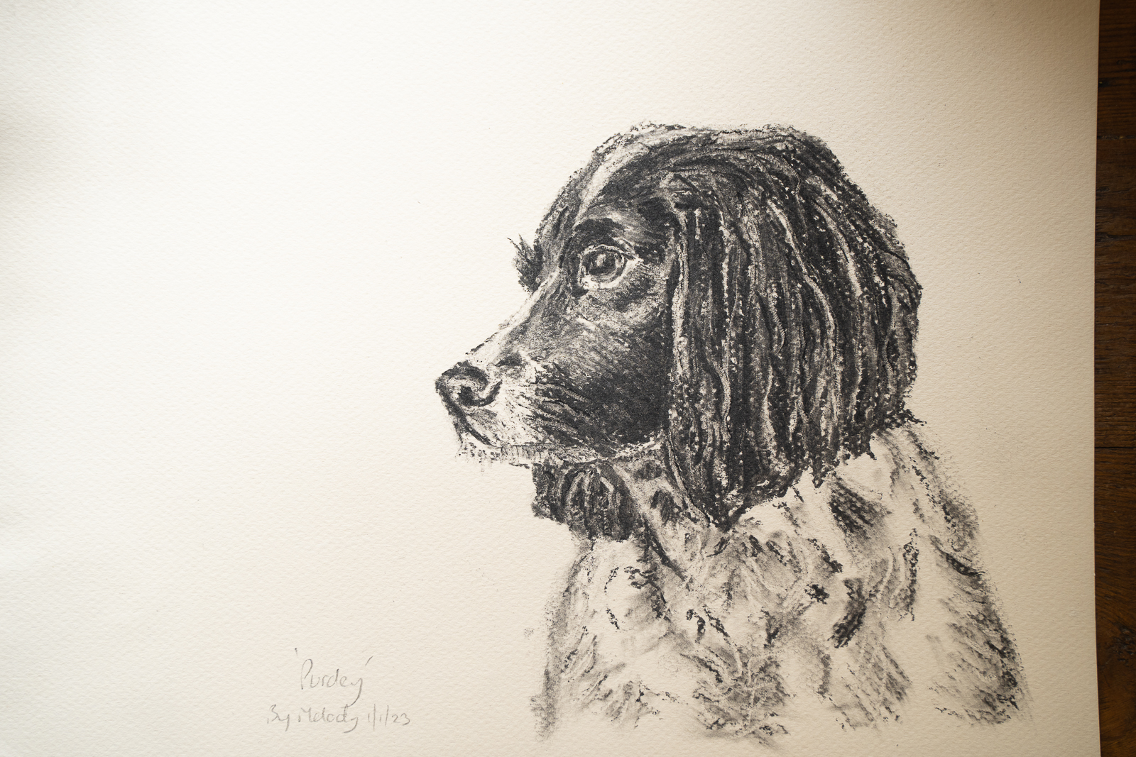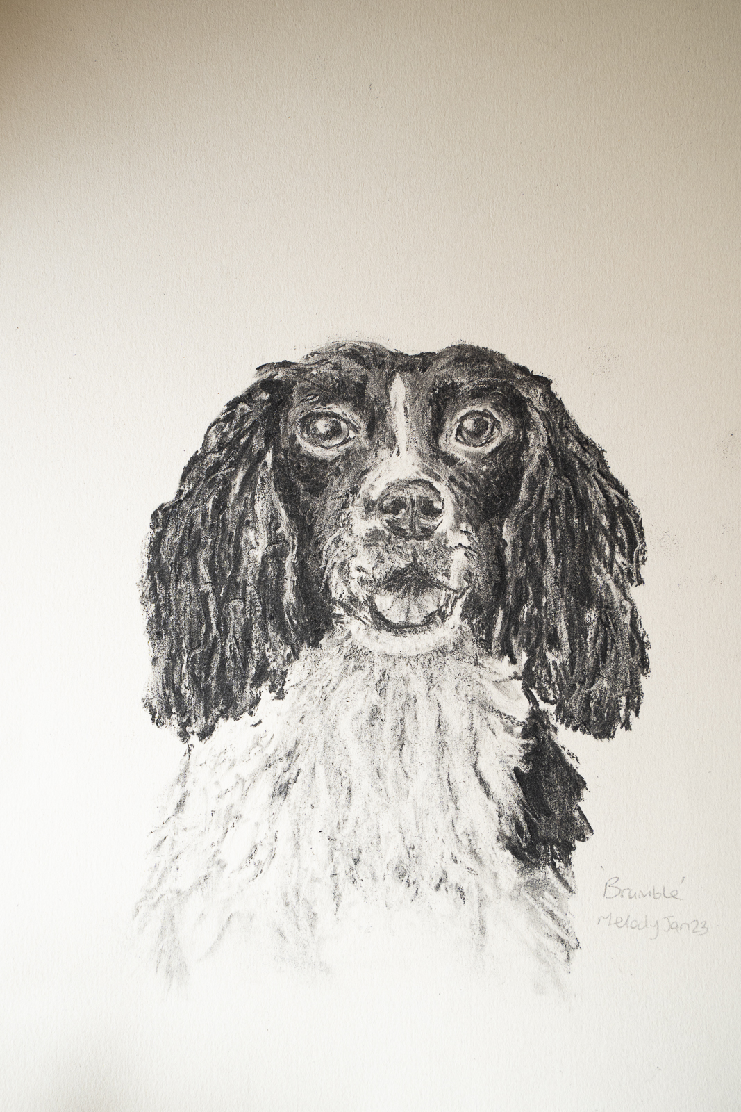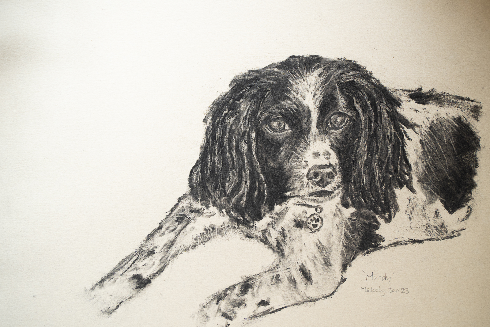 Inspired by our precious pets in our lives. How they touch our soul and bring us so much happiness. I love to use charcoal when drawing my own dogs and your dogs on commission. Being monochrome, it really helps to slow things down and bring out the beautiful detail in their eyes, coats and bone structure.