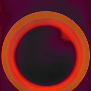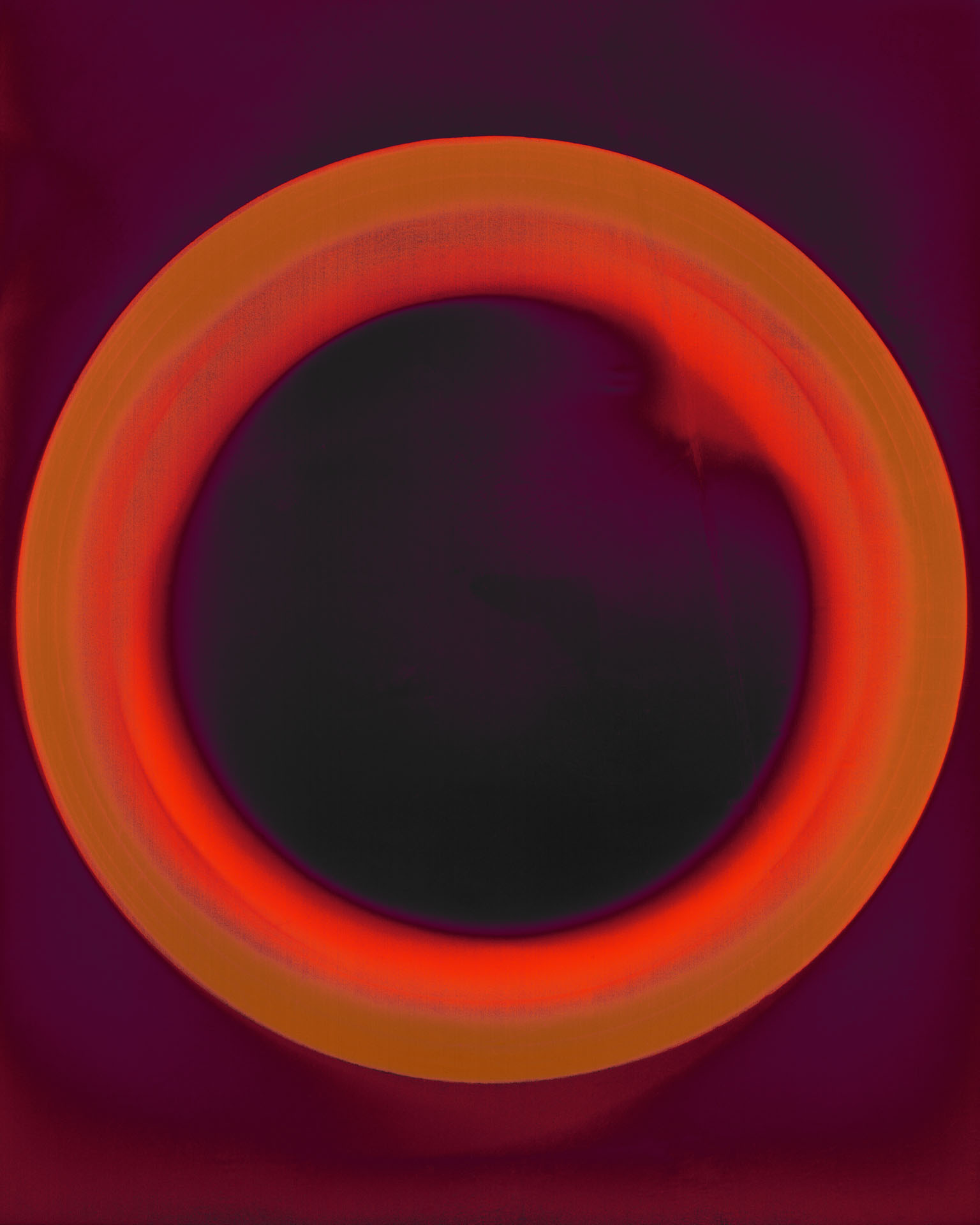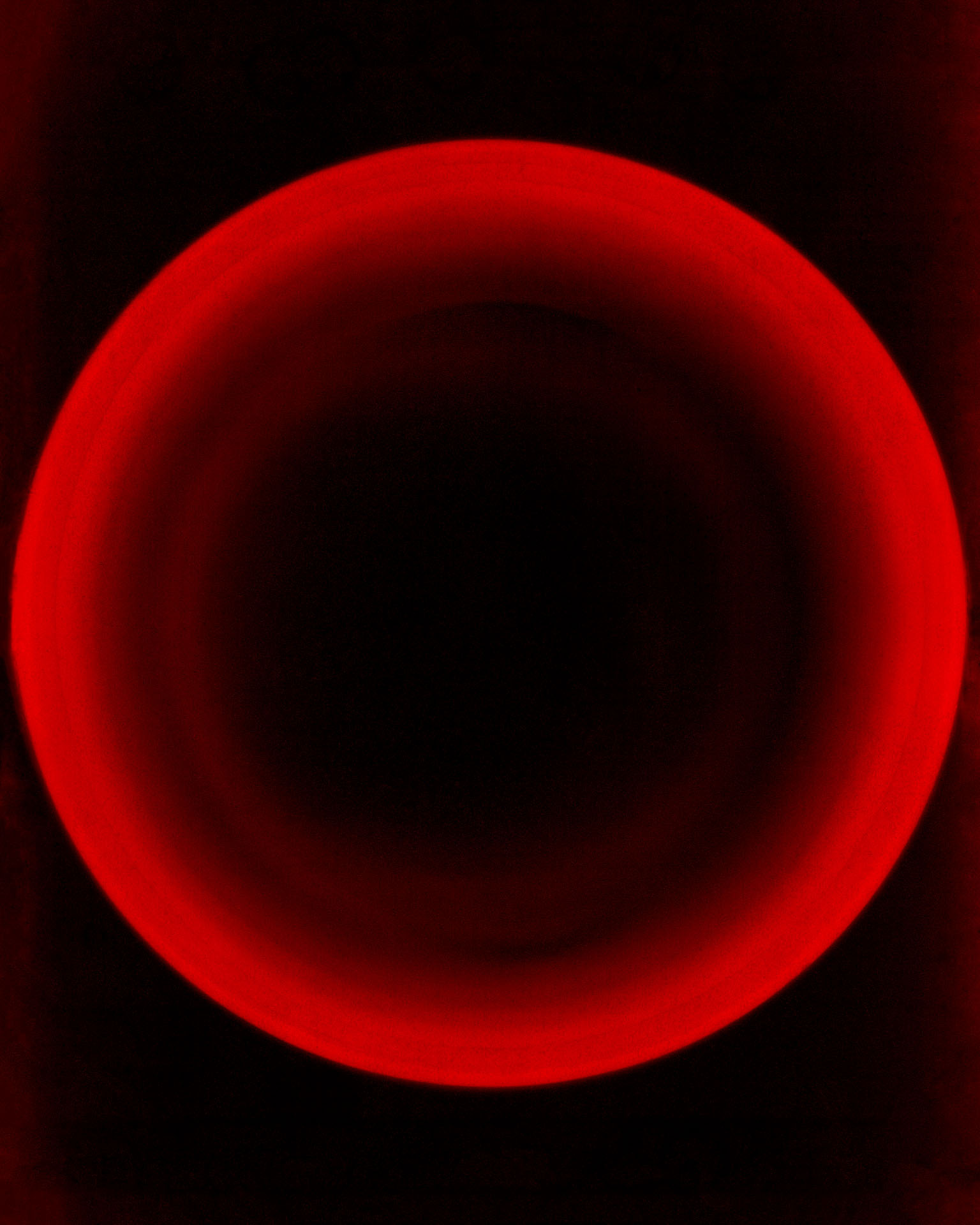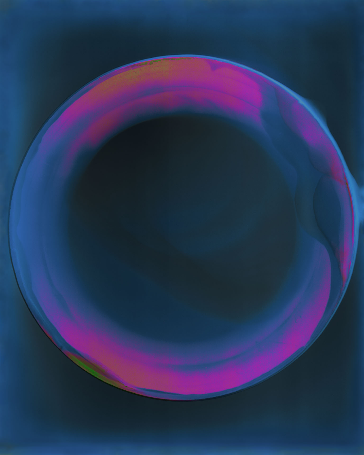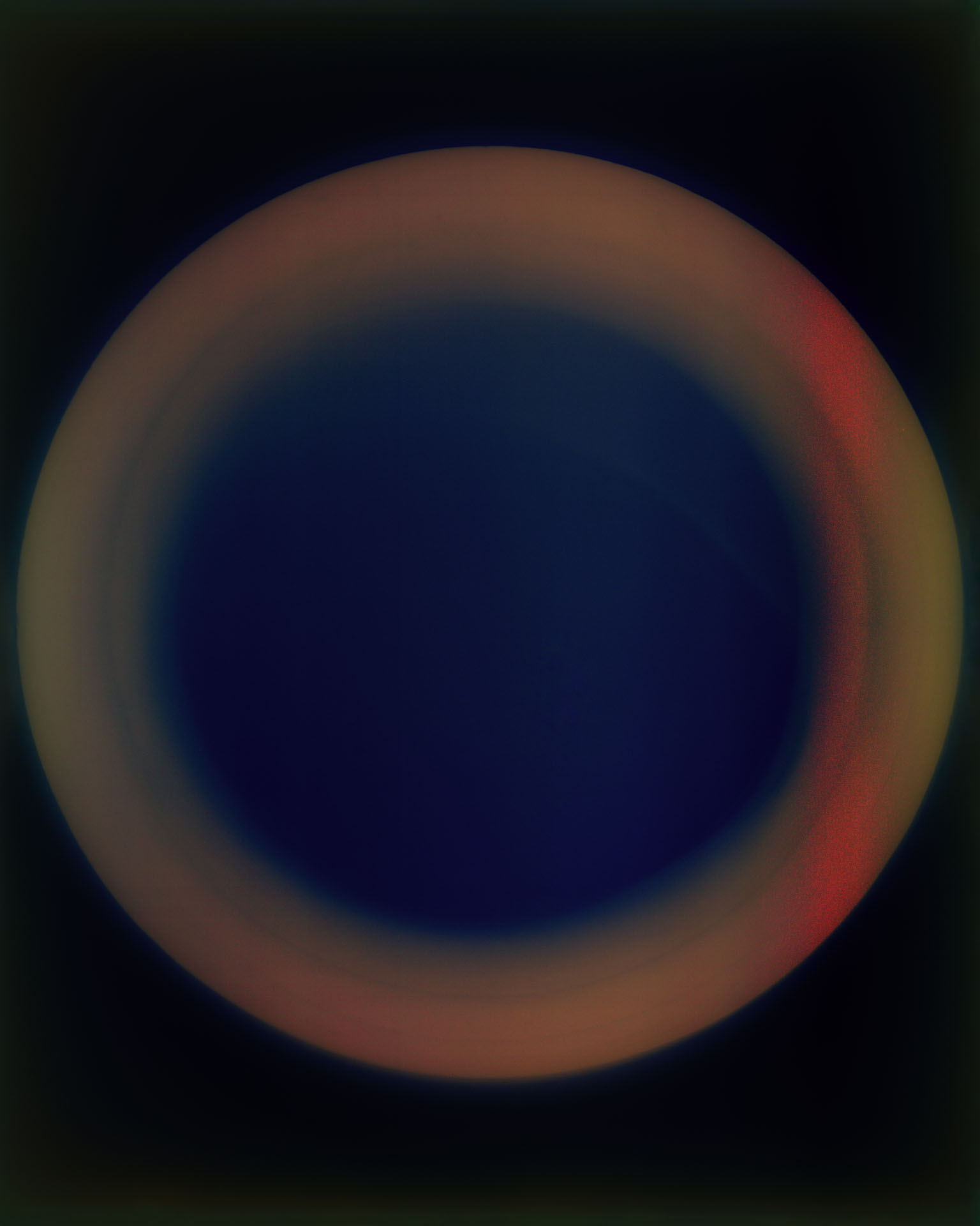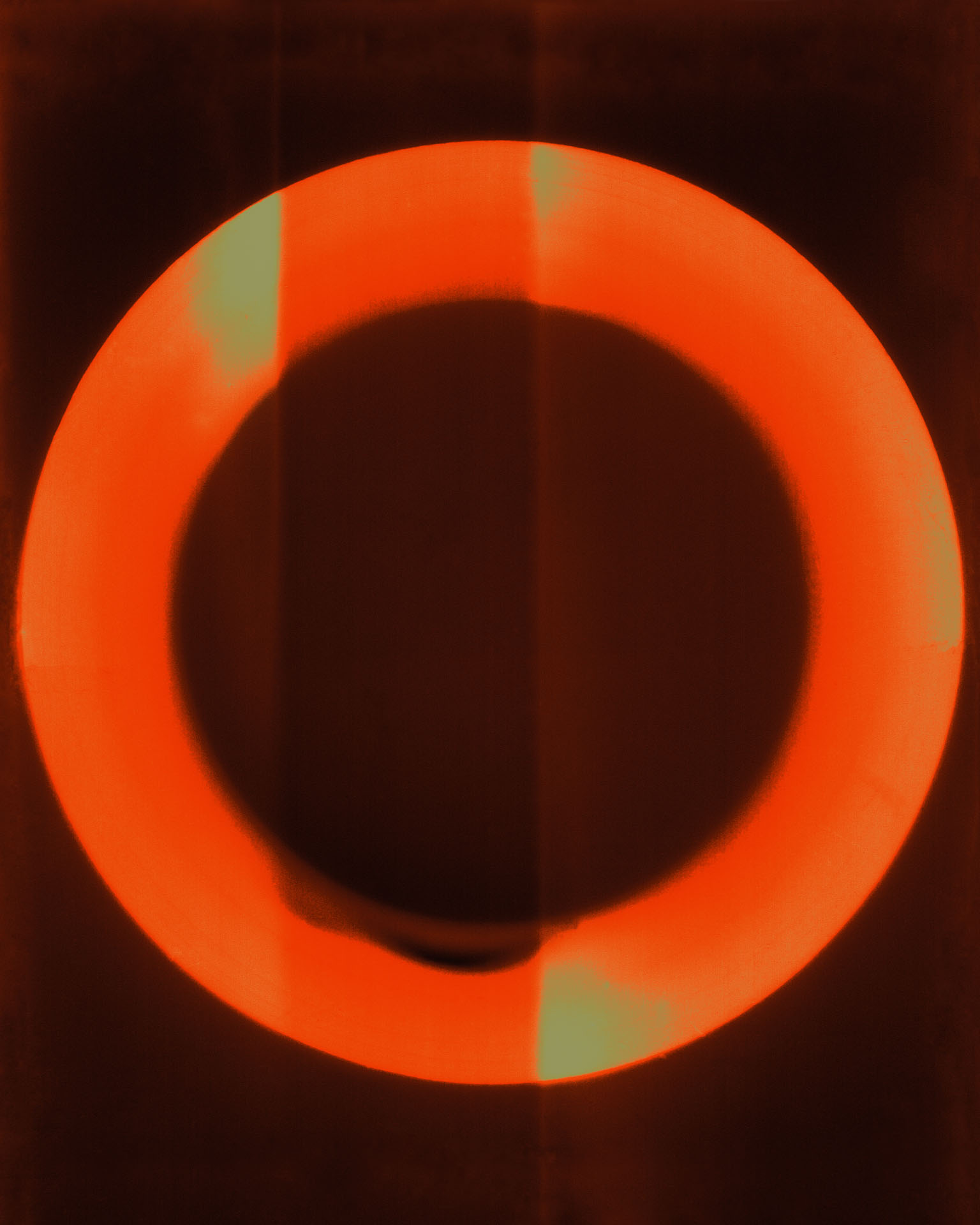 Technical note. These cameraless lumen prints were exposed to sunlight, for often a day or more, through a hemispheric glass lens mounted directly above black & white photographic ortho film; some had additional wood-ash sprinkled onto the emulsion. These negatives were processed in non-toxic caffenol developer and digitally scanned and outputted as archival giclée prints. While the resulting images respond to ambient light conditions, the contained spherical imagery raises the question of whether they have captured representational reality or something else. These images capture light across time, what we might refer to as ‘stretched temporality’.