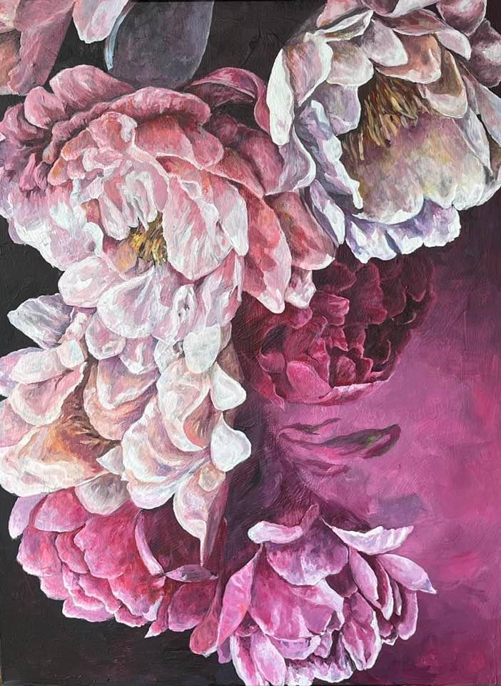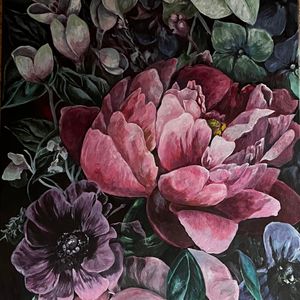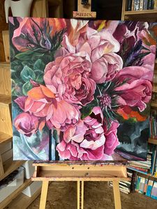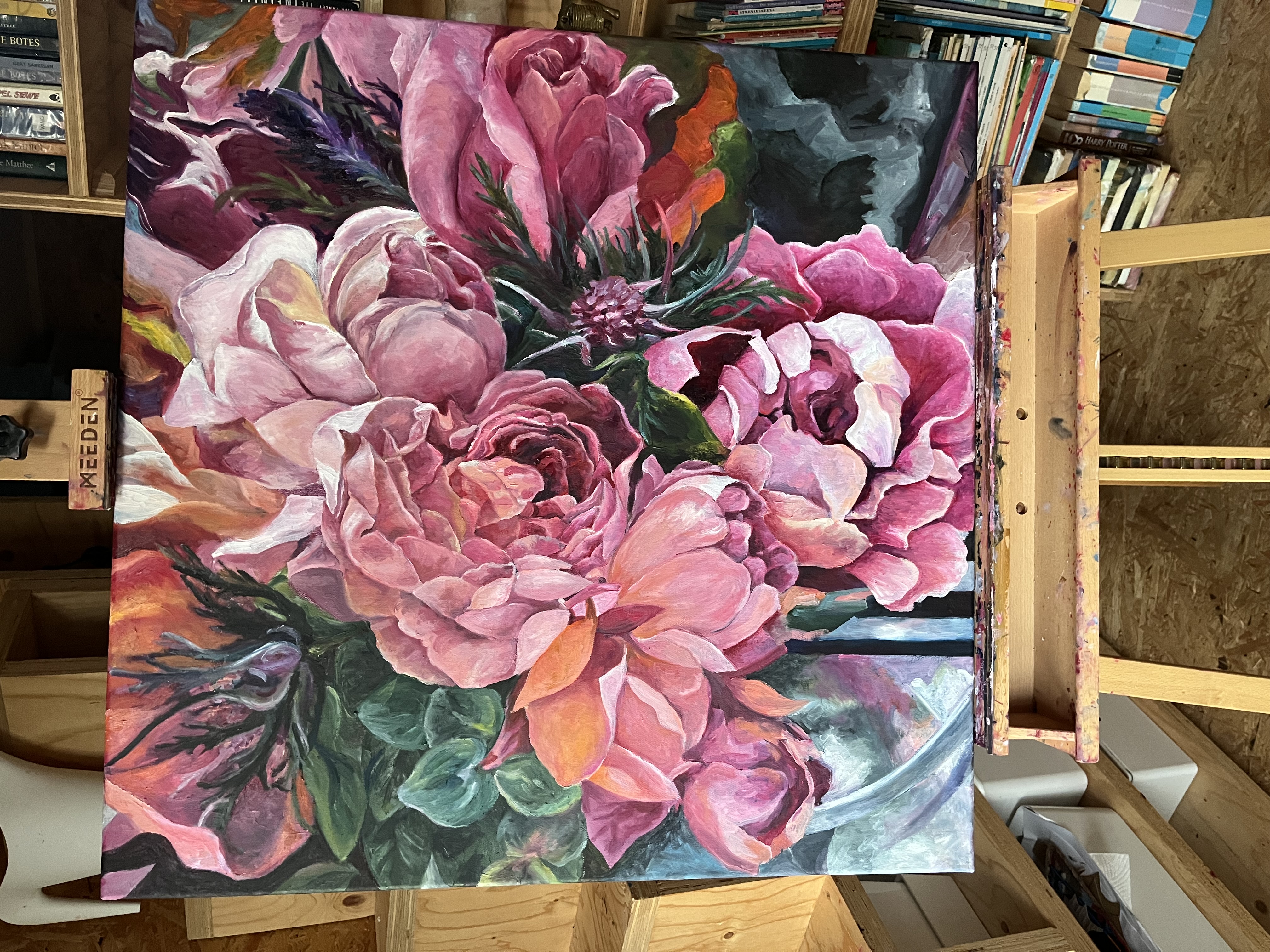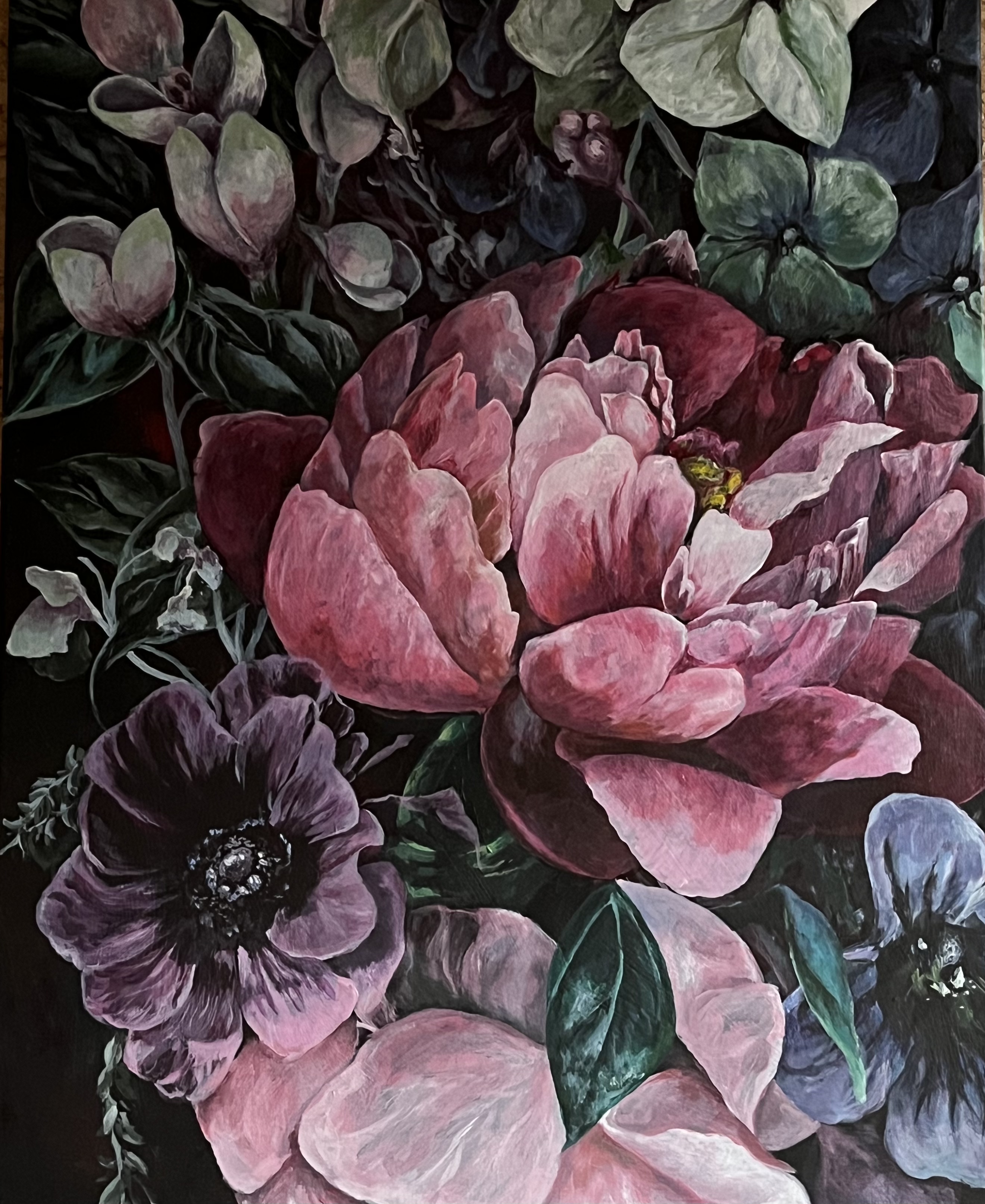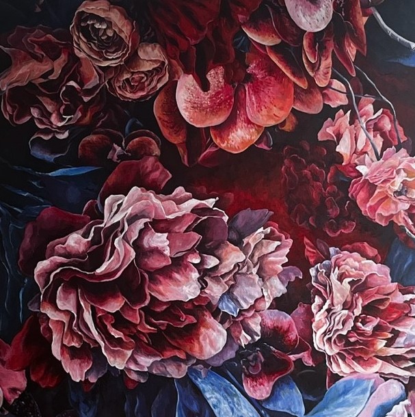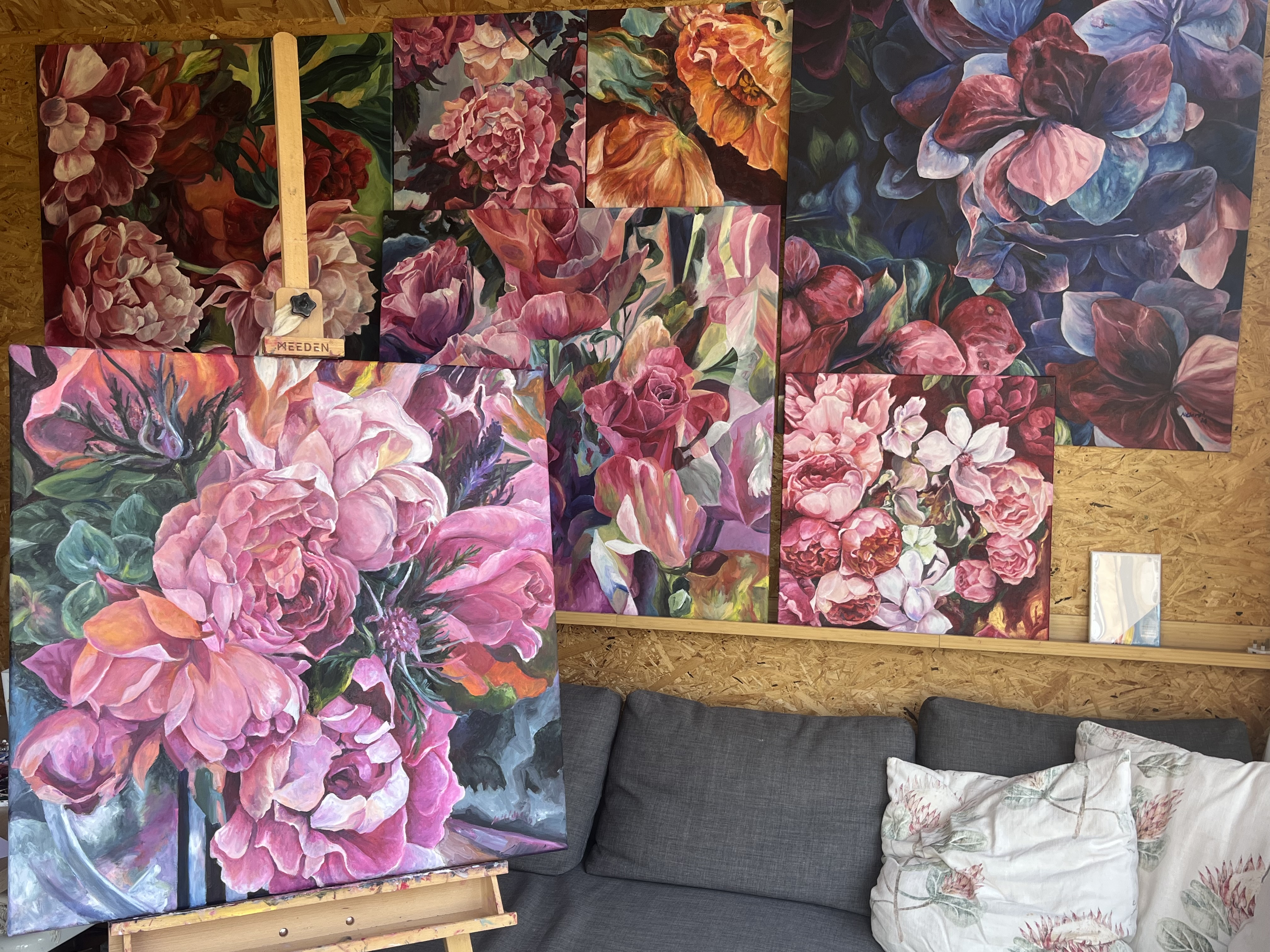 I am currently exploring flower studies with an emphasis on contrast, dramatic use of colours and chiaroscuro. I am especially influenced by the old Dutch Baroque artist such as Jan Frans van Dael and Jan Brueghel the Elder. I love their use of grandeur, richness, drama, movement, and tension.