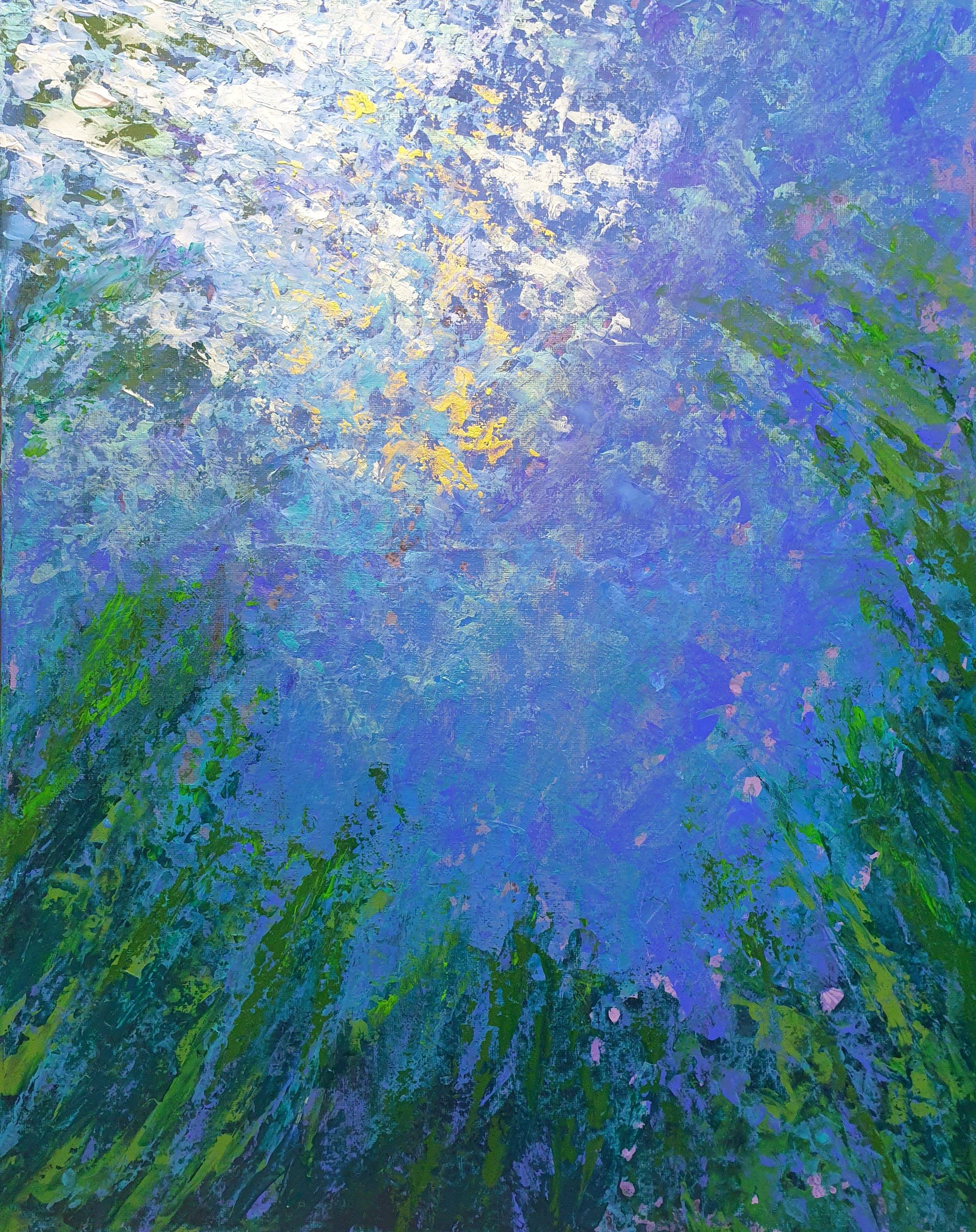Water is ever moving, even when still, it reflects the light throughout the days and nights, moves when touched by a breeze or a rain drop. Gentle and powerful, It holds the rhythm of the earth with every wave lapping against the shore.