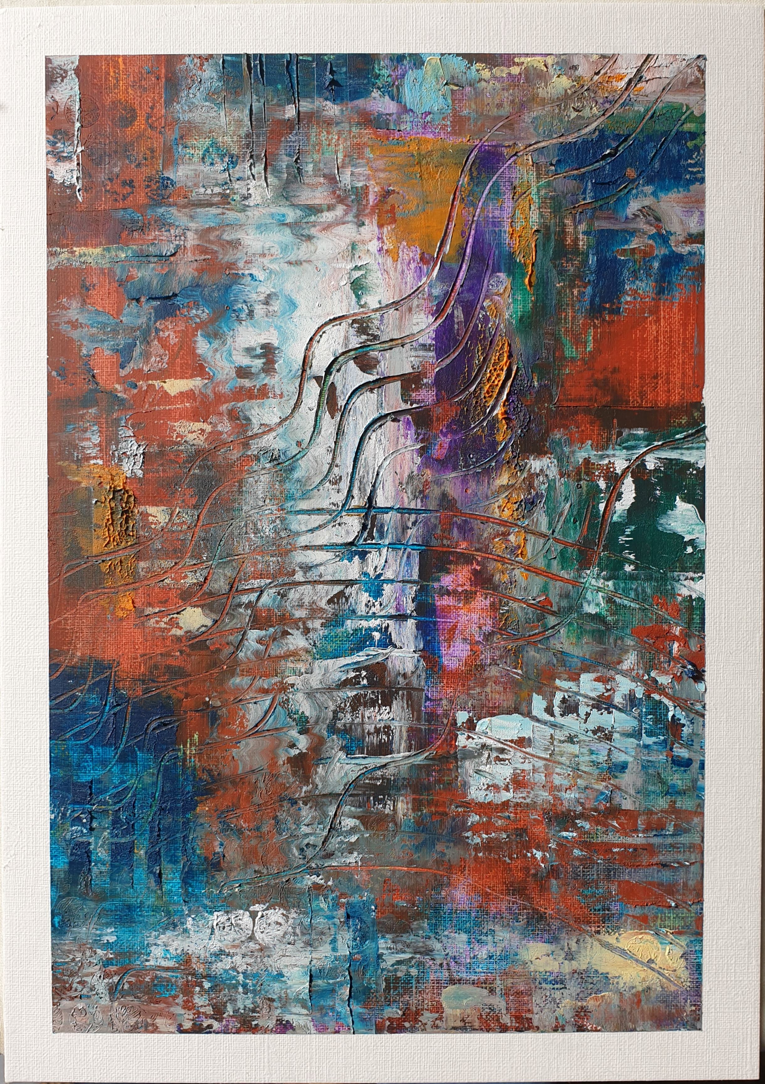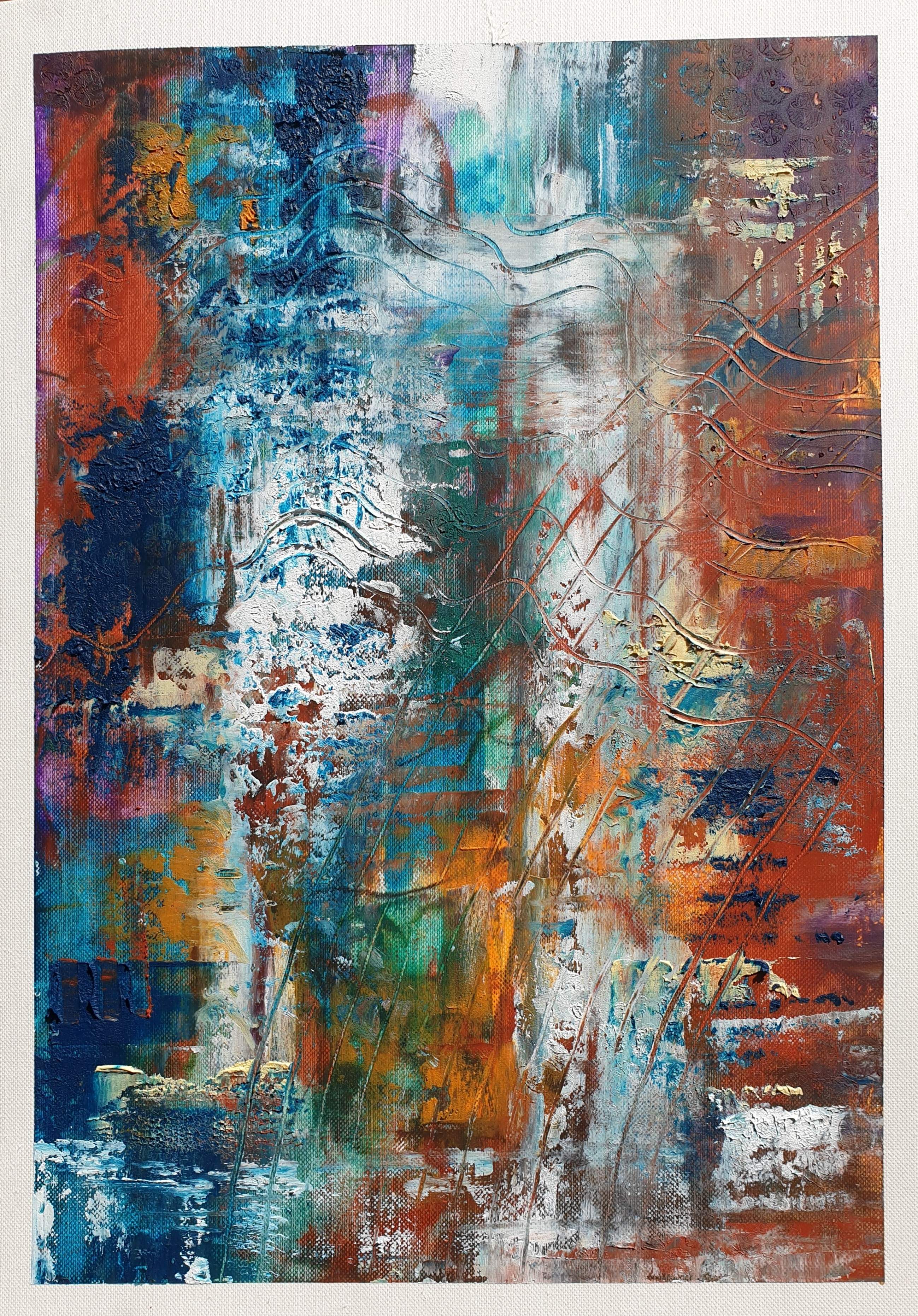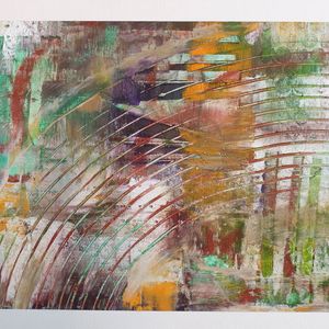 Abstract pieces created with oil paint and cold wax. Each piece combines flowing elements with subtle geometric shapes, gentle colors and fluid forms, resulting in a composition that exudes a calmness.