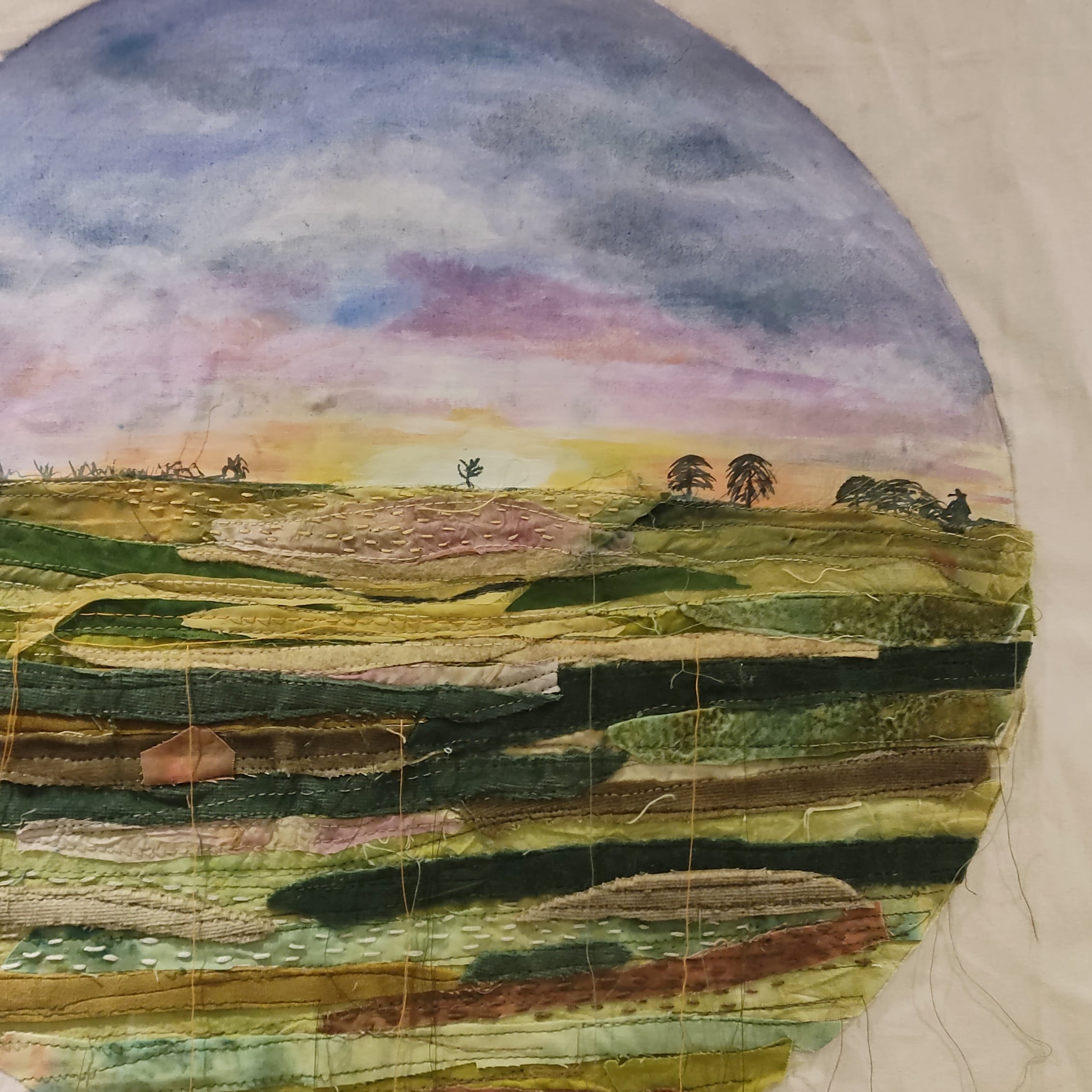 A collection of fibre art pieces with colours created using eco-dyes from the Northamptonshire area.
