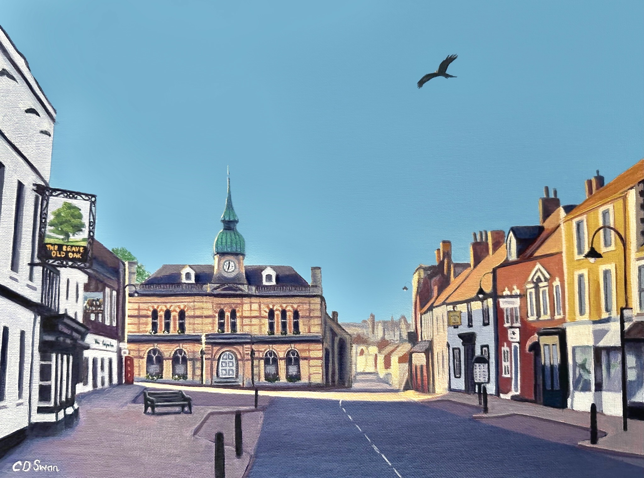 Landscape paintings of Towcester, a market town in Northamptonshire.