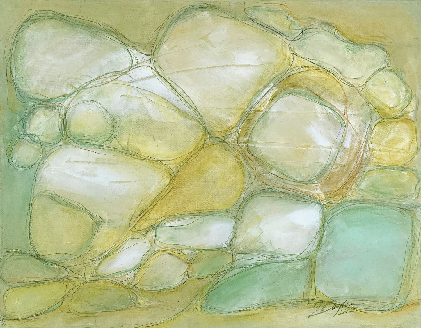 The play of subtle, delicate colors evokes a spectrum of emotions, while the use of texture adds a tactile dimension to the visual experience.