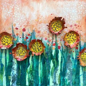 This gallery contains paintings, mixed media collages and mono-prints made using the gel printing plate all based around the subject of flowers.