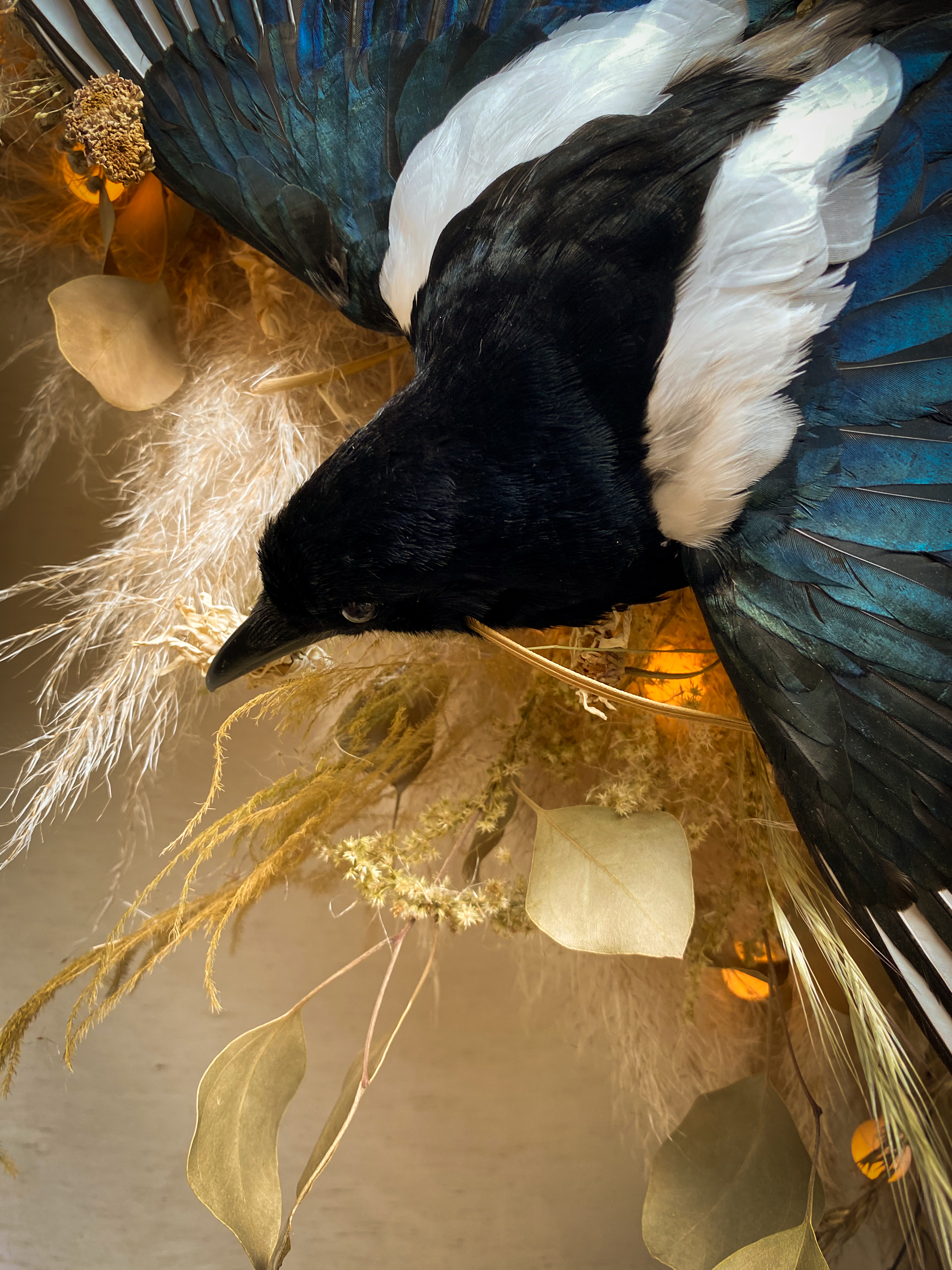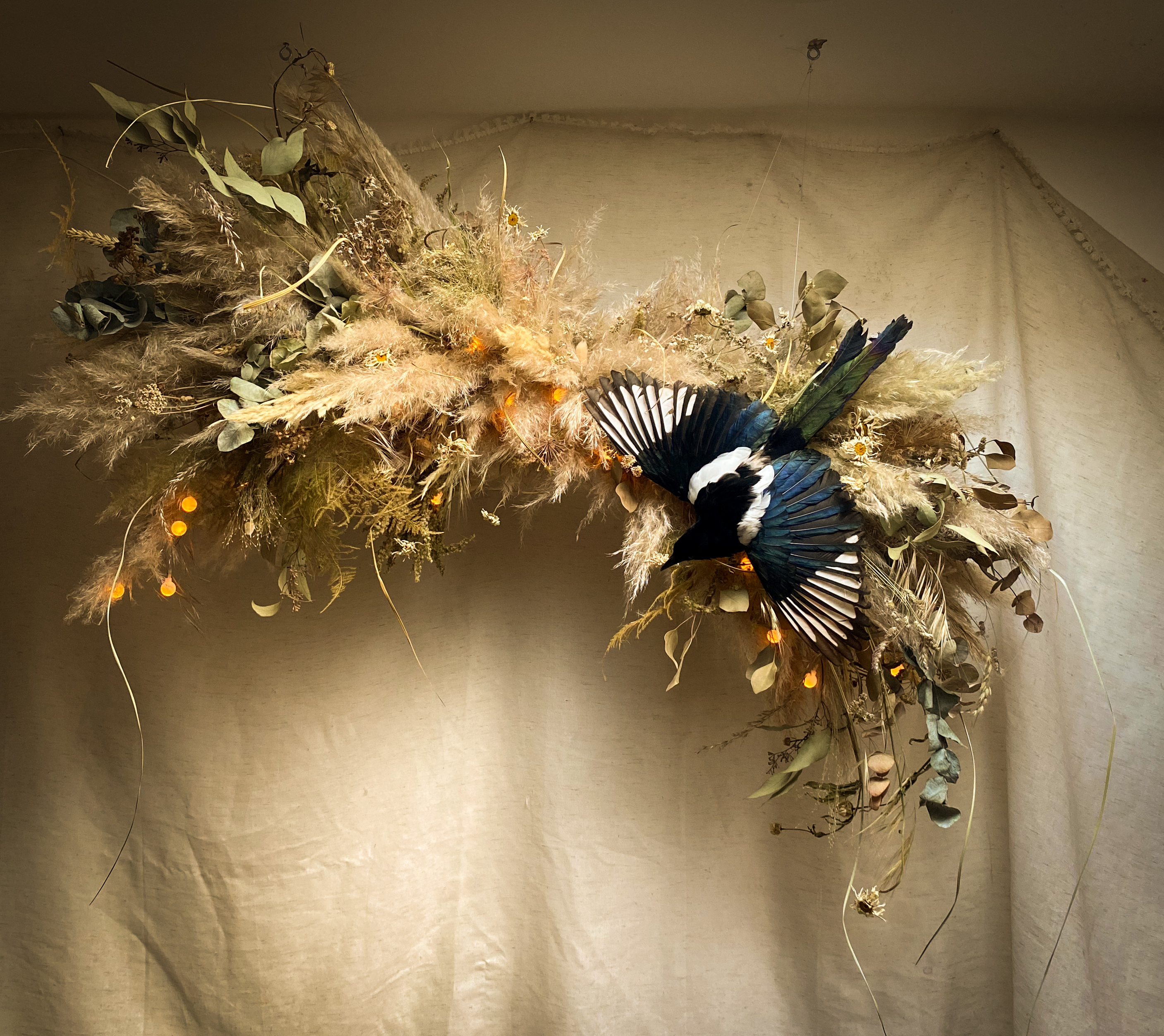 In this work, I am exploring the fragility but also the resilience of the natural world, using dried flowers and ethical taxidermy to create ethereal and thought provoking installations.