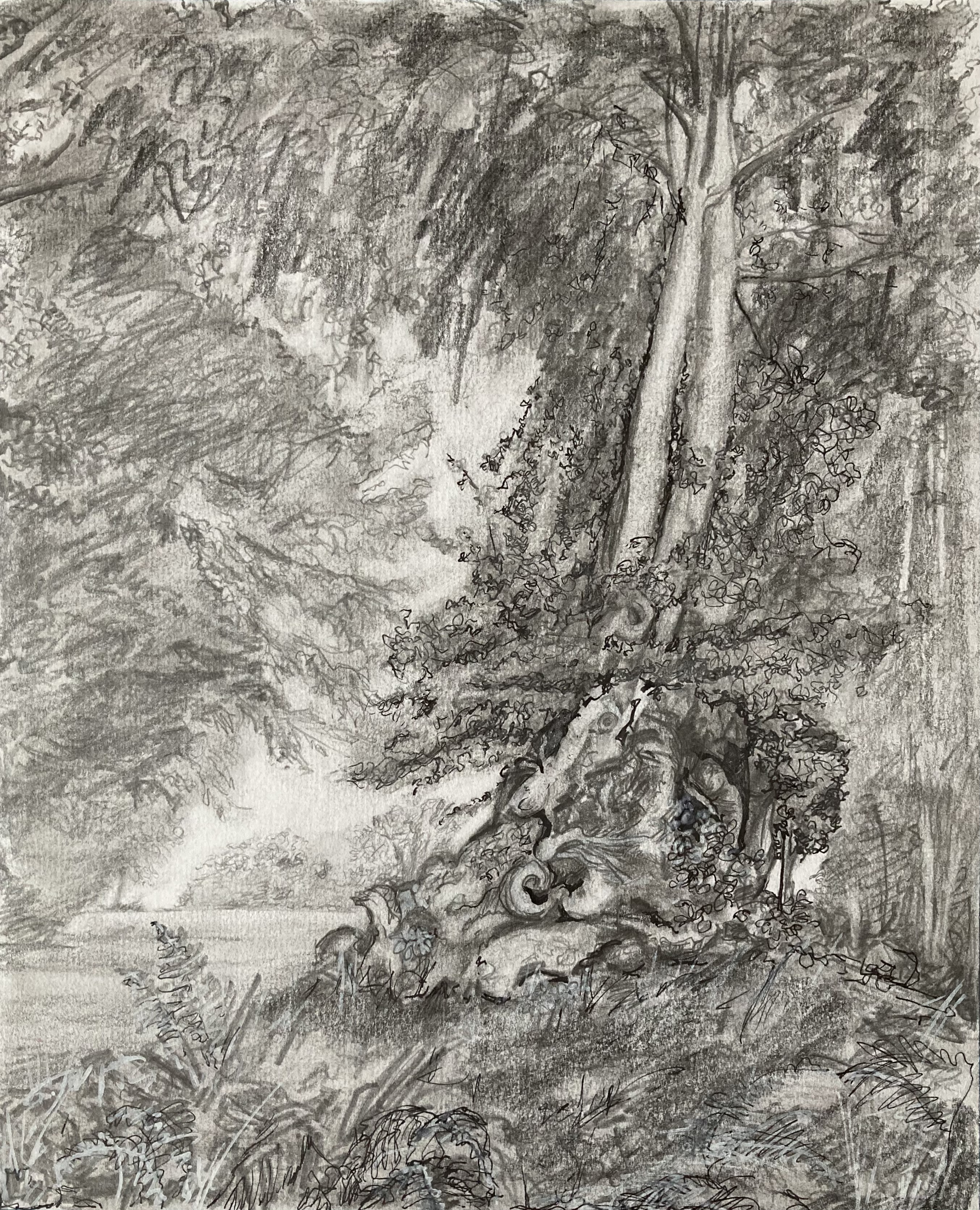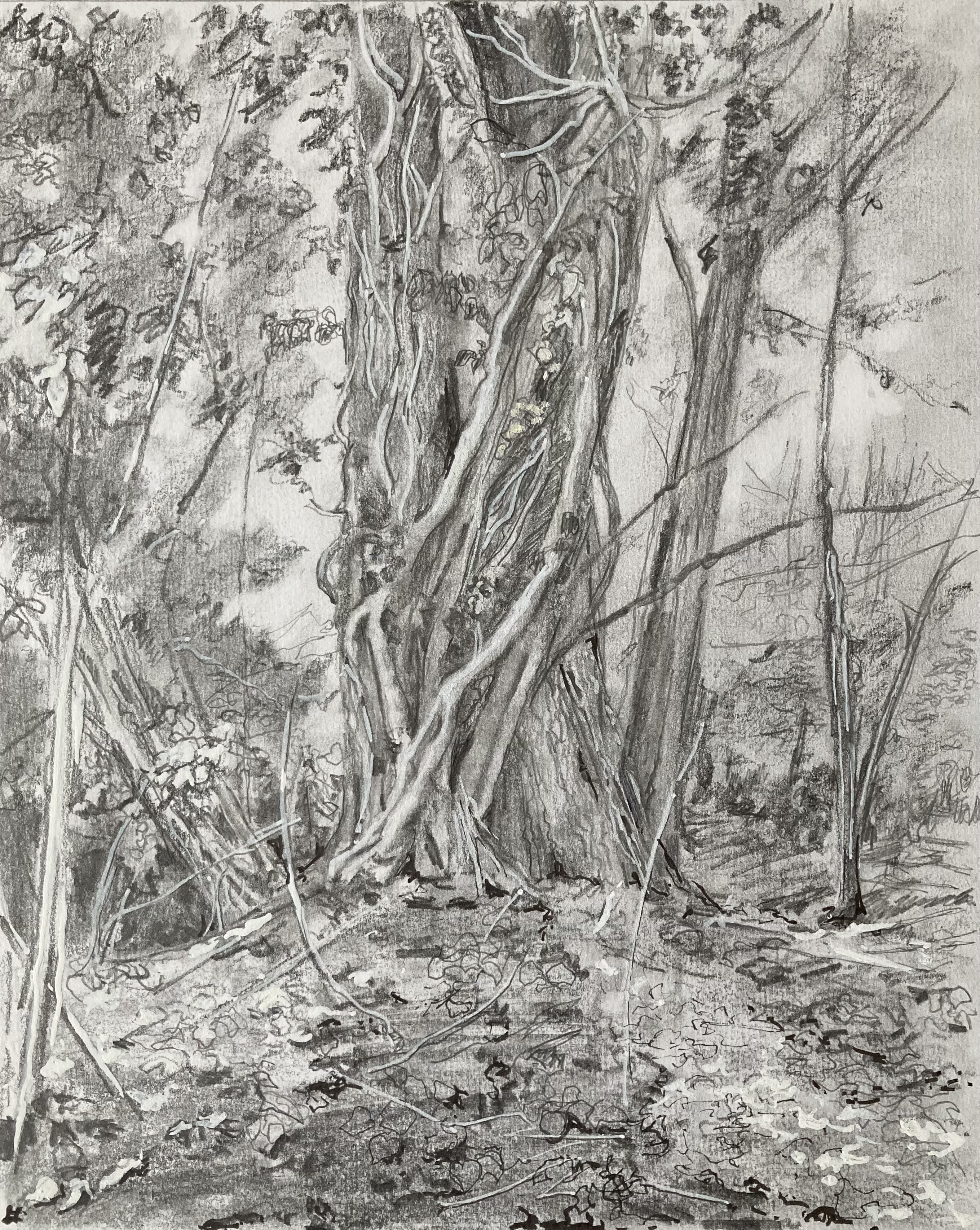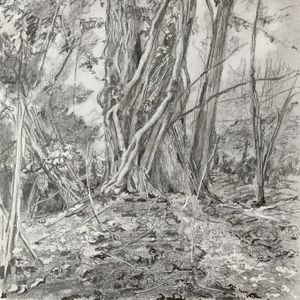 A selection of work in which rather than depending on colour, I have been using light, shade, mark making and drawing to create interest and depth.