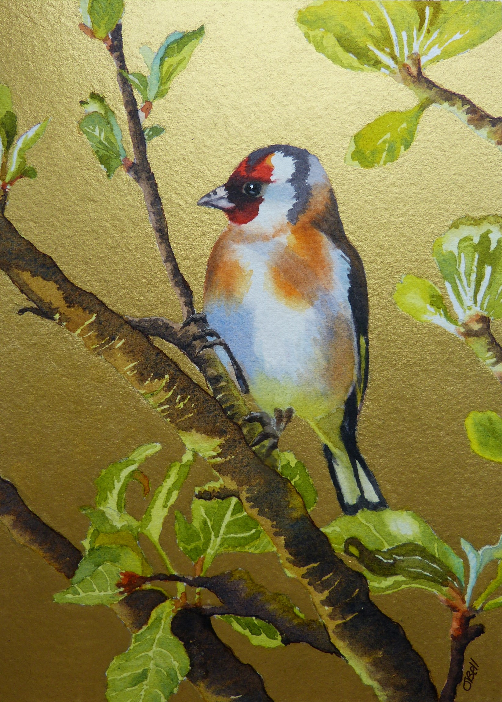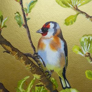 Two more watercolour paintings in my series of bird paintings with gold backgrounds, a Goldfinch and a Kingfisher.