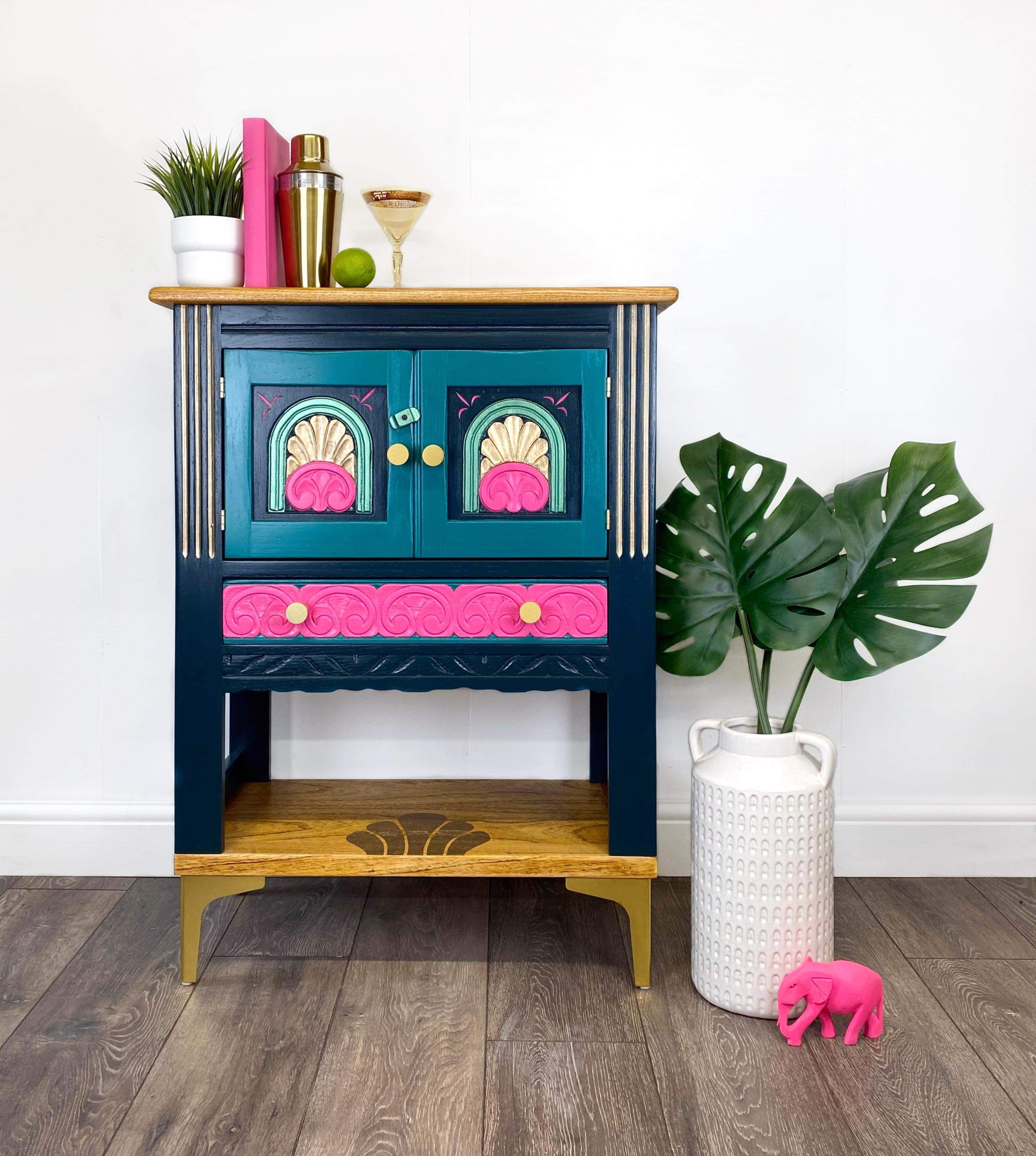 I'm all about taking a piece of vintage furniture and seeing what the possibilities are, transforming it into something so bright, bold and striking that you smile every time you see it. A Pinkyswifts piece is a real talking point – or at least it is once people have stopped saying “WOW!” It isn’t for the background – even if that’s where you put it, it finds its way to the centre of things!