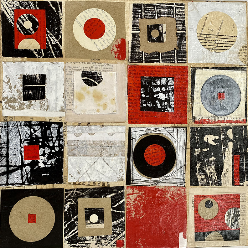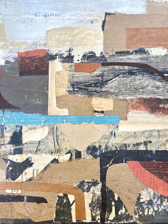 I am a mixed media artist who loves collage and printmaking techniques. My work is often semi-abstract but can allude to a subject or theme. Incorporating collage into my work provides unexpected relationships between disparate marks, textures and shapes, creating a harmonious yet intriguing dialogue.