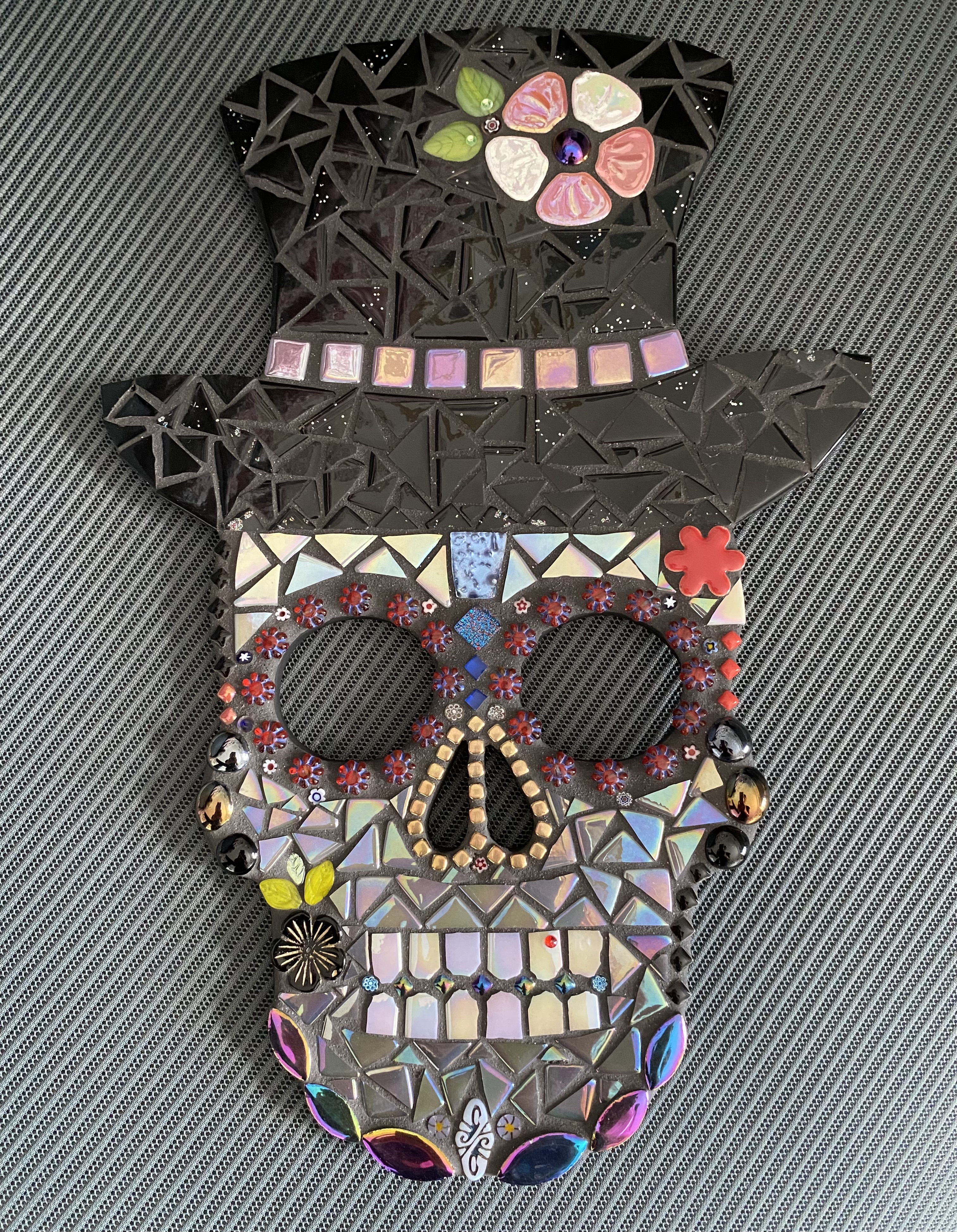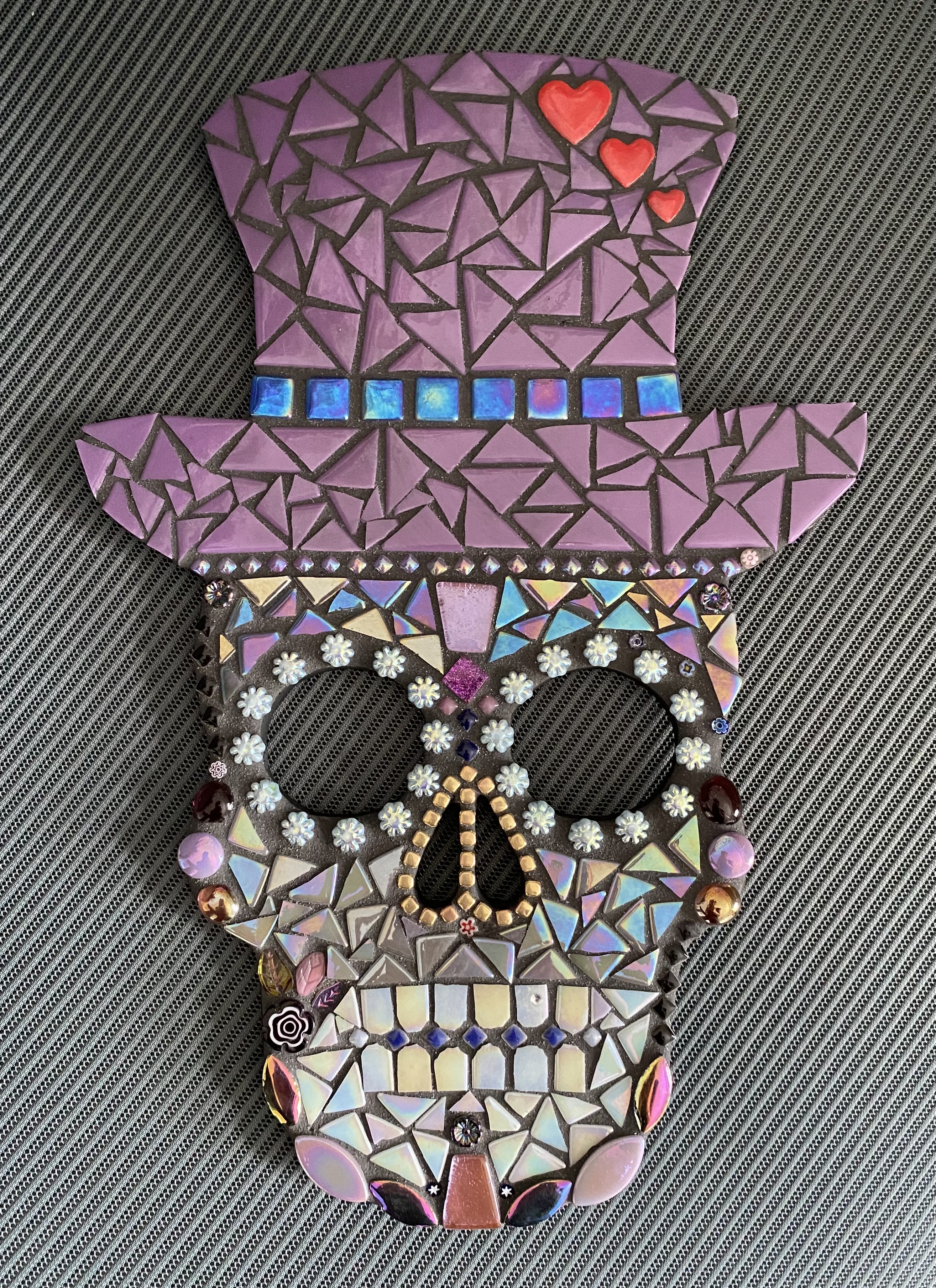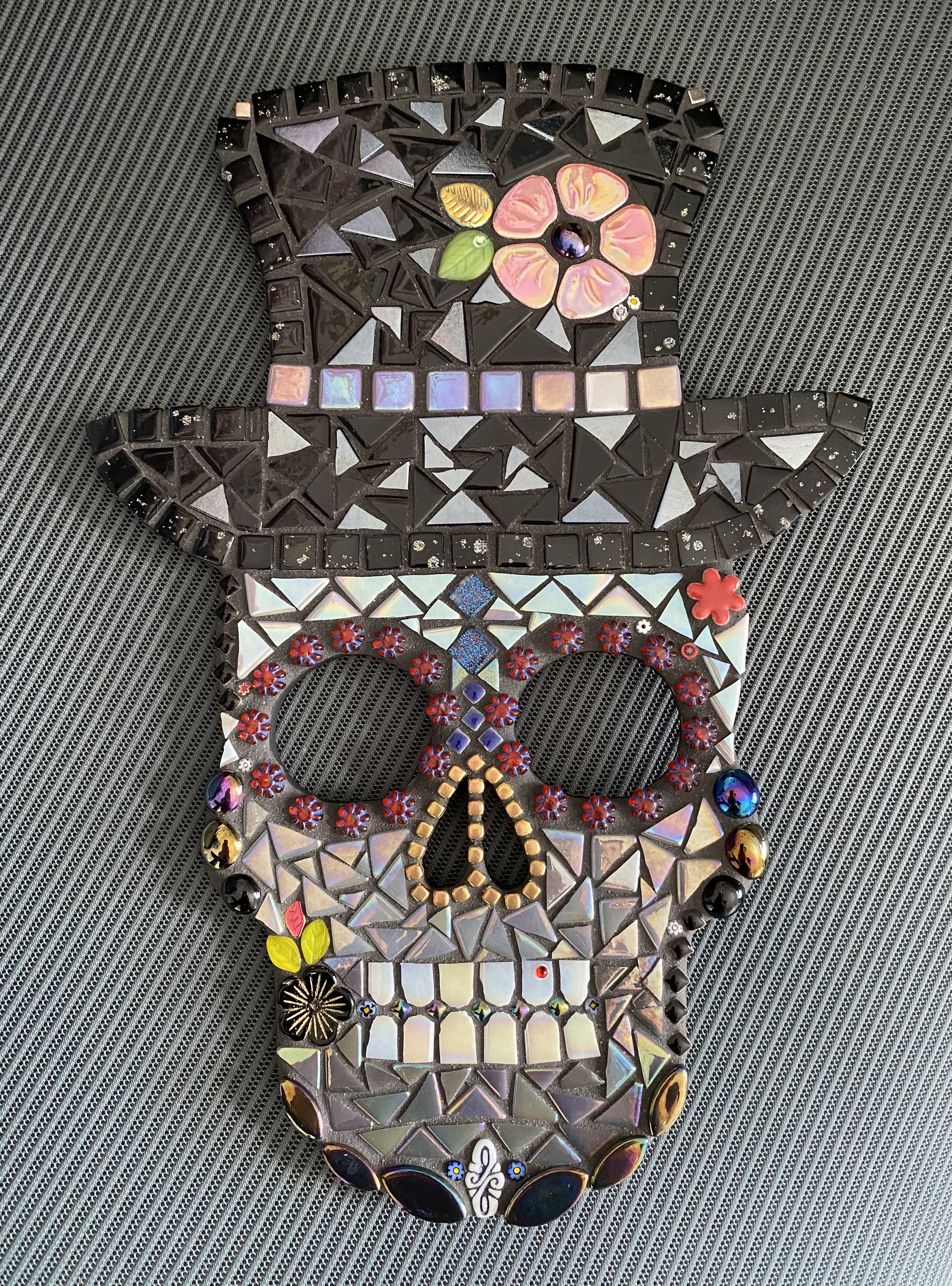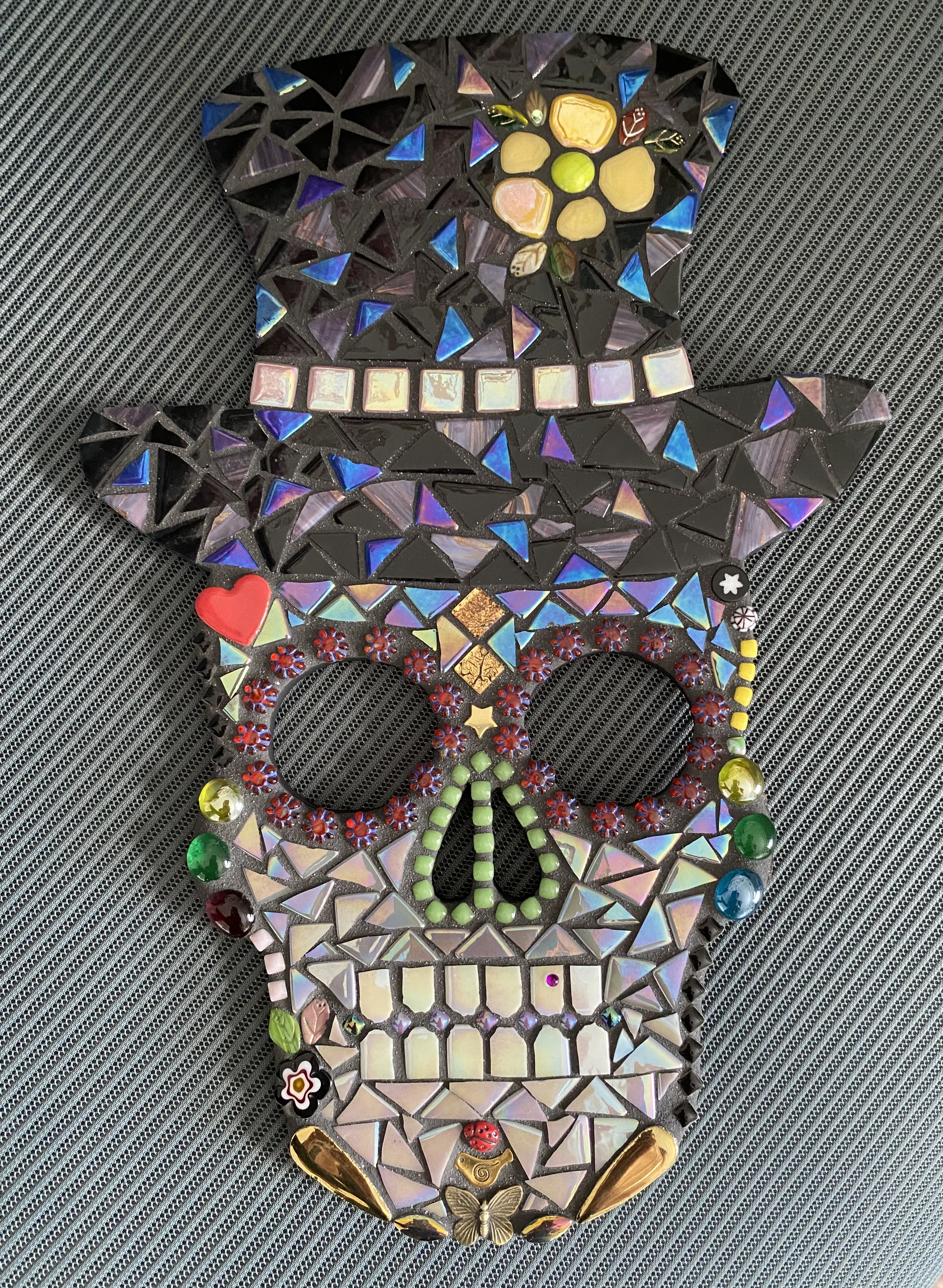 These stunning mosaic glass and ceramic Skulls have been a joy to make, watching as the details come to life, these can be made to order and are £75. 30cm tall with d ring hanging for wall mount.