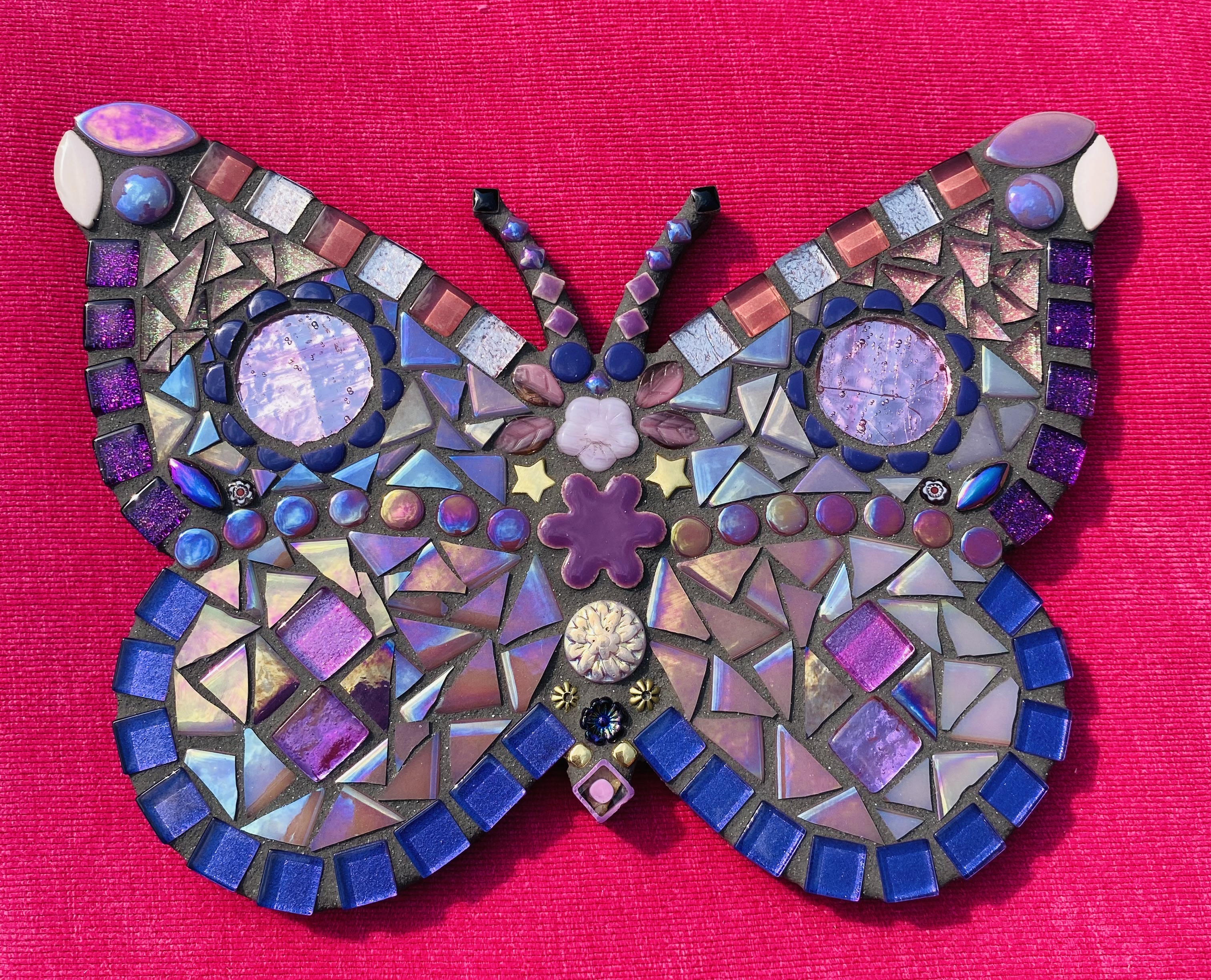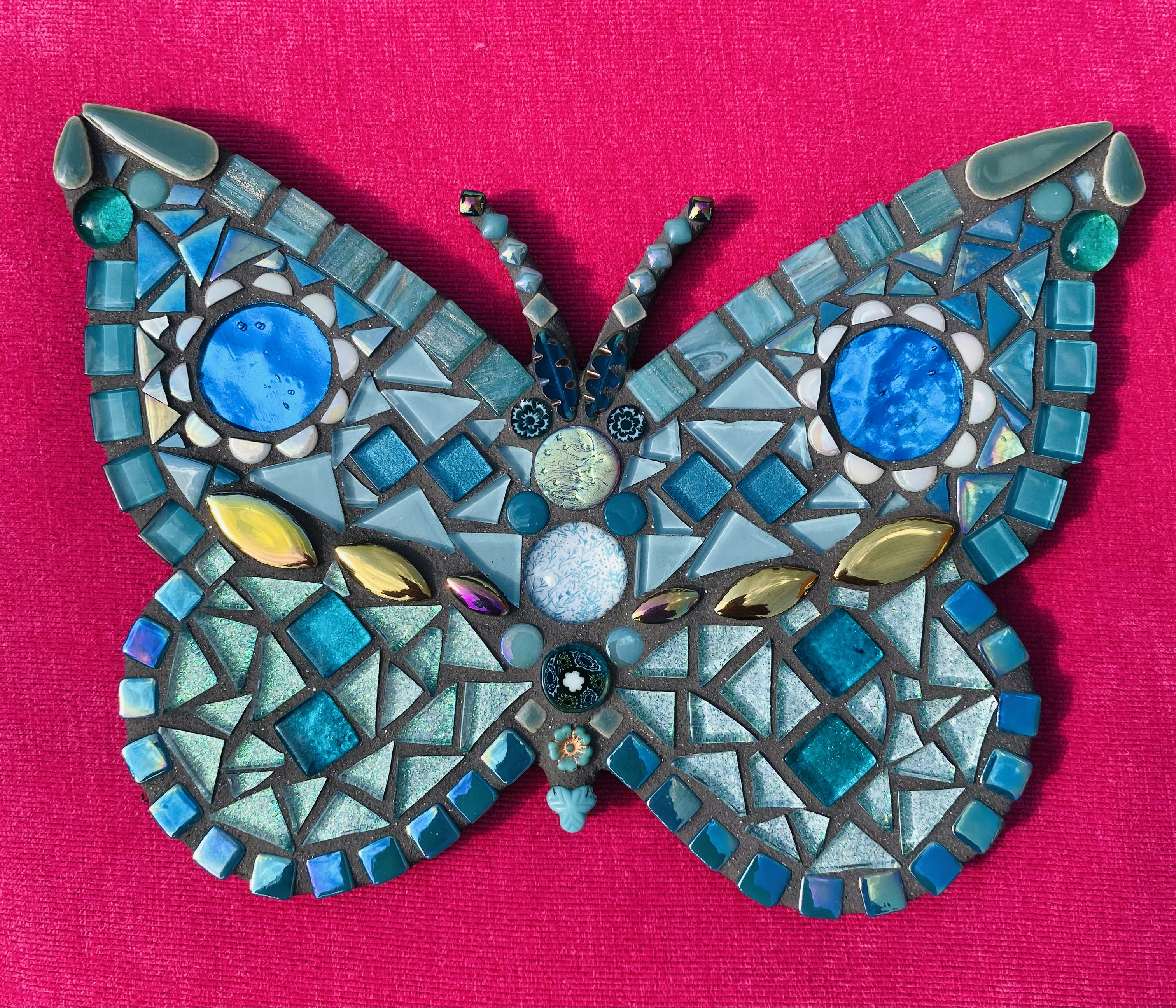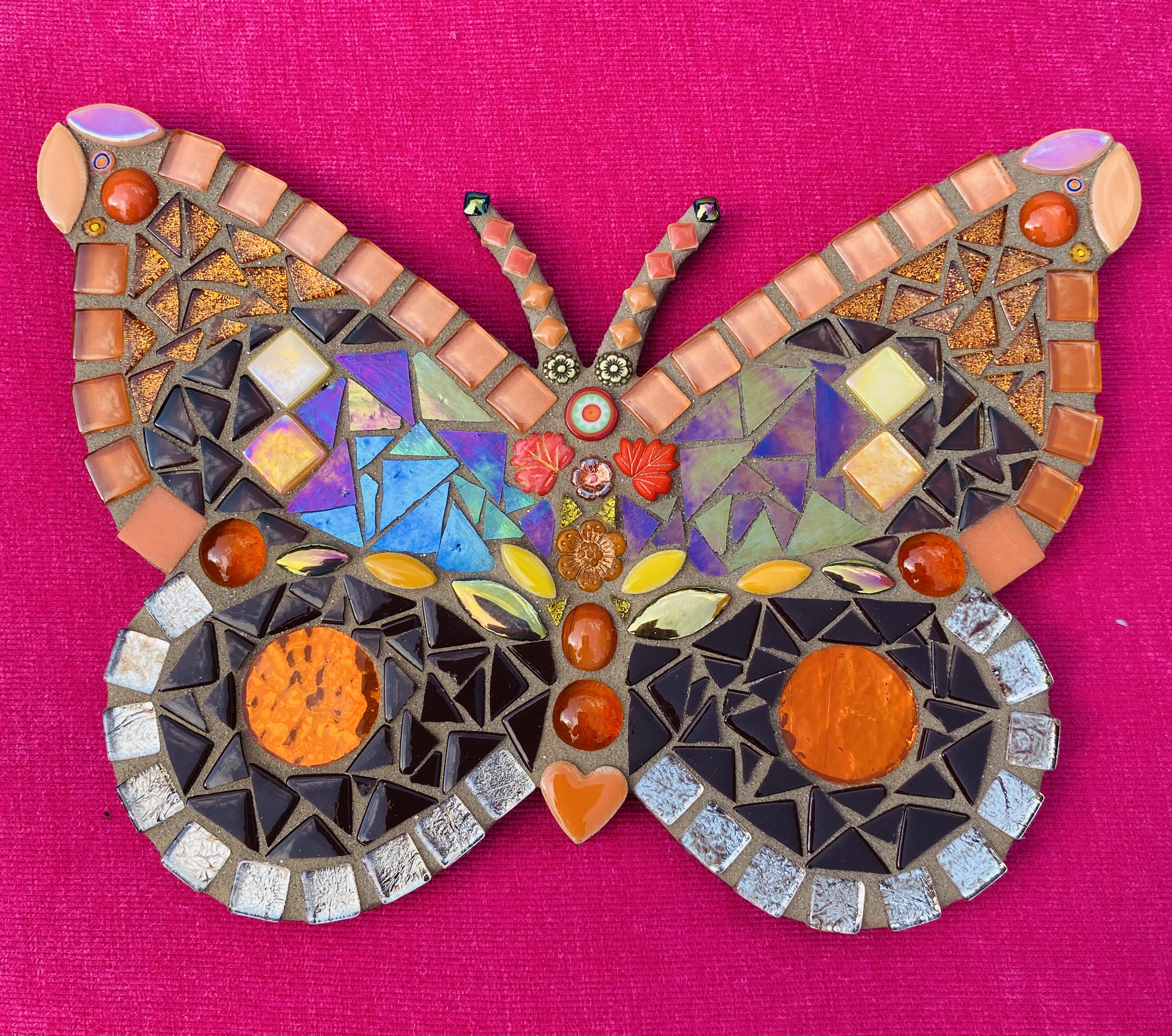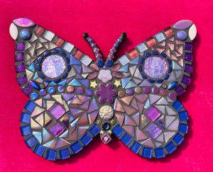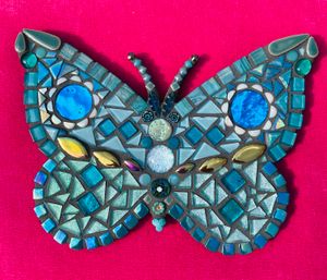 Mosaic butterflies made from different types of glass and ceramics with stunning bead detailing to each