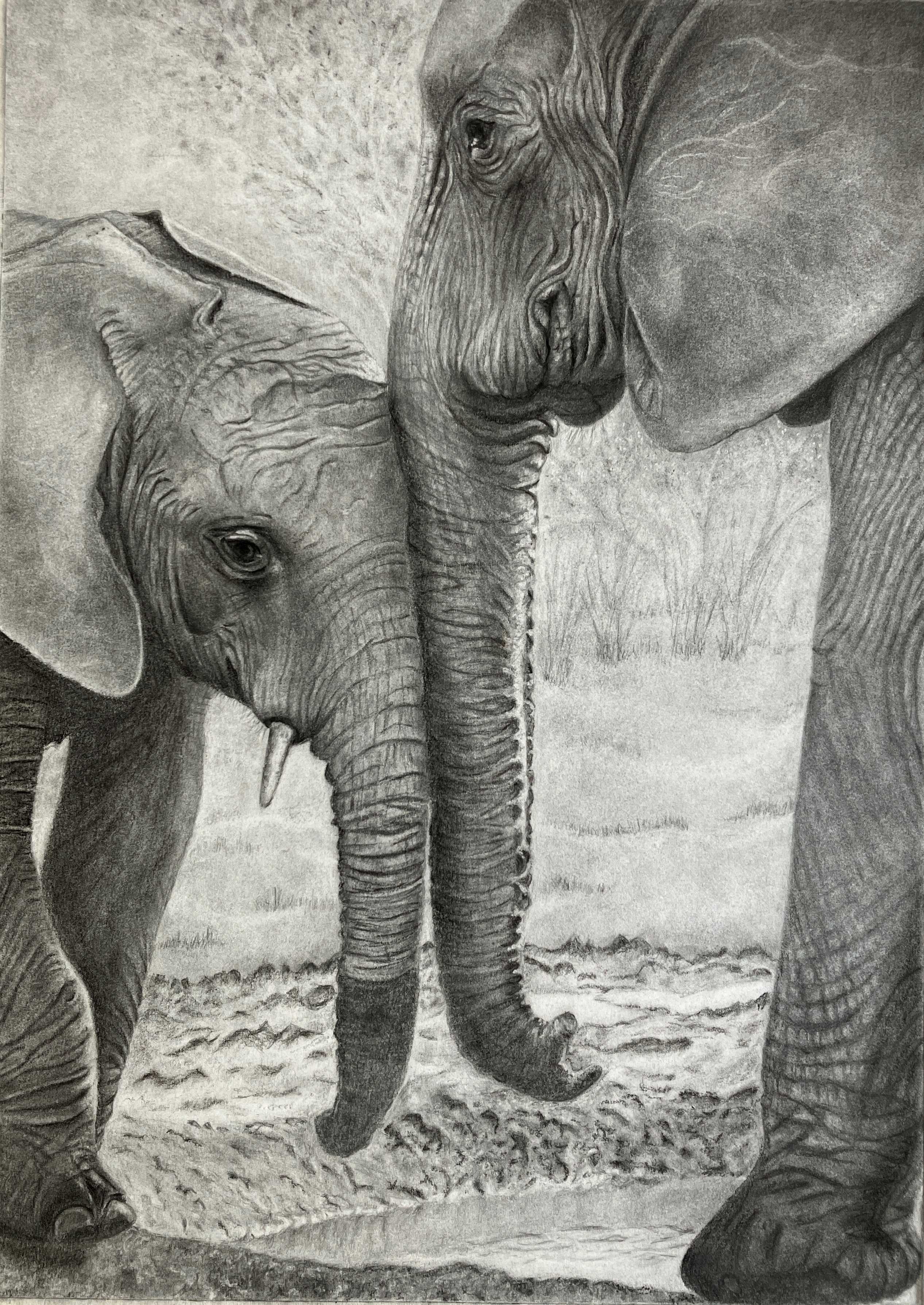 Local Artist based near Towcester - graphite drawings are my favourite - particularly people and animals. I have also started using charcoal and my latest mother and baby elephant is one of my favourite pieces.